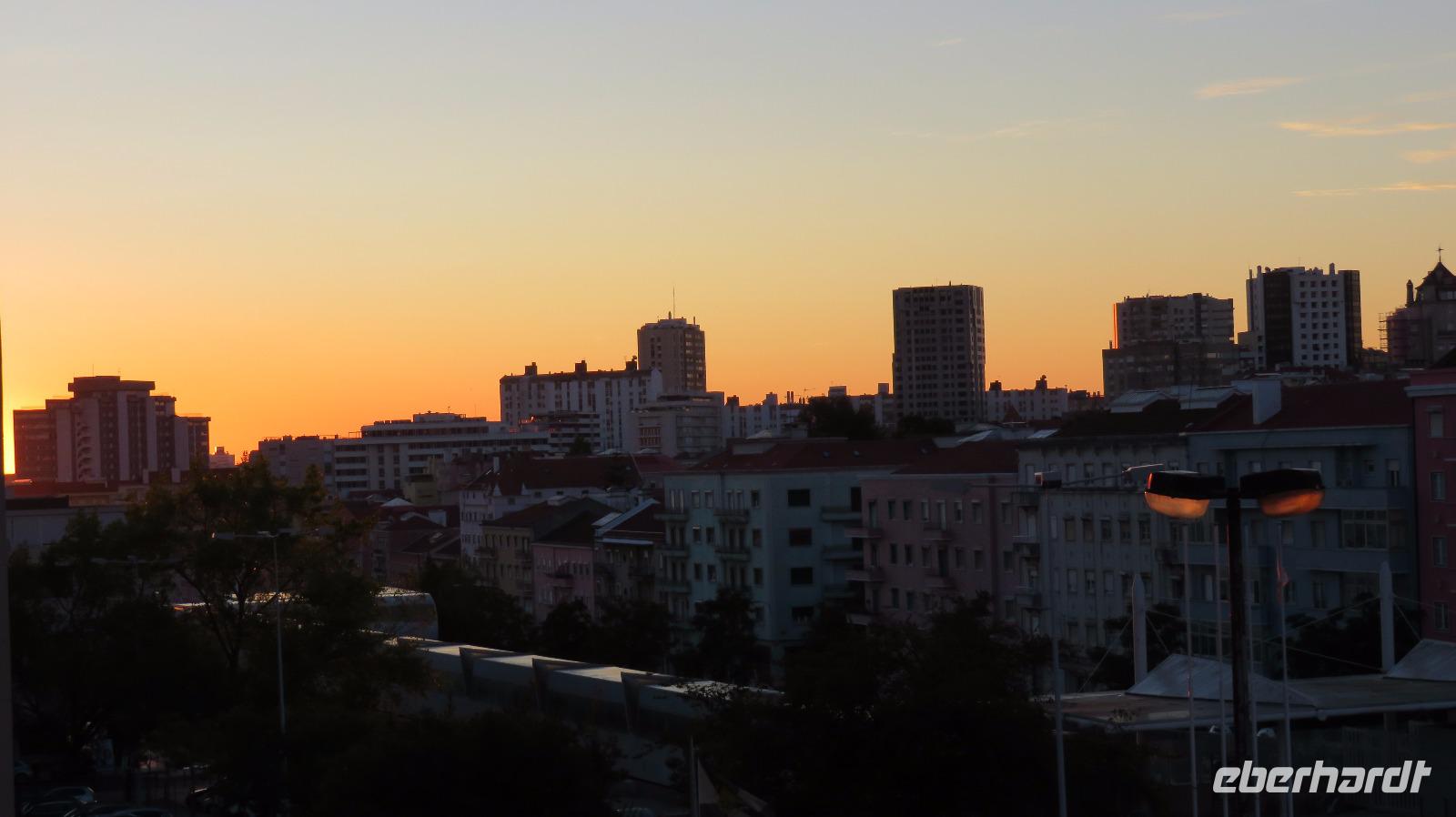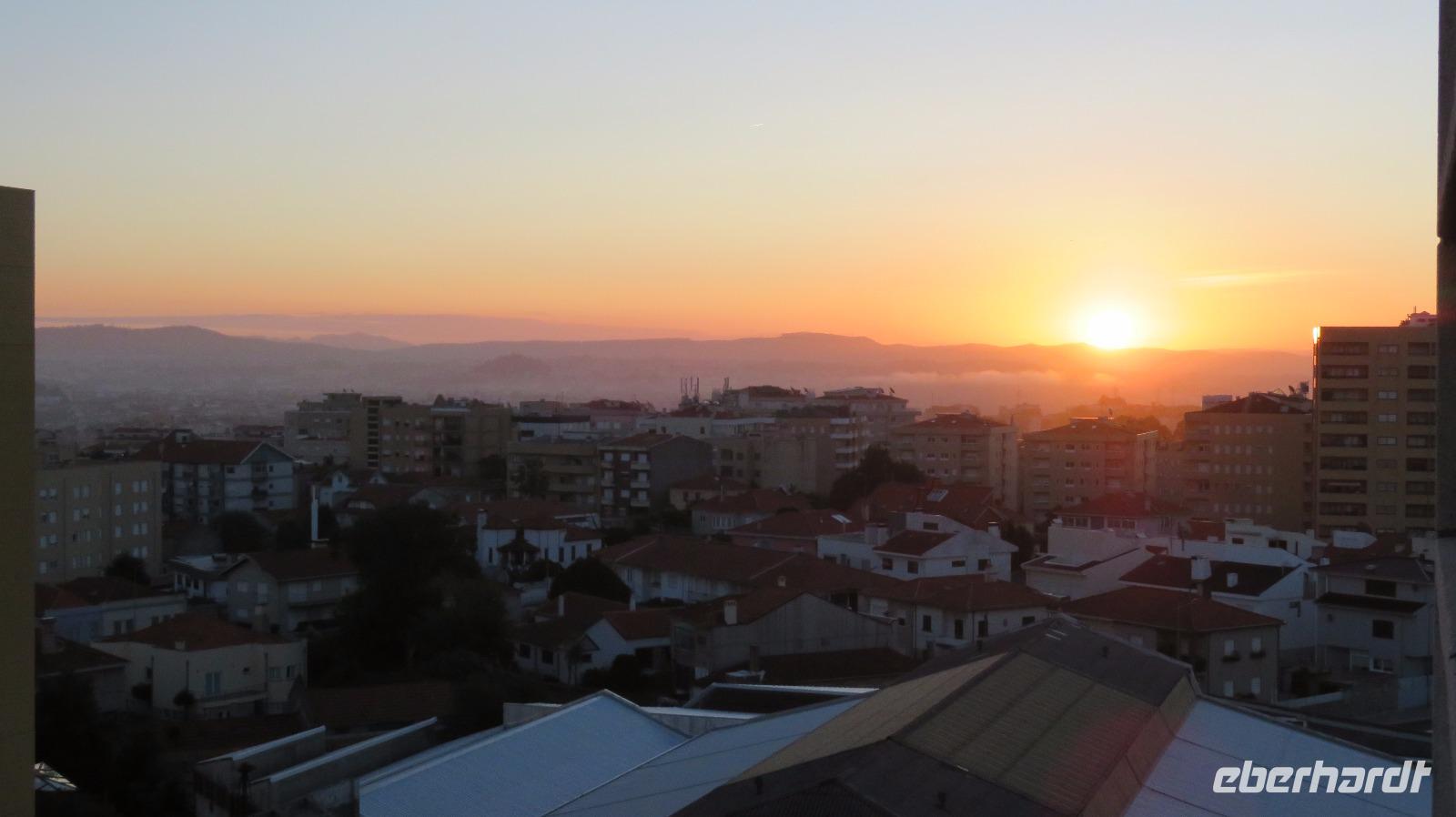 Unser Abendessen nehmen wir heute im Hotelrestaurant mit herrlichem Blick über die Stadt ein. Und wir können sogar die Sonne über dem Atlantik untergehen sehen!