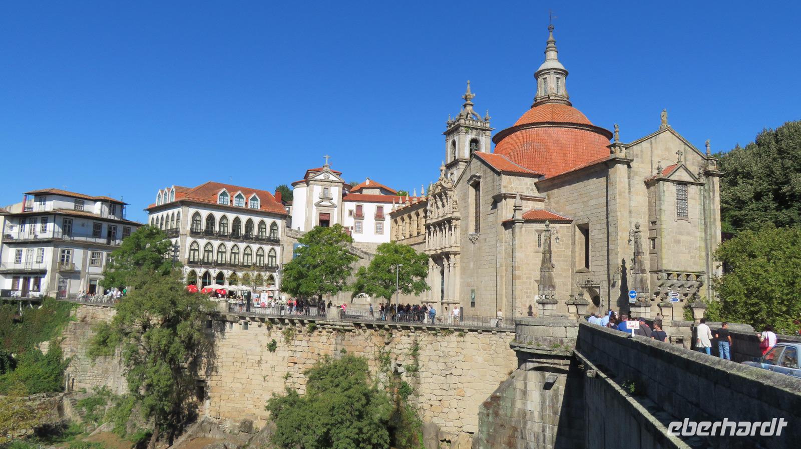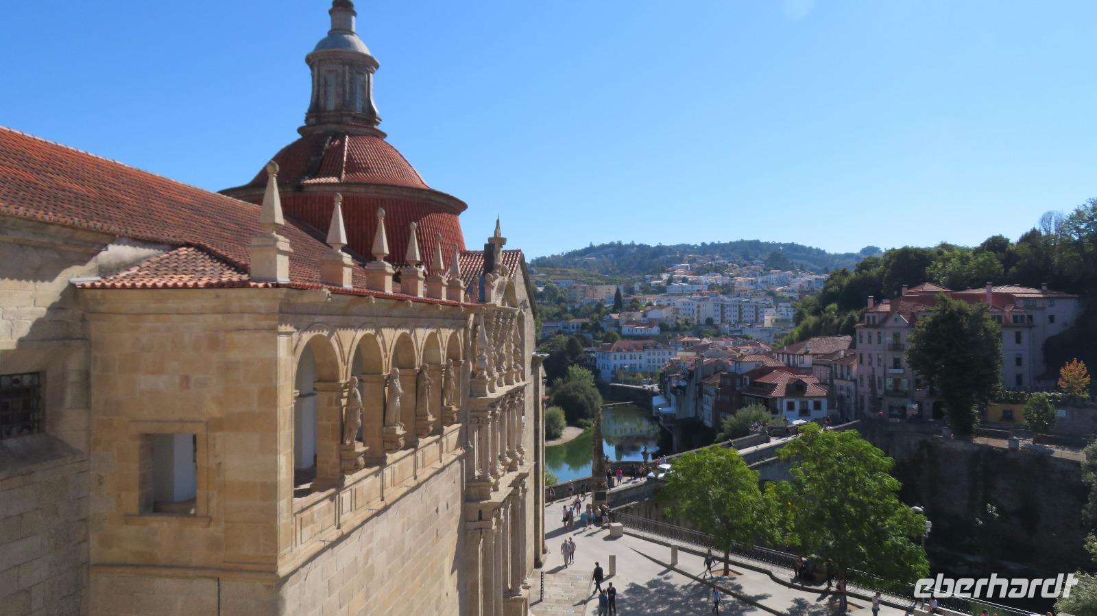 Wir legen einen Stopp im Örtchen Amarante ein, wo uns Isabell zum Dominikanerkloster São Gonçalo aus dem 16. Jahrhundert führt. Hier haben wir etwas Zeit, um uns das beeindruckende Kunstwerk genauer anzuschauen. Petra erwirbt für uns noch eine Kostprobe von den leckeren selbstgefertigten Honig-Zitronenbonbons, die eine Dame an der Brücke über den Tamegafluss verkauft.