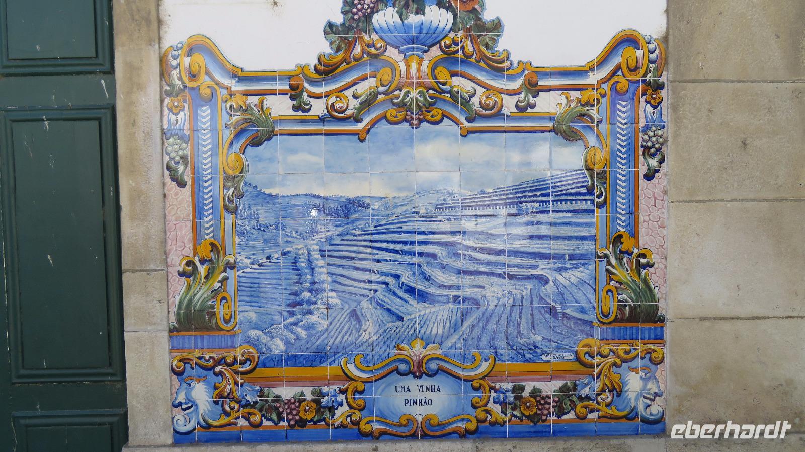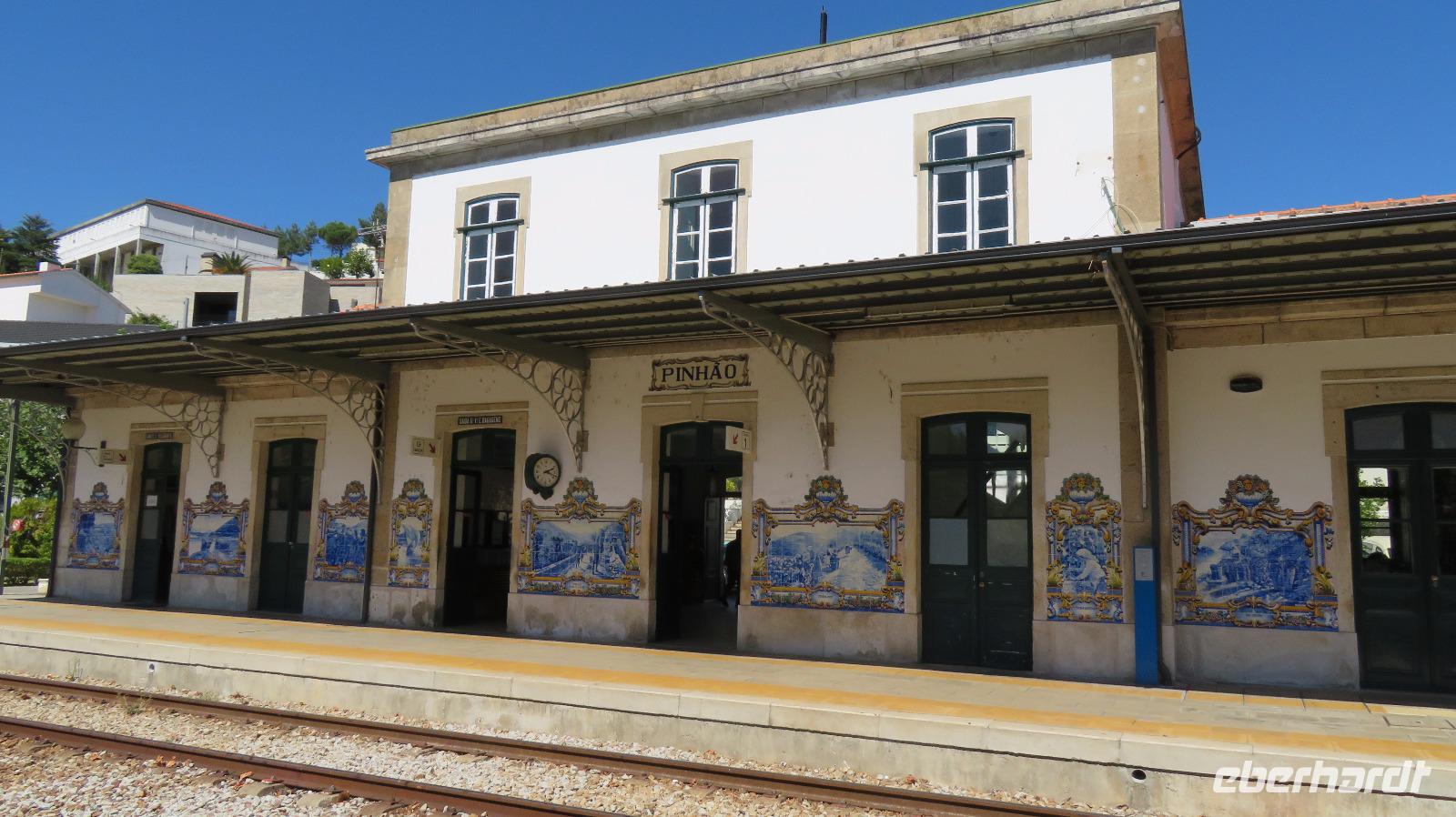 Im Dourotal, in Peso da Regua, haben wir unsere Mittagspause. Hierher werden wir am Abend zurückkehren, denn hier befindet sich unser Hotel Regua Douro. Regua ist das Zentrum der Portweinproduktion und zugleich das größte Weinbauzentrum von Portugal. Doch zunächst bringt uns der Bus am Douro entlang nach Pinhao.Die Fahrt eröffnet uns herrliche Blicke auf die Weinlandschaft. In Pinhao haben wir wenige Minuten, um einige Fotos von dem kleinen Bahnhof aufzunehmen. Er ist reich geschmückt mit Azulejos, die Szenen aus dem Winzeralltag zeigen. Dann kommt schon unser Zug, der uns am Fluss zurück nach Regua bringt. Leider ist er nicht ganz so romantisch, wie wir uns das vorgestellt hatten.