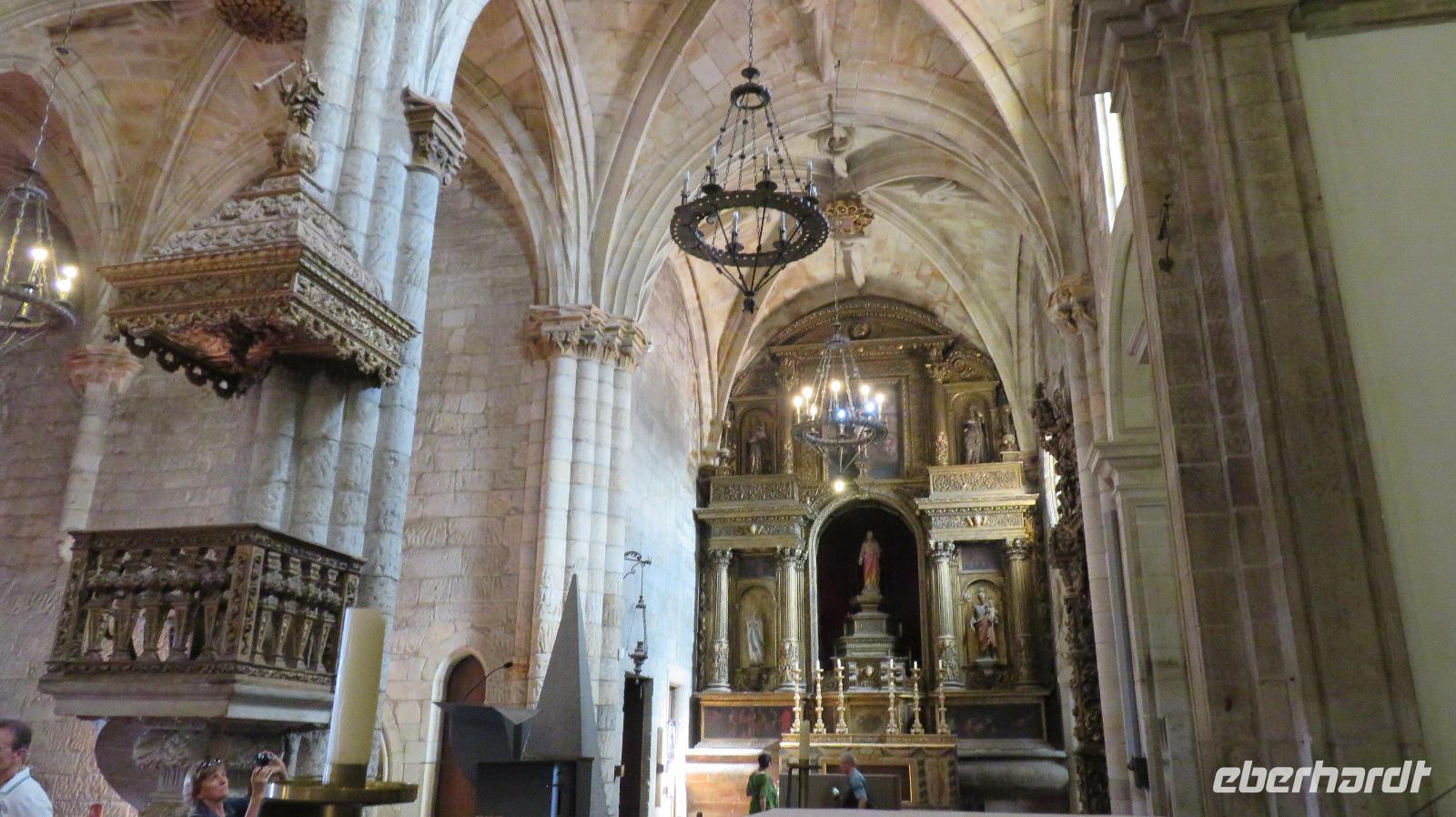 Unsere Reise wendet sich nun südwärts. Nach einer Stunde Fahrt erreichen wir Viseu, ein Kunstzentrum in der Region Beira Alta. Wir marschieren zur Kathedrale Sé de Viseu, auf einem schönen Platz oberhalb der Stadt, die wir gemeinsam mit Isabell besichtigen. Auch hier müsste man länger verweilen, um all die Kapellen und wertvollen Kunstwerke in Ruhe zu betrachten, aber uns bleibt noch ein kleiner Stadtrundgang und Zeit für einen Kaffee.