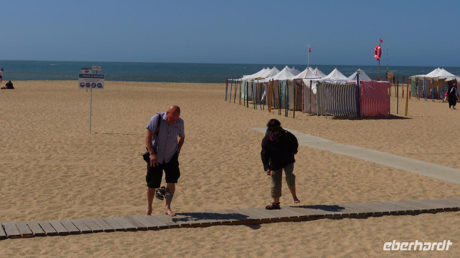 Doch nun geht es ans Meer. Zeit zum Relaxen am Strand von Nazare. Ein Spaziergang am Atlantik, Wellen schauen, Fisch essen - nur zum Baden ist es etwas zu wellig!