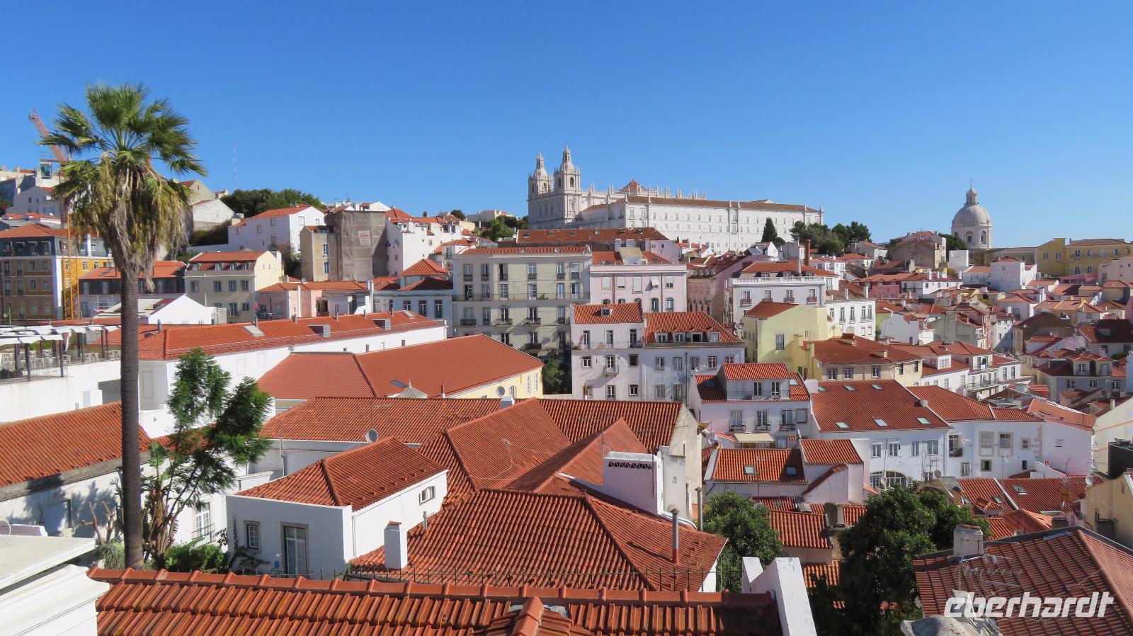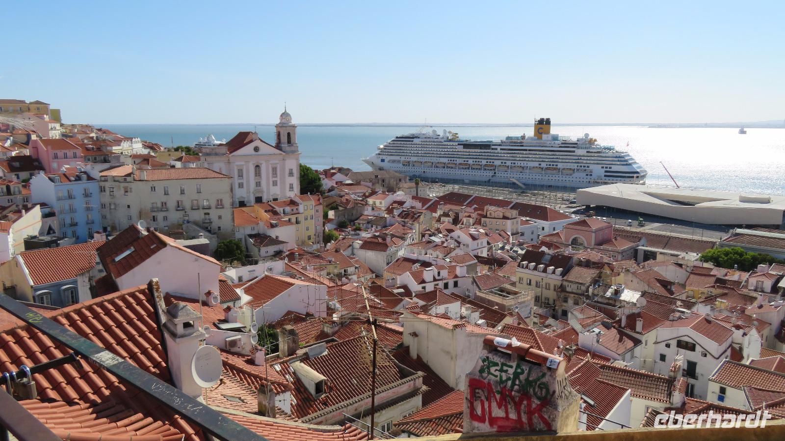 Heute besichtigen wir die Hauptstadt Portugals. Eine Fahrt ins Zentrum der Stadt vorbei am Parque Eduardo VII, Stierkampfarena Campo Pequeno und am Hauptbahnhof im neogotischen Stil, über die prachtvolle Avenida da Liberdade zum Rossio-Platz. Zu Fuß geht es weiter Richtung Alfama. Wir nehmen einen Aufzug um bequemer in die Oberstadt zu gelangen. Hier laufen wir durch die Altstadt zum Miradouro Largo das Portas. Von diesem Aussichtspunkt haben wir einen herrlichen Blick auf Lissabon, über das Gassengewirr der Alfama zur Kirche „Igreja de Santa Engrácia" und zum Kloster Sao Vicente de Fora, über den Tejo mit seinem Kreuzfahrthafen und den Schiffen. Durch die engen Gassen geht es hinab in die romantische Alfama. Hier holt uns der Bus ab und bringt uns wieder zum zentralen Rossio Platz, wo wir noch eigenen Entdeckungen unternehmen können. Isabell gibt uns entsprechende Tipps.