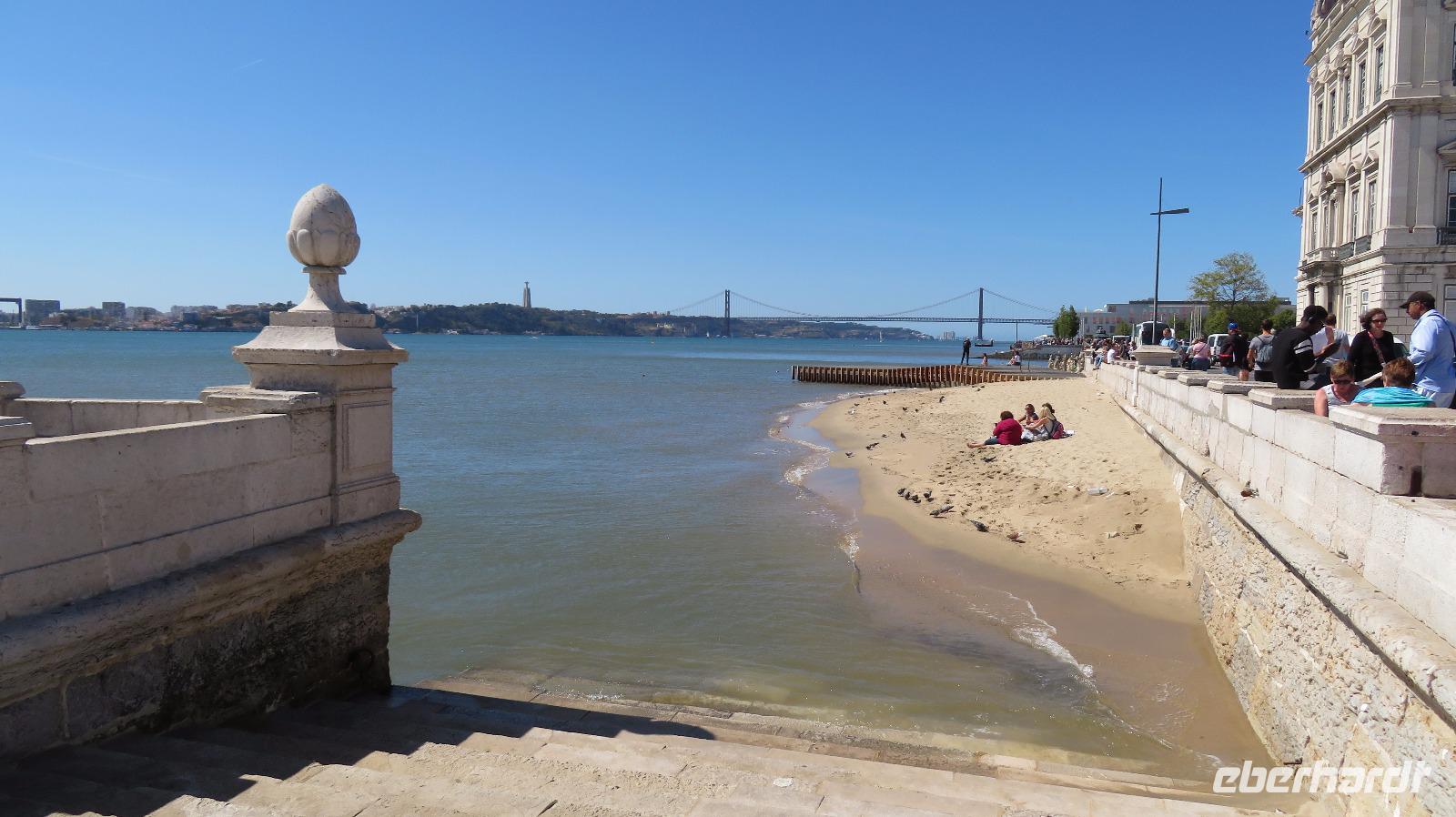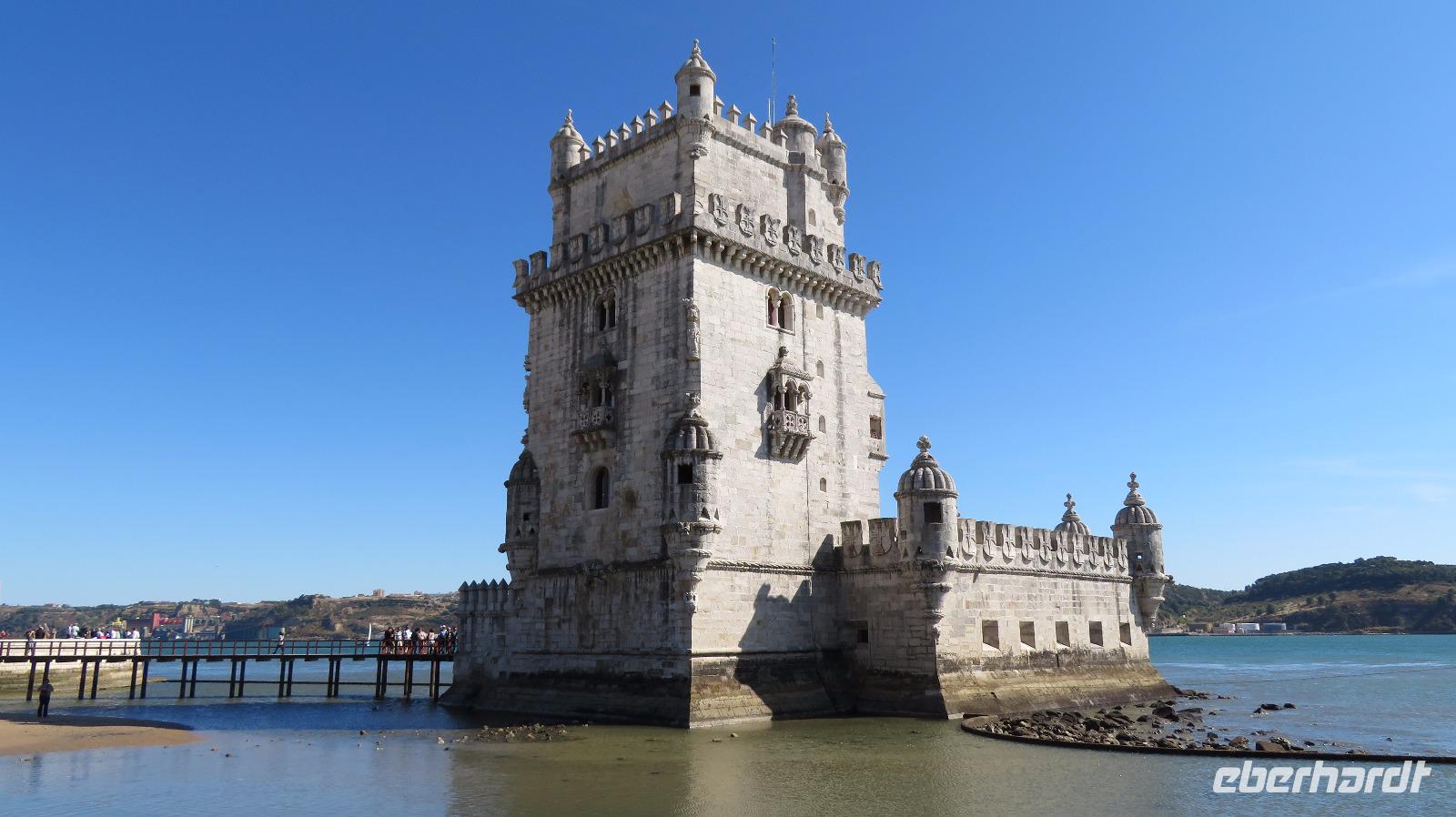 Am Torre de Belem an der Tejomündung unser nächster Stopp, eines der bekanntesten Wahrzeichen Lissabons. Der Turm wurde 1515 ebenfalls von König Manuel I. in Auftrag gegeben und im Jahre 1521 eröffnet.