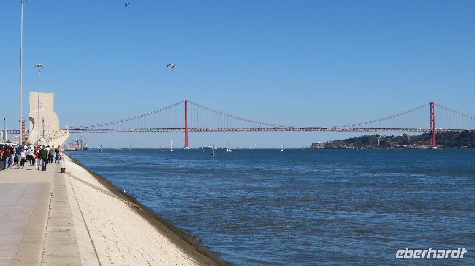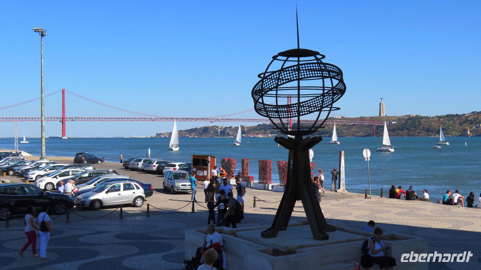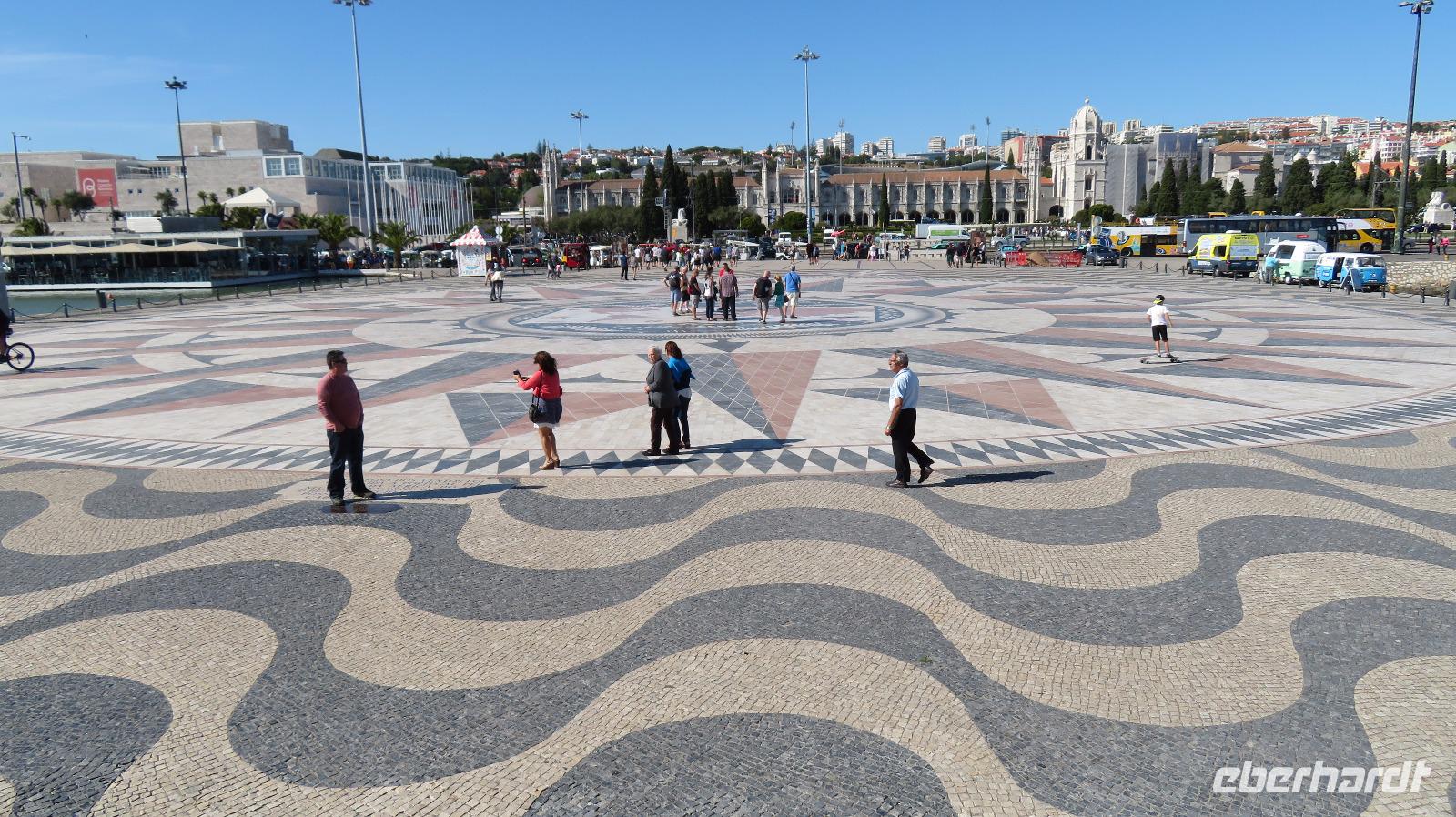 Auch am Entdeckerdenkmal wird eine Pause eingelegt. Es ist Heinrich dem Seefahrer gewidmet, zu dessen 500. Todestag das Denkmal 1960 eröffnet wurde. Auch der Platz davor ist sehenswert. Eine riesige Windrose aus Mosaiksteinen. Eine Weltkarte zeigt die Routen der portugiesischen Entdecker im 15. und 16. Jahrhundert.