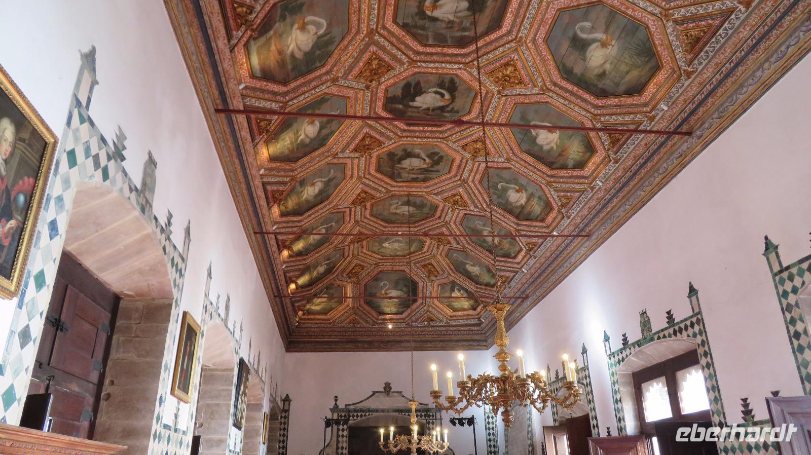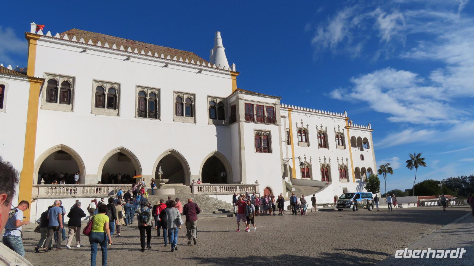 Heute sind wir in der Provinz Estremedura unterwegs. Wir fahren nach Sintra, der Sommerresidenz der portugiesischen Herrscher. Auch diese Stadt zählt seit 1995 zum Weltkulturerbe der UNESCO. Wir besichtigen den Paco Real, den Stadtpalast von Sintra. Er ist mit seinen hohen Kegelkaminen das Wahrzeichen der Stadt. Der Palast wurde im 15. Jahrhundert durch Dom Joao I. umgebaut. Seit dieser Zeit bis zum 20. Jahrhundert residierten hier in den Sommerzeiten die portugiesischen Könige und die adelige Bevölkerung. Der Stadtpalast wurde immer wieder von den jeweiligen Regenten "modernisiert", so dass das gesamte Bauwerk in unterschiedlichen Stilrichtungen verändert wurde und seinen besonderen Charme erhielt. Man findet arabisch verzierte Decken neben spanische Azulejos, Holzschnitzereien und kunstvolle Fliesen an den Wänden aus dem 15. und 16. Jahrhundert, die mit Jagd- oder Ausflugsszenen verziert sind. Heute wird der Stadtpalast für kulturelle und touristische Veranstaltungen genutzt.