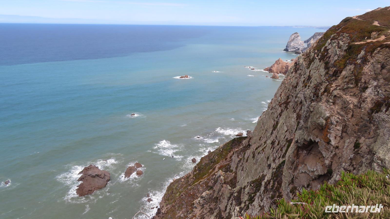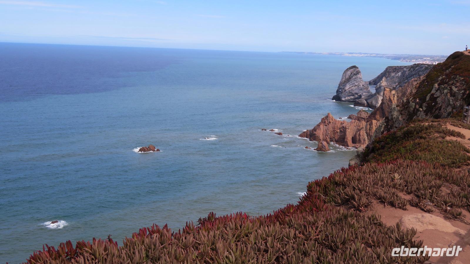 Jetzt erwartet uns ein geografischer Höhepunkt. Wir besuchen Cabo da Roca, den westlichsten Punkt vom kontinentalen Europa und genießen den Blick auf die zerklüftete Küste. Der Leuchtturm am Cap stammt von 1842 und steht 150 m über dem Ozean. Allerdings sind am Sonntagvormittag Massen Motorräder unterwegs, und wir halten schon unterwegs den Atem an, wenn wir deren Fahrweise sehen müssen.