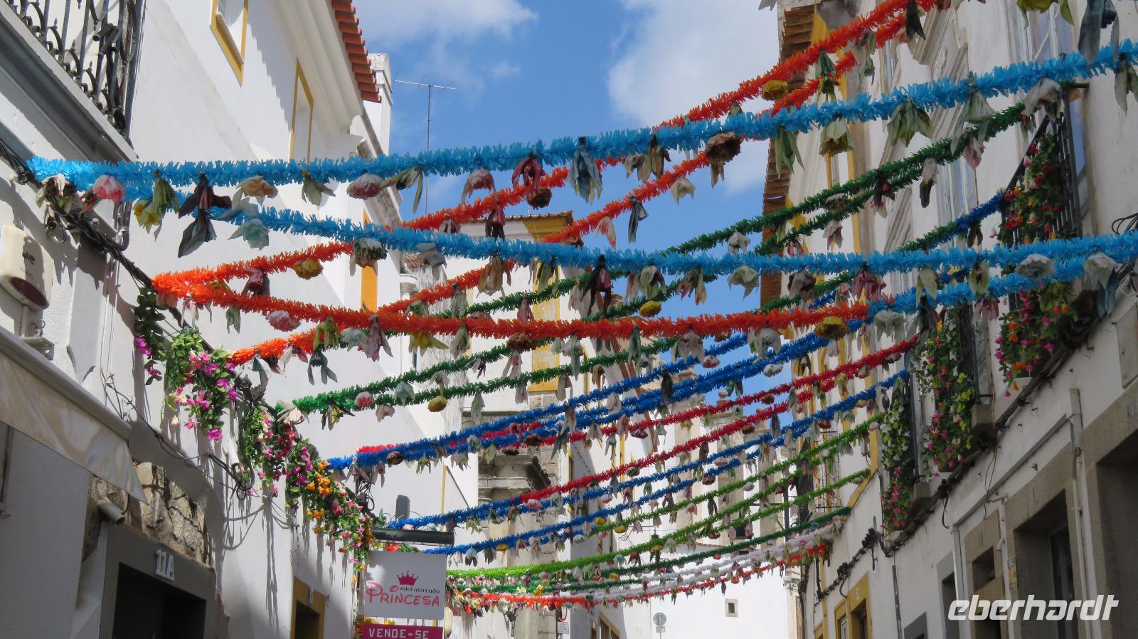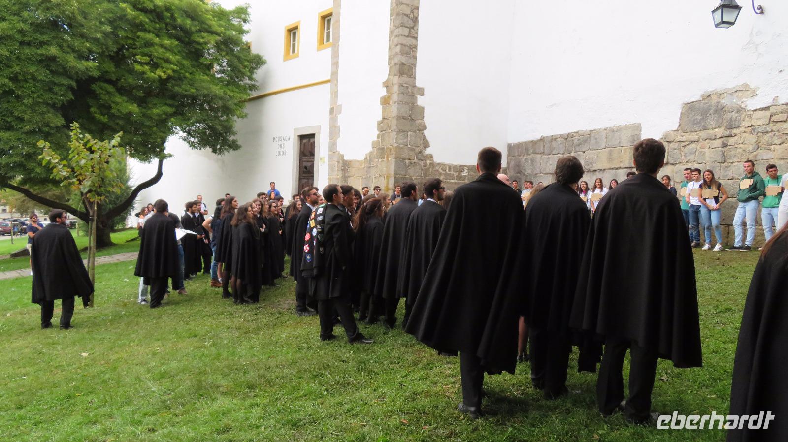 Einen Mittagspause legen wir in Evora ein, der Hauptstadt des Alto Alentejo, Weltkulturerbe der UNESCO. Auch diese Stadt ist von einer römischen Stadtmauer umgeben, die größtenteils noch erhalten blieb. Hier treffen wir auf Studenten, die die neuen Kommilitonen in eigenen Zeremonien willkommen heißen.