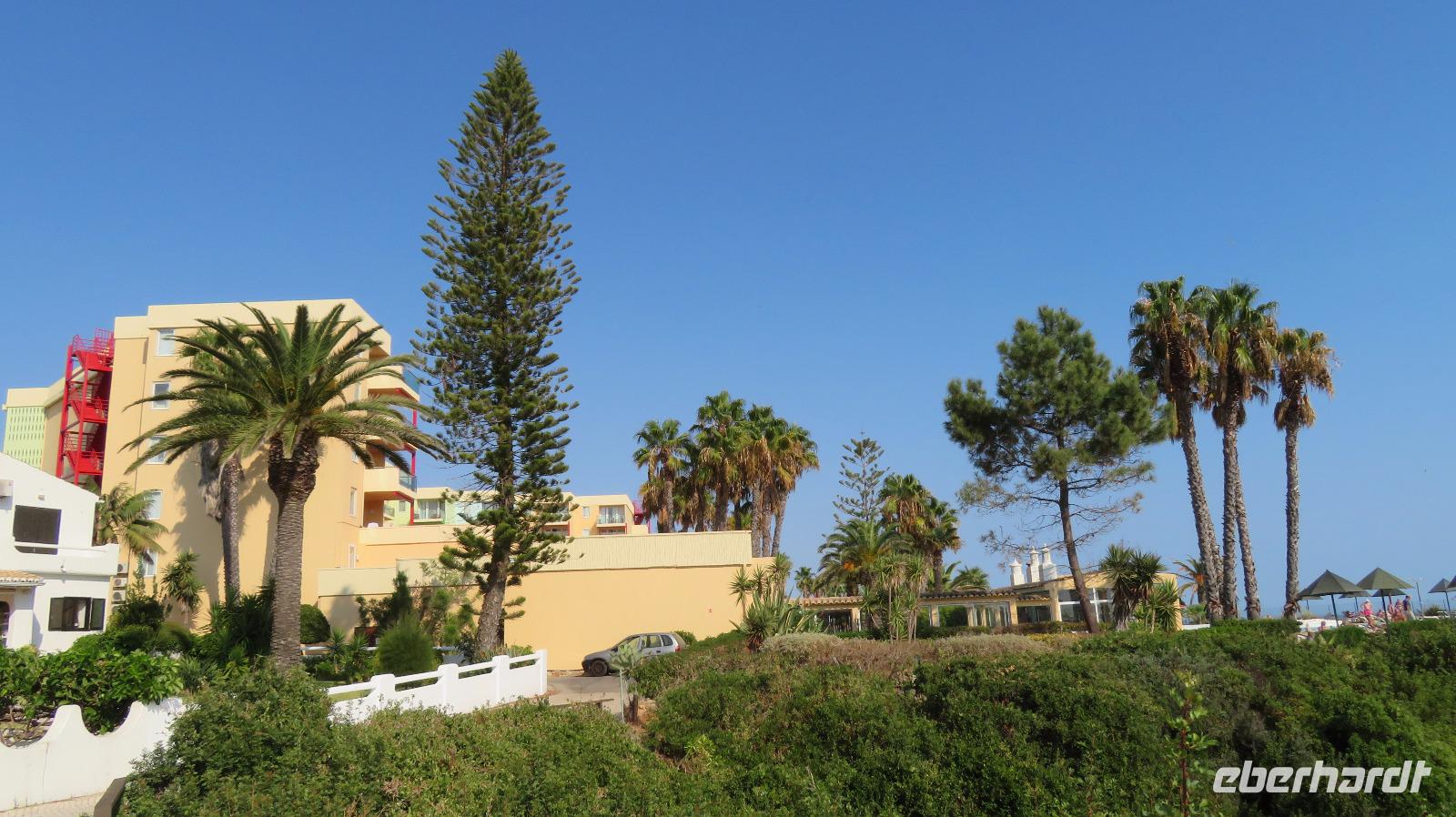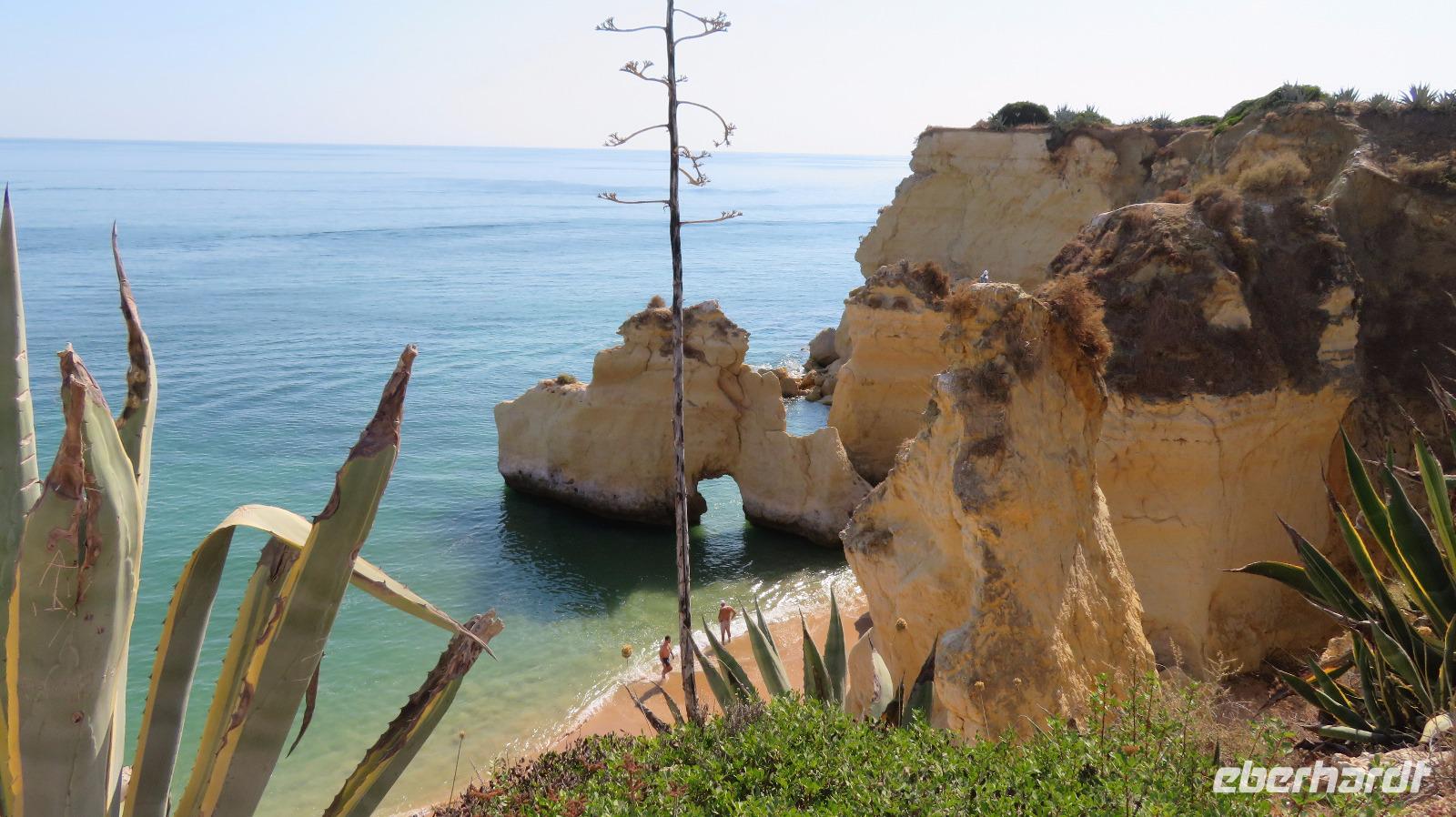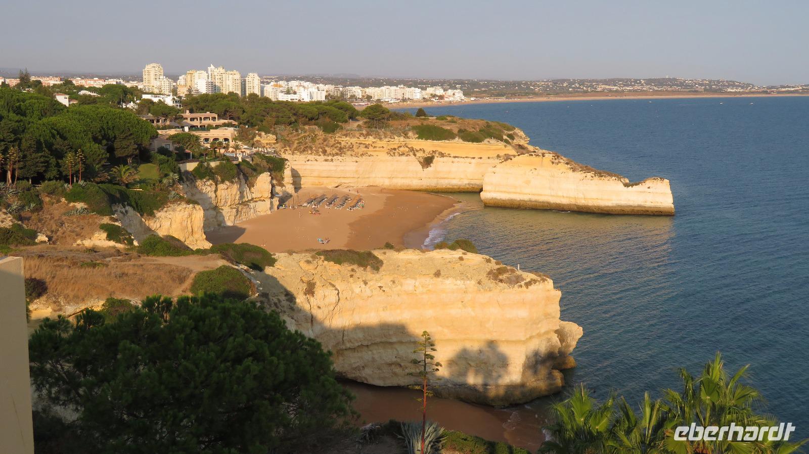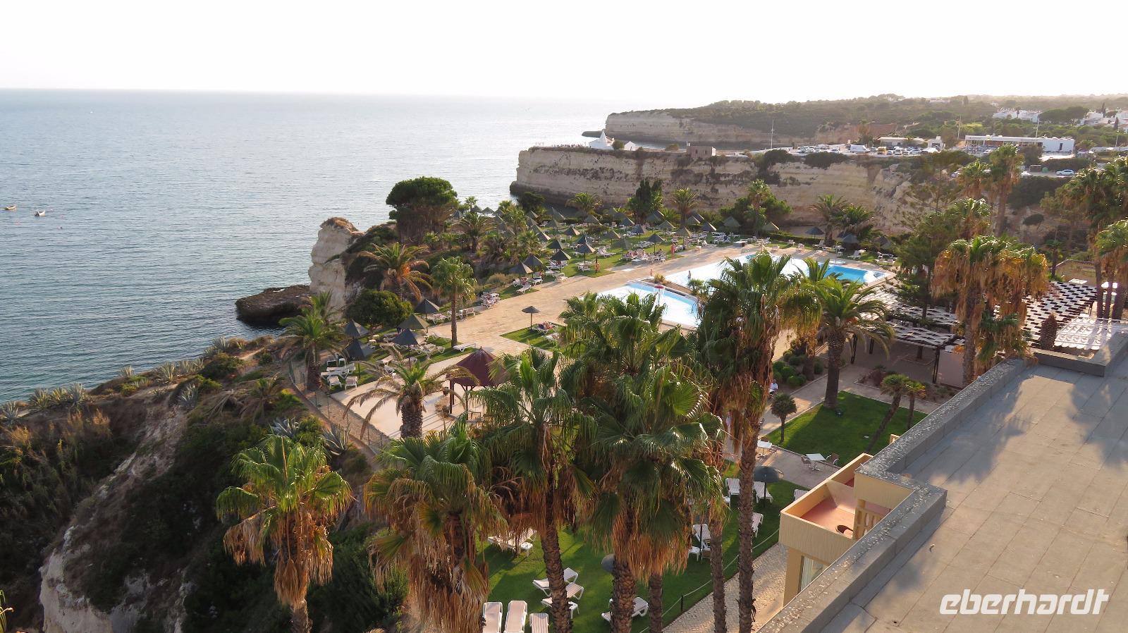 Heute haben wir einen freien Tag zur Verfügung. Sehr erholsam, wenn man ein Hotel in so herrlicher Lage hat, direkt am Meer, mit sehr schöner Poolanlage. Aber auch links und rechts des Hotels ist man in wenigen Minuten über eine Treppe am Strand, links an der Praia da Cova Redonda, rechts an der Praia da Senhora da Rocha und von dort weiter durch einen Tunnel zur Praia Nova. Das schöne Wetter und auch die Meerestemperaturen locken zum Bade und einige Gäste nutzen auch diese Gelegenheit.