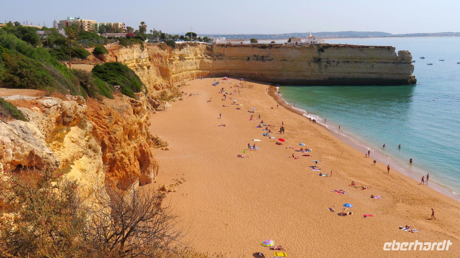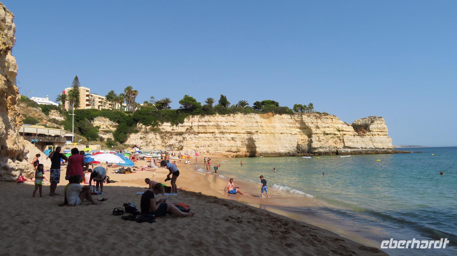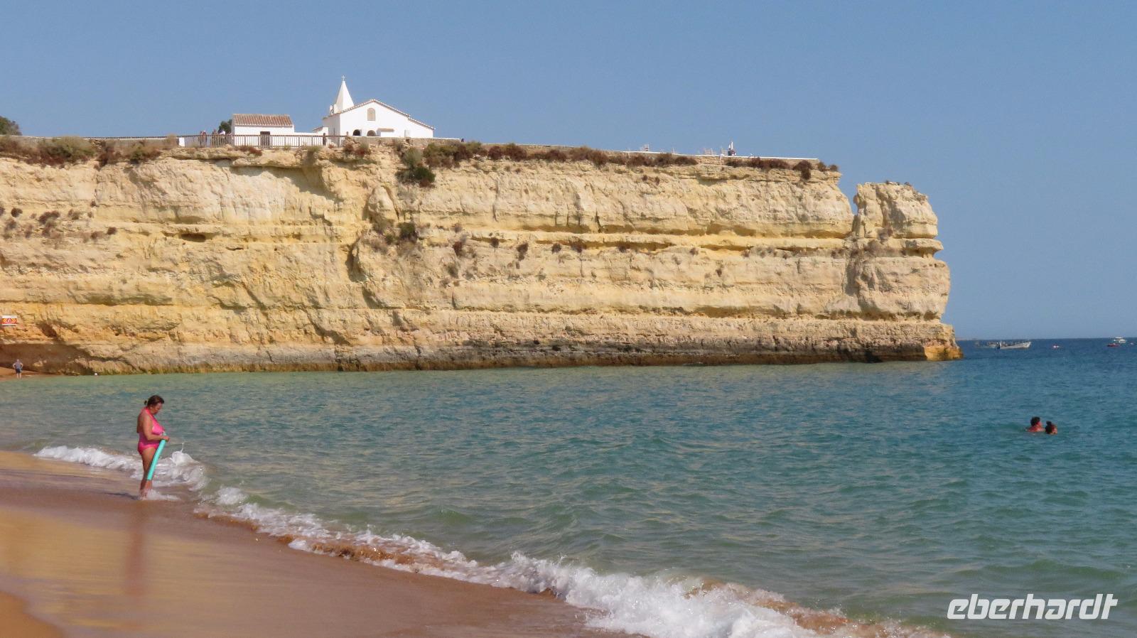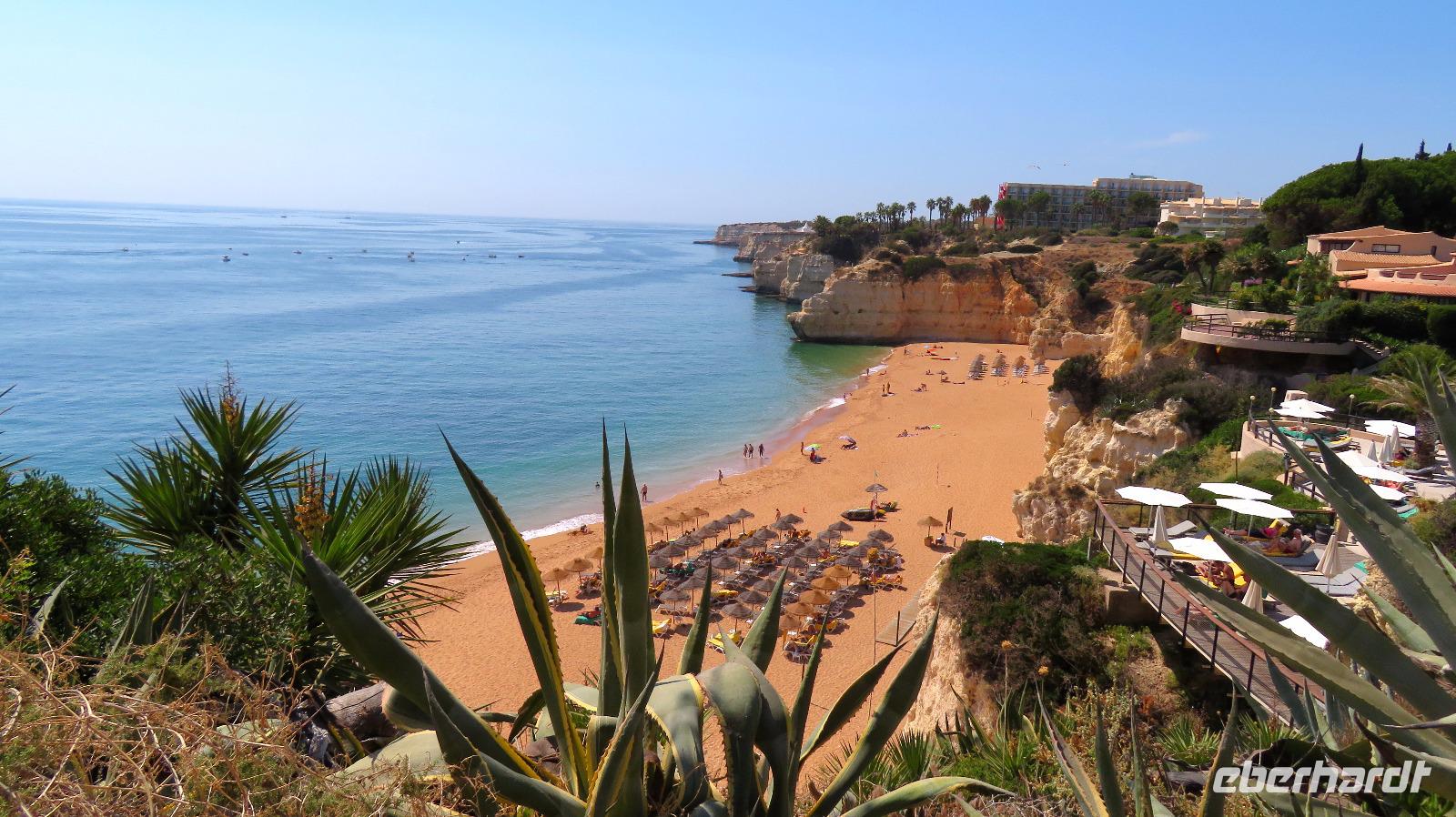 Heute haben wir einen freien Tag zur Verfügung. Sehr erholsam, wenn man ein Hotel in so herrlicher Lage hat, direkt am Meer, mit sehr schöner Poolanlage. Aber auch links und rechts des Hotels ist man in wenigen Minuten über eine Treppe am Strand, links an der Praia da Cova Redonda, rechts an der Praia da Senhora da Rocha und von dort weiter durch einen Tunnel zur Praia Nova. Das schöne Wetter und auch die Meerestemperaturen locken zum Bade und einige Gäste nutzen auch diese Gelegenheit.