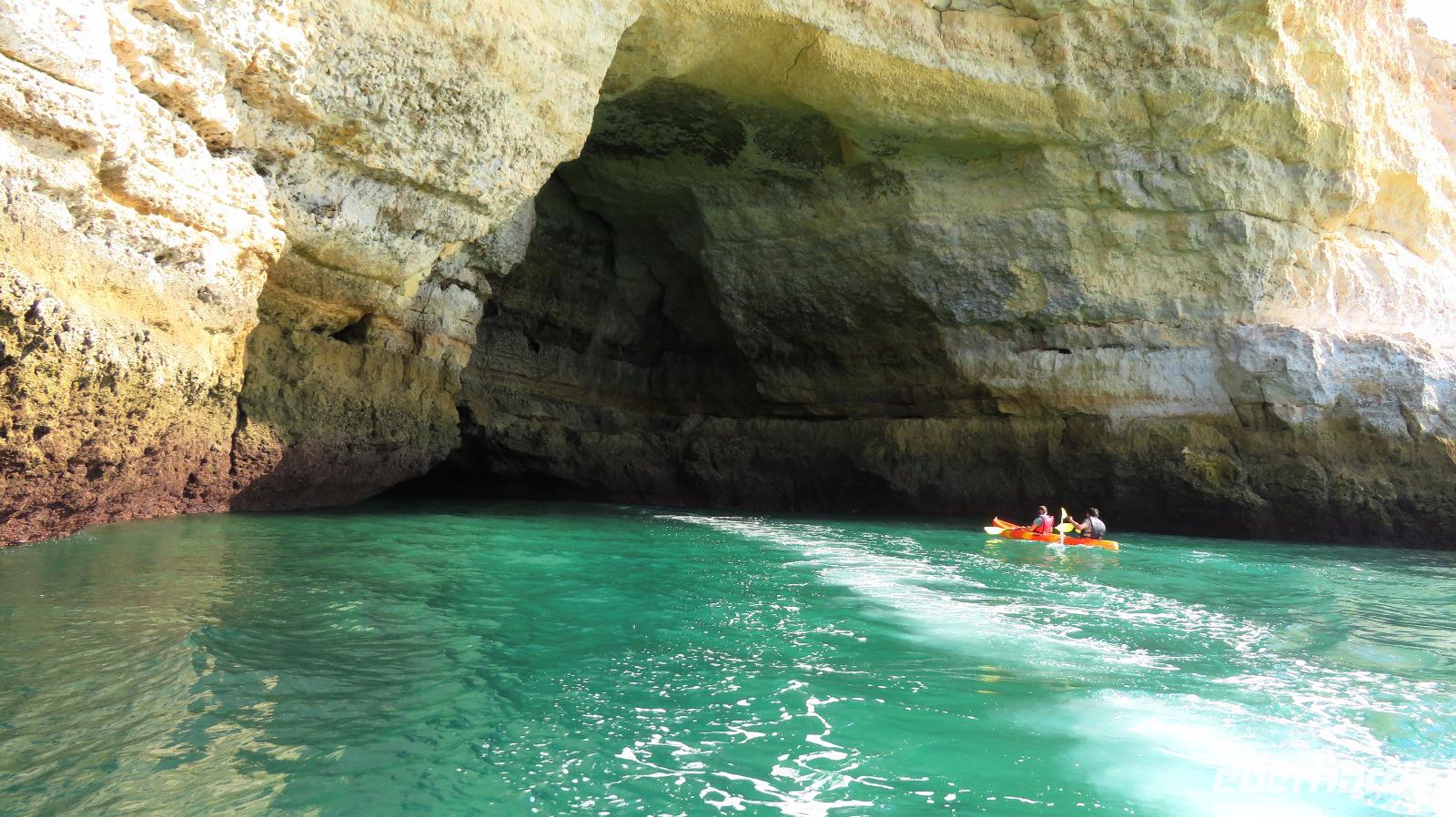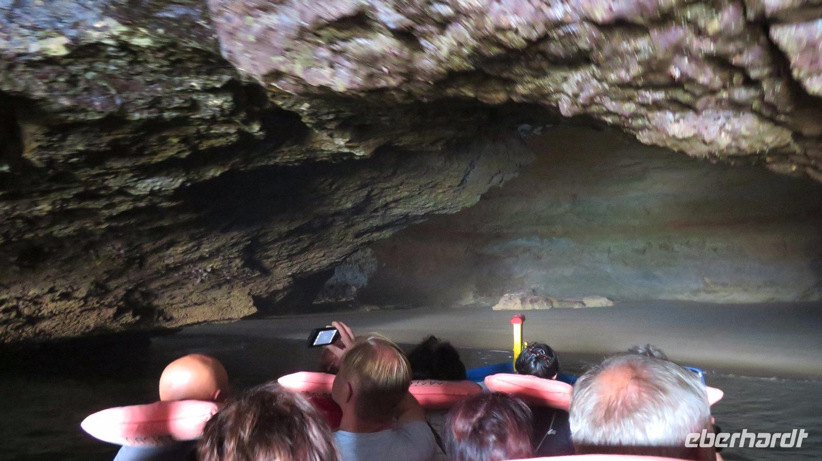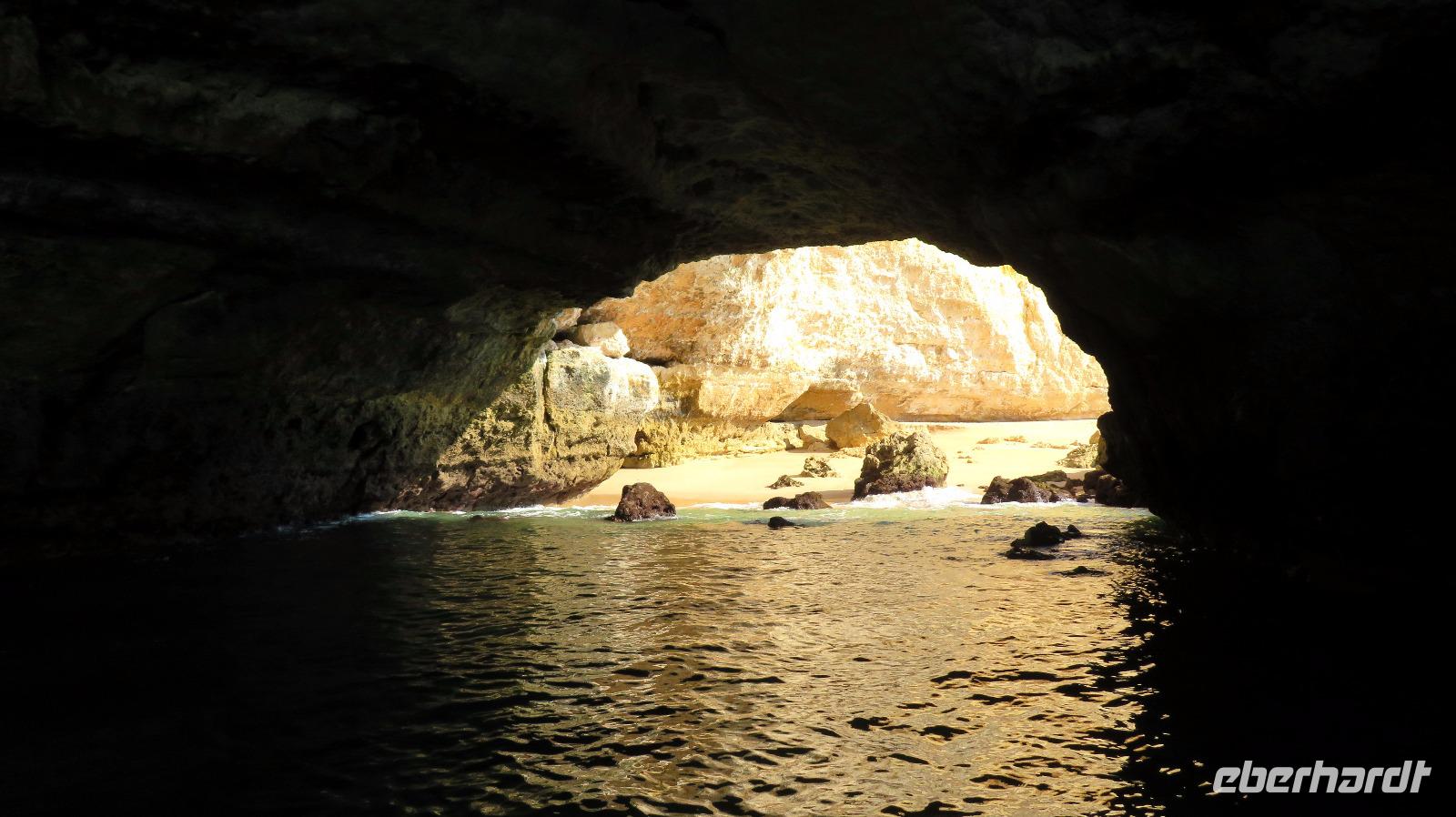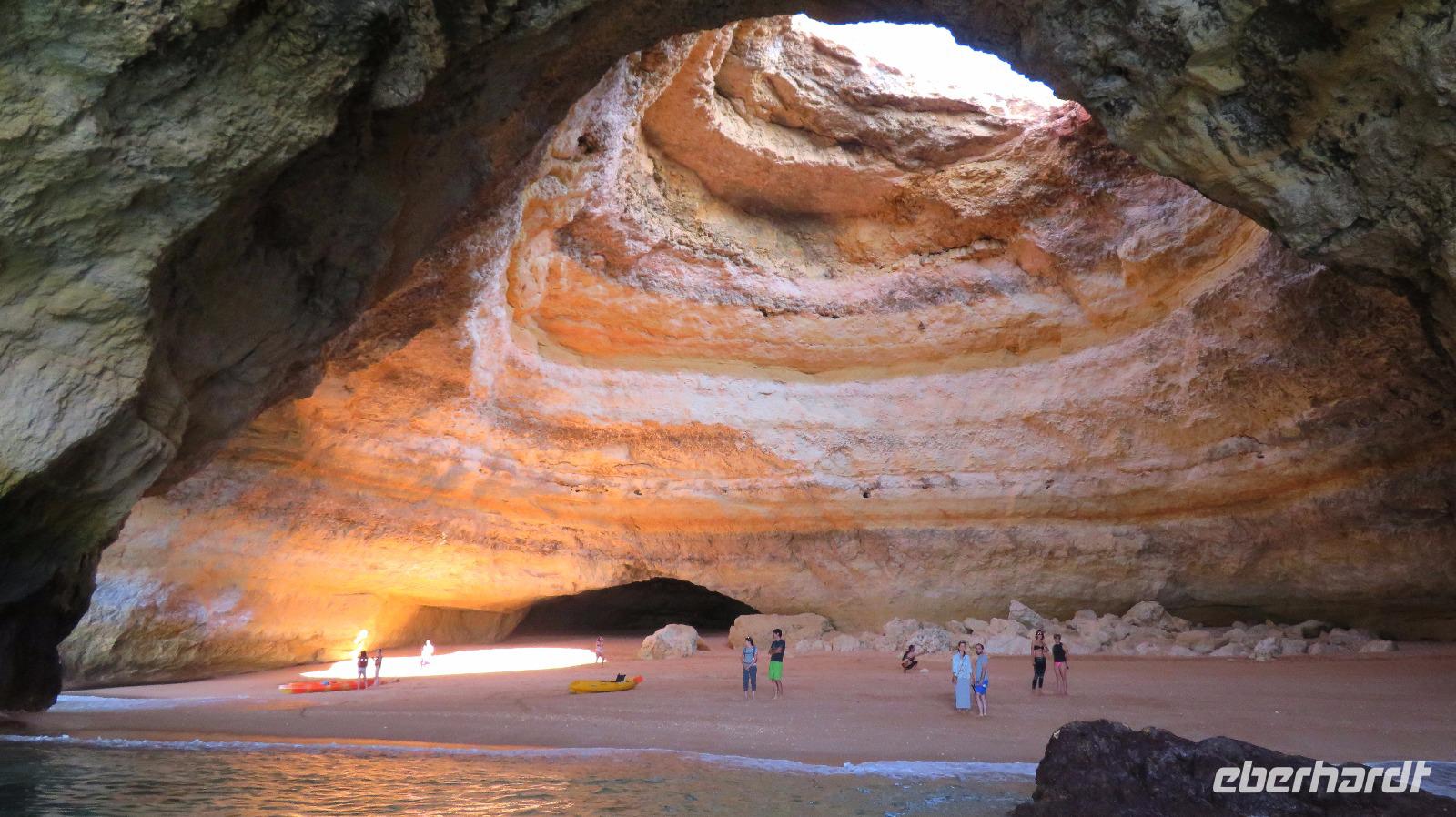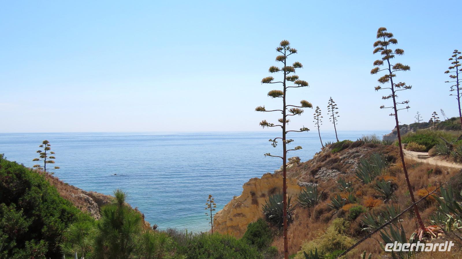 Doch Reisebegleitung Petra hat für uns morgens eine Bootstour organisiert. Sicher eines der Highlights der Reise für Naturliebhaber. Nur das Einsteigen direkt am Strand ist etwas beschwerlich. Mit einem kleinen Boot fahren wir an der Steilküste entlang gen Westen. Herrliche Klippen, Buchten und Höhlen können wir bewundern. Hier zeigt sich die Algarve von ihrer schönsten Seite. Am Nachmittag kann man noch ein Stück an der Steilküste umherwandern, aber es ist recht heiß.