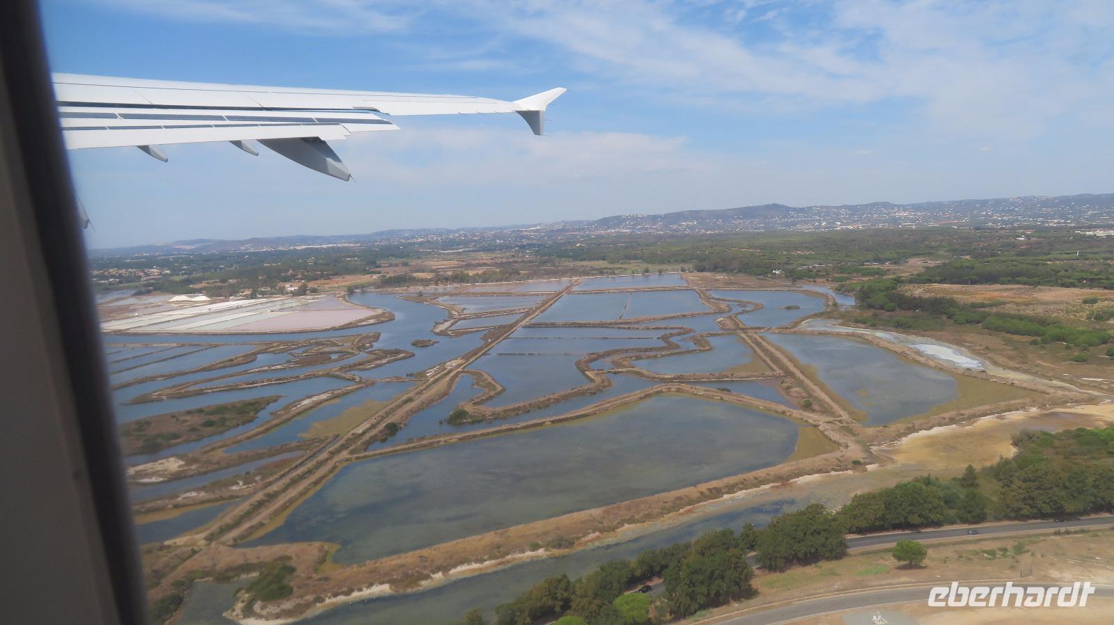 Nach dem Frühstück ist es gegen zehn Uhr Zeit, zum Flughafen nach Faro zu fahren. Eine portugiesische Reiseleiterin begleitet uns zum Flughafen nach Faro. Die drei Dresdener Gäste werden erst am Nachmittag abgeholt, da ihr Flieger der Germania erst 18.15 direkt nach Dresden fliegt. Alle anderen fliegen 13.25 Uhr planmäßig gemeinsam zuerst nach Frankfurt, wo sich dann unsere Wege trennen. Petra hat glücklicherweise schon die Bordkarten ausgedruckt, so dass wir alle direkt zur Gepäckabgabe gehen können. Wir haben noch etwas Zeit den Flughafen zu entdecken. Unsere Lufthansa-Maschine nach Frankfurt wird schon mit 30 Minuten Verspätung angezeigt, aber wir landen dann doch noch pünktlich in Frankfurt. Glück für unsere Berliner Gäste! Die gleiche Maschine bringt sie vom gleichen Gate weiter nach Tegel. Alle anderen haben genügend Zeit, ja sogar zu viel, zum Umsteigen.