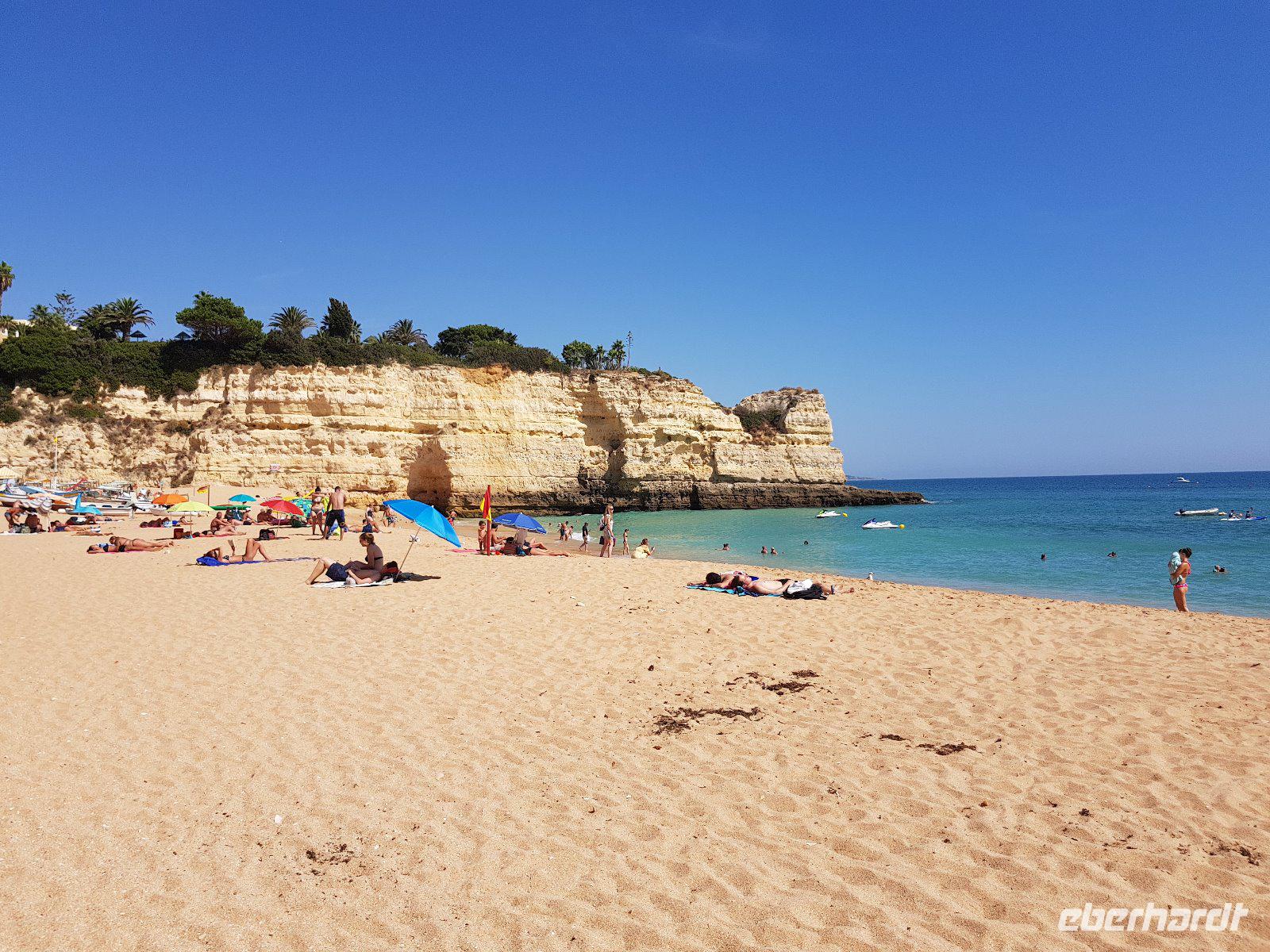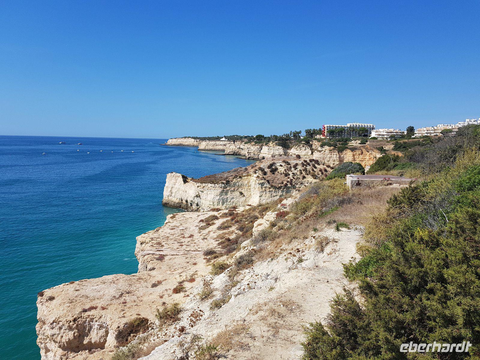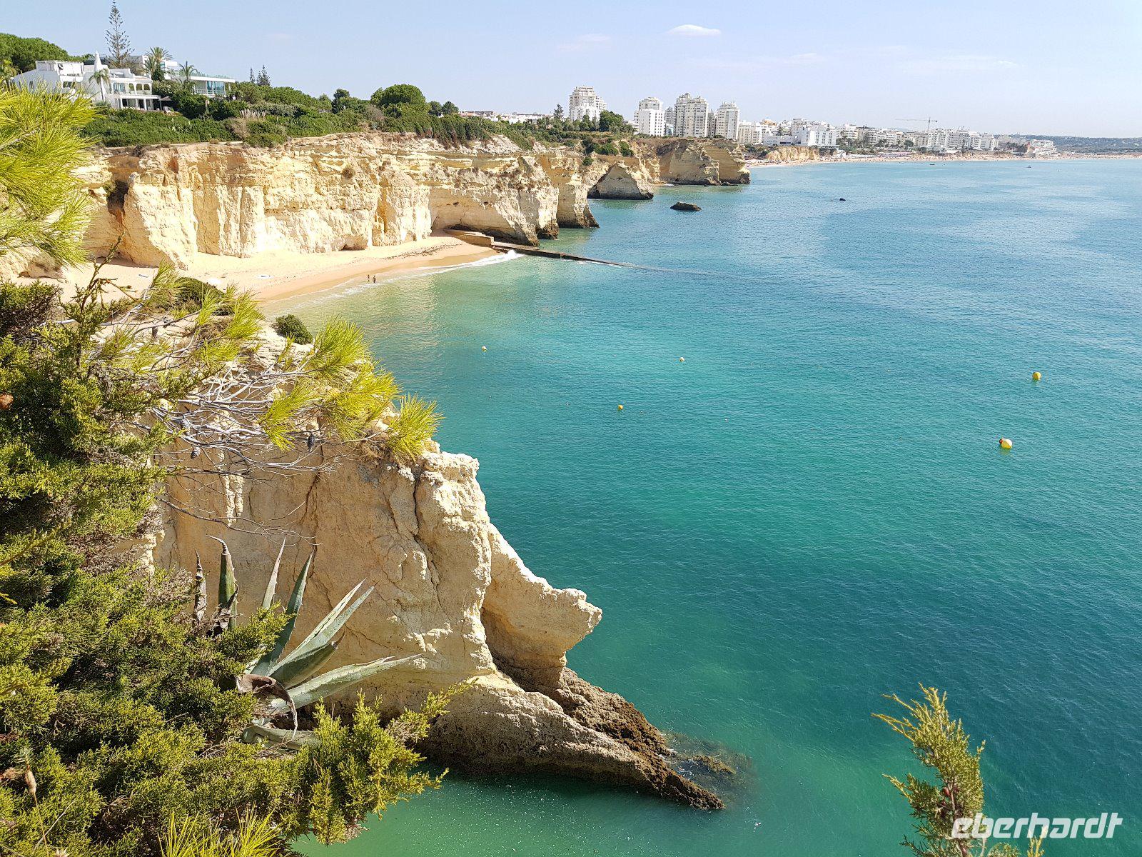 Weiter geht es in den Ort Armação de Pêra. Unser Hotel Pestana Viking liegt direkt am Meer, an dem sich ockerfarbene Klippen im türkisfarbenen Waser auftürmen. Ein herrlicher Ort - das Abendessen ruft.