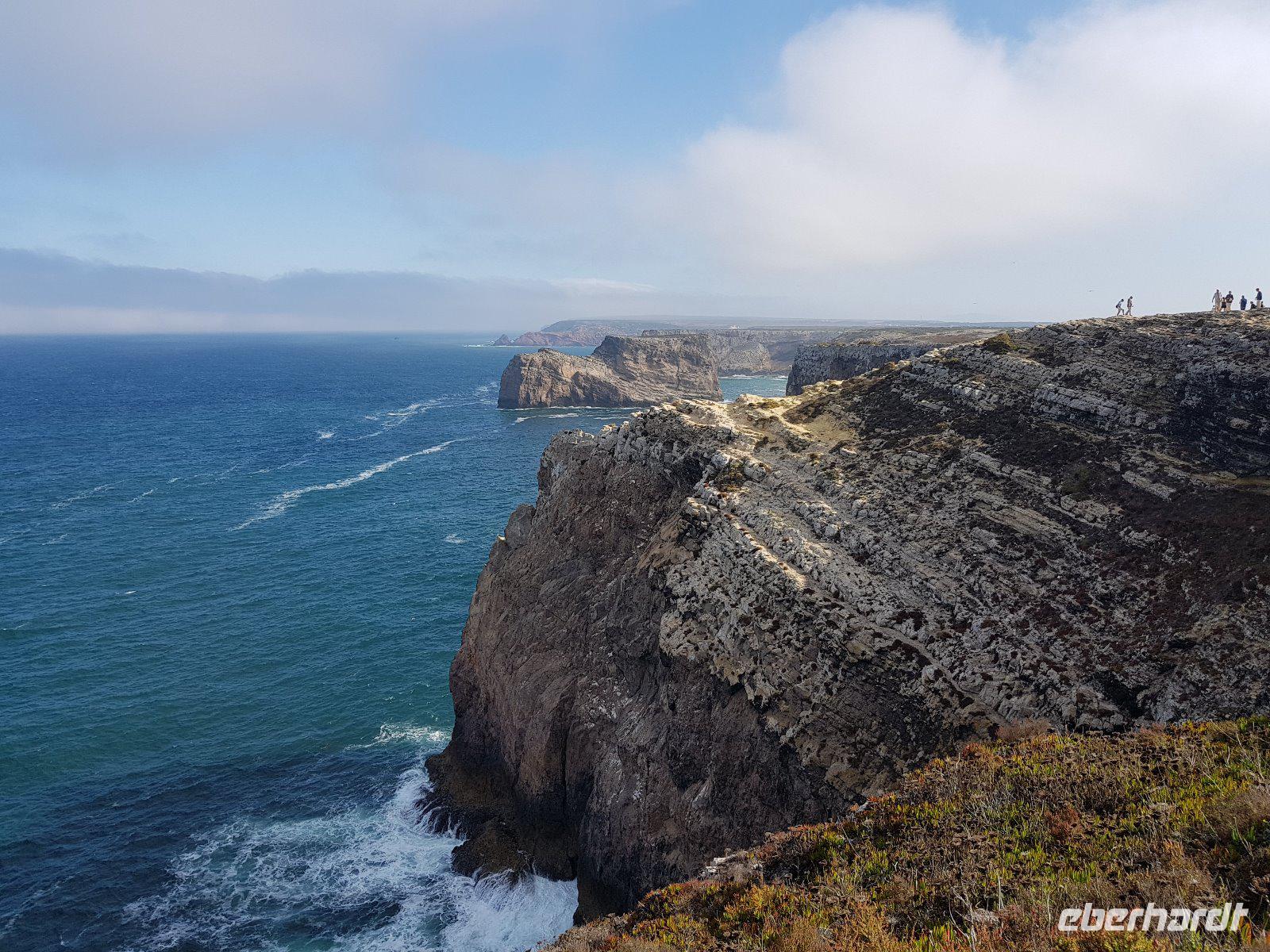 Der südwestlichste Punkt des europäischen Festlandes liegt ca. 6 km von der Stadt Sagres entfernt. Es ist eine karge, weit ins Meer ragende Felsspitze, das letzte Stück Land was die portugiesischen Seefahrer sahen, bevor sie in das Unbekannte aufbrachen. Es gibt dort einen legendären Bratwurststand, der von März bis Oktober dort den Leuten die letzte Bratwurst vor Amerika verkauft. Da wir bereits am frühen Vormittag vorbeischauen, ist die Lust auf Bratwurst noch nicht so ausgeprägt - das Frühstück im Hotel war einfach zu gut.