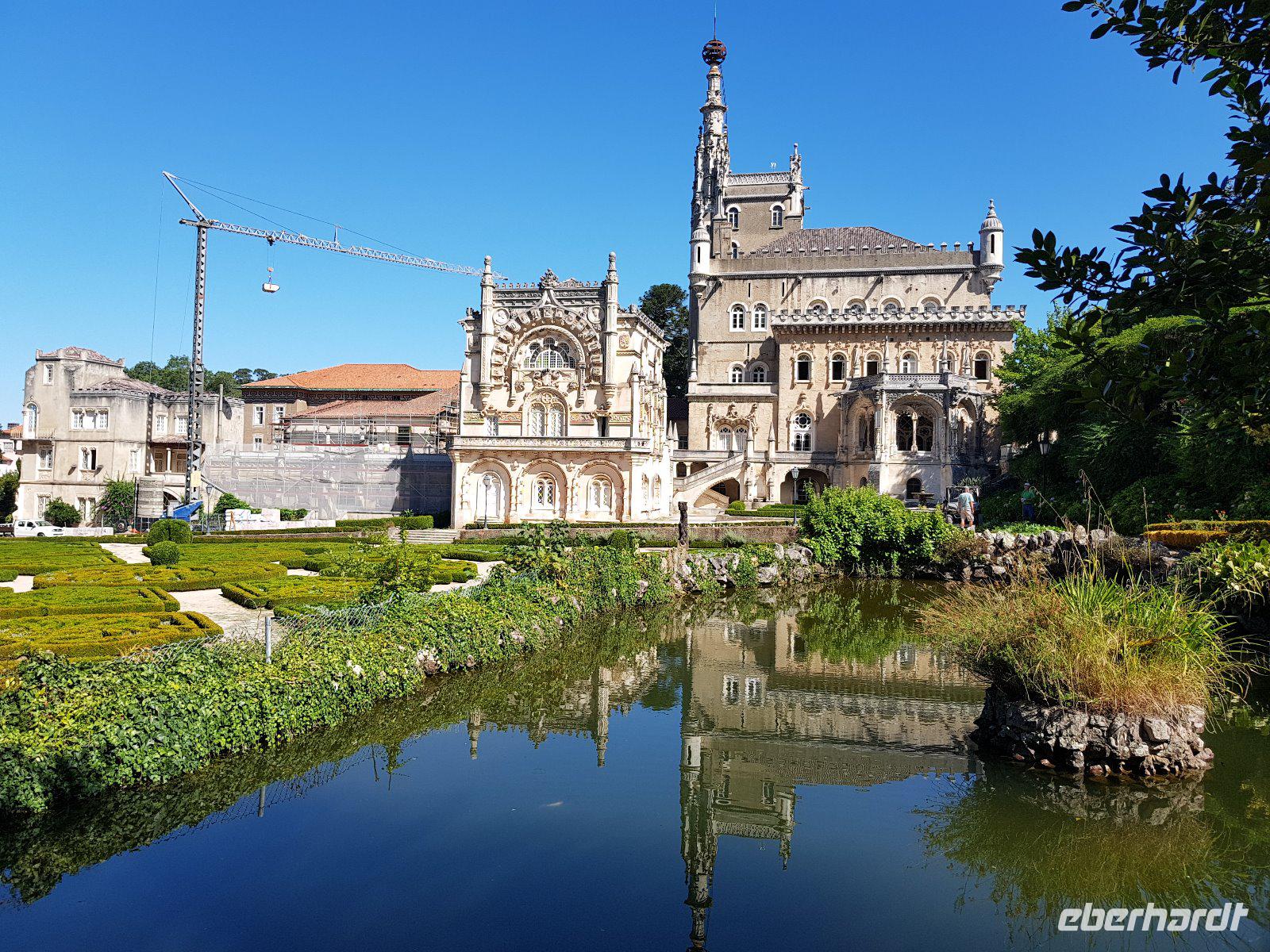 Weiter geht es in die Wälder des Hinterlandes genannt Mata Nacional do Bucaco, ein 105 Hektar großes eingezäuntes Gebiet mit über 700 heimischen Pflanzenarten. Mexikanische Zedern und baumgroßen Farne laden zu einem Spaziergang ein. Wir besichtigen außerdem noch den märchenhaften Palast, ein heutiges Luxushotel, welches ursprünglich 1907 als königliche Jagdresidenz diente. Der Palast wirkt sehr extravagant mit seinen Türmchen und Spitzen, drum herum verteilen sich Rosengärten und Buchbaumhecken und formen ein geometrisches Labyrinth.