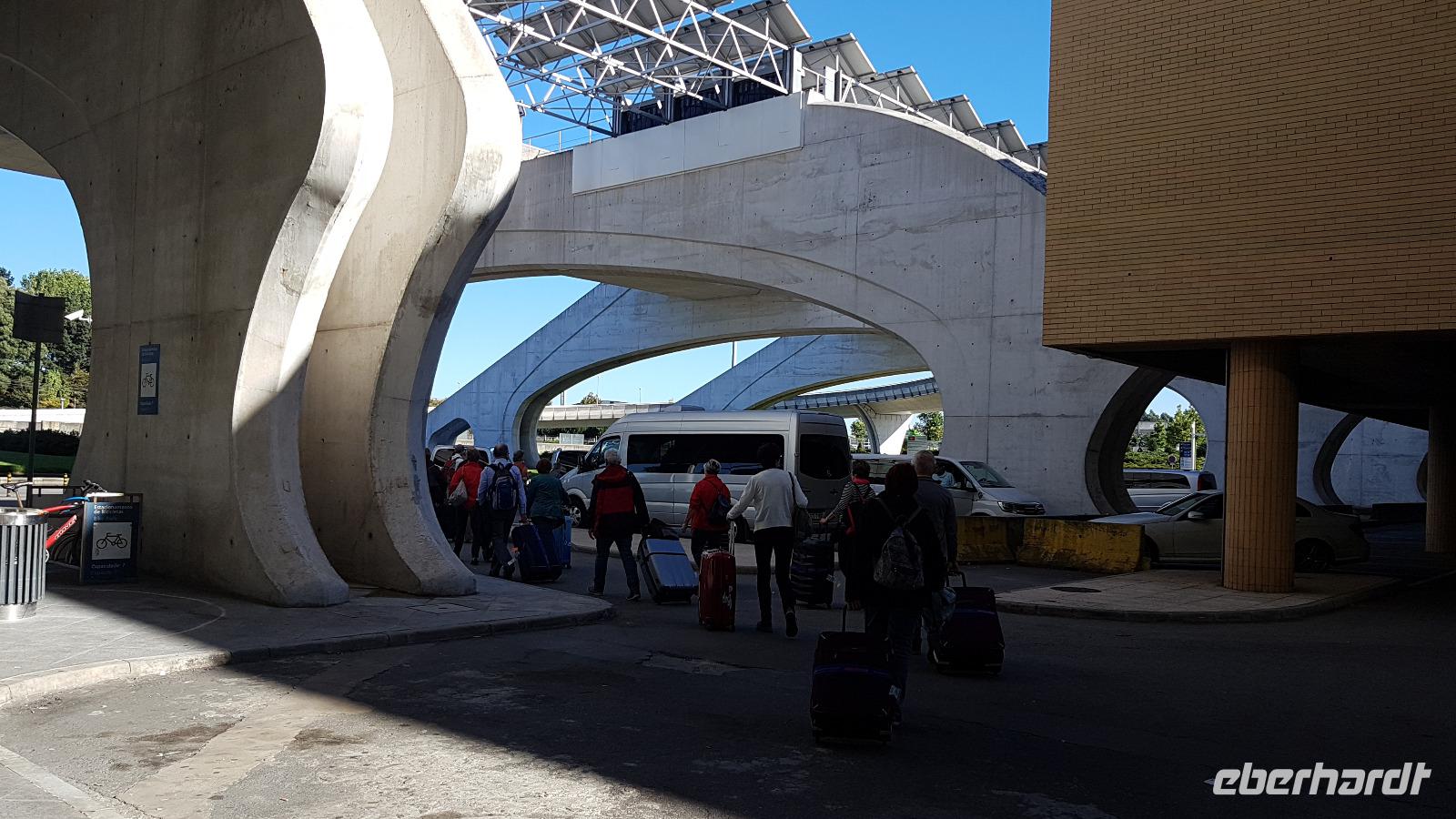 Von Dresden, Leipzig und Berlin starten wir unsere Reise, die uns in Frankfurt zusammenführt. Mit etwas Verspätung können wir dann nach Porto fliegen, ein angenehmer und ruhiger Flug obwohl der Kapitän die Verspätung mit kräftigem Wind über Frankfurt begründete. In Porto erwartete uns Maria, unsere Reiseleiterin hier und los ging es Richtung Hotel. Das ABC-Hotel Casa da Musica liegt nahe dem gleichnamigen "Casa da Musica"- ein Haus der Musik- ein eigenwilliger Bau des Niederländers Rem Koolhaas mit einer phantastischen Akkustik. Ebenso in unmittelbarer Nähe die Boavista Rotunda- ein riesiger Kreisverkehr mit einem Park im Zentrum, darin wiederum eine Art Siegessäule- sie zeigt eindruckvoll, wie der Löwe den französischen Adler Napoleons besiegt. All das erfahren wir bereits auf der Fahrt. Wir fühlen uns schon nach kurzer Zeit heimisch und als seien wir in vertrauter Umgebung.
