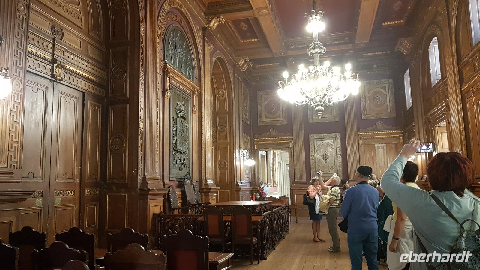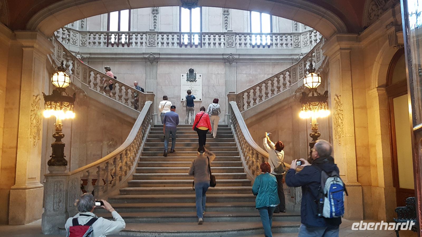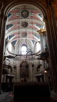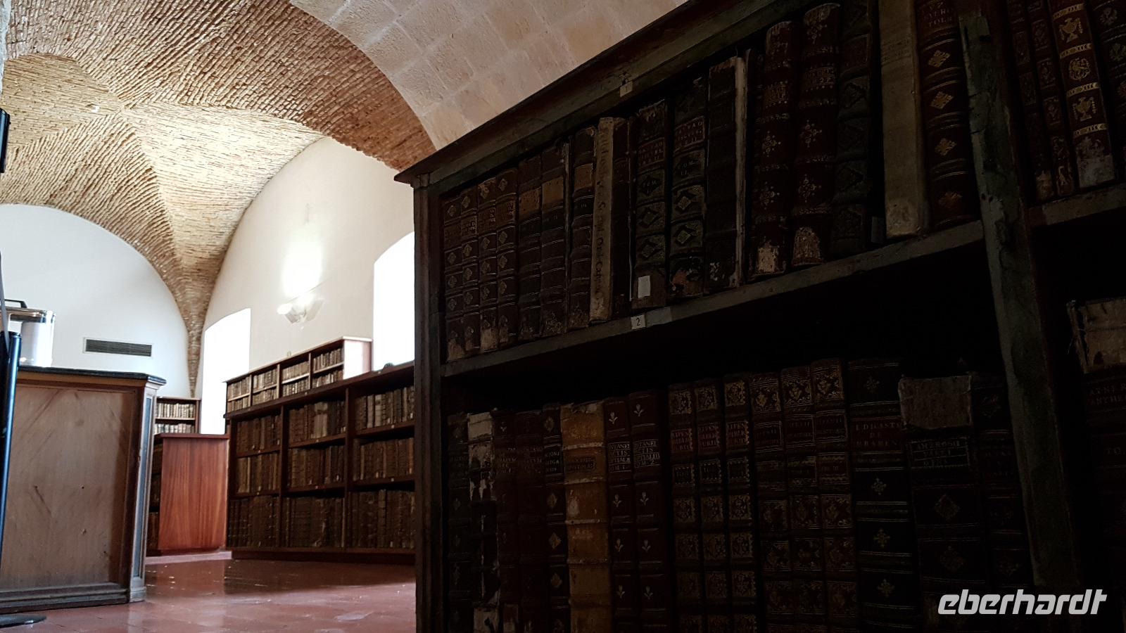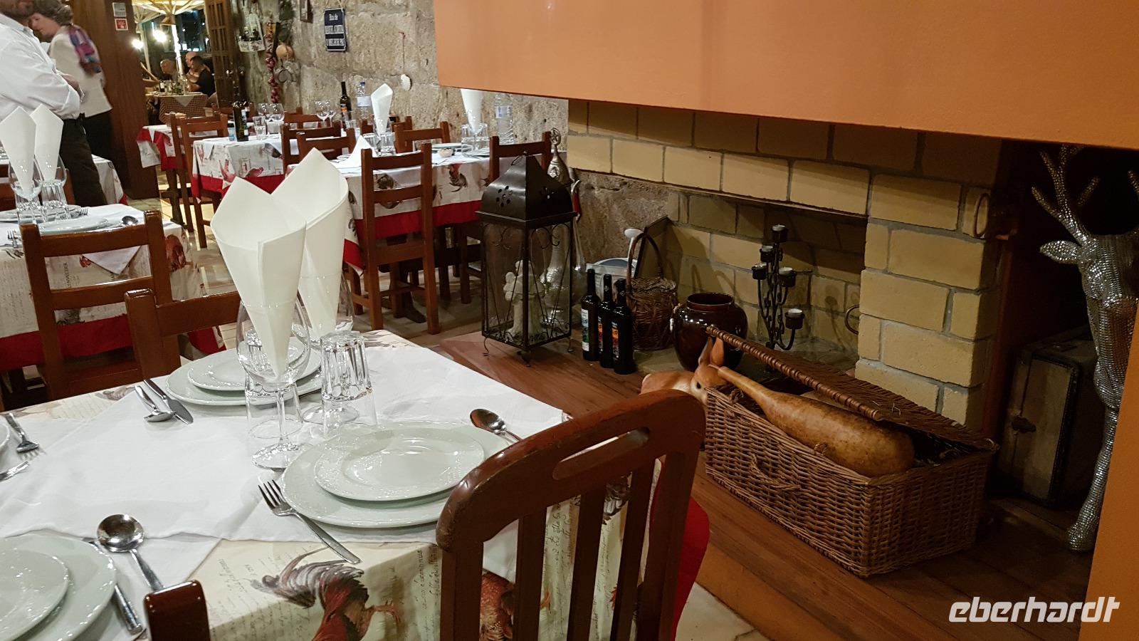 Natürlich wollen wir die berühmte Bibliothek der Universität besuchen, doch vorher ist Zeit für einen späten Mittagsimbiss. Wir staunen über riesige Baisser in den Auslagen, entscheiden uns dann aber doch lieber für eine kleine Mittagsmahlzeit. Punkt 16 Uhr sind wir dann überpünktlich auf dem Universitätsgelände und an der Bibliothek. Maria erzählt uns, warum der Turm hier die "Ziege" genannt wird: er regelte das Leben der Studenten. Sie wohnten außerhalb der Universitätsgebäude und der Turm kündete den Lernbeginn an und nach dem Läuten abends hatten Studenten nichts mehr auf den Straßen zu suchen...Unser Ziel ist aber die berühmte Bibliothek. Mehr als 50.000 Bände lagern hier in Räumen, ausgekleidet mit von Gold überzogenem Ebenholz, vergoldeten Wappen und Kronen über jedem Portal. Wir sind beeindruckt und folgen Maria auf einem Rundgang durch die Hallen und Gänge, die der König D. João III. der Universität überlassen hatte. Den Prunksaal können wir leider nicht besichtigen, hier findet gerade die Verteidigung einer Doktorarbeit statt. Fotos vom Universitätsplatz folgen und dann spazieren wir zur Kathedrale. Sie stammt tatsächlich aus der Gründungszeit Portugals und wir staunen, dass diese Größe und Höhe im romanischen Baustil möglich waren. Dann spazieren wir weiter durch die Gassen und "Studentenrepubliken", bewundern eine "portugiesische Gitarre" am Stadttor und erreichen schließlich die Kirche de Santa Cruz. Hier befinden sich im Inneren wunderschöne Azulejos, da aber gerade eine Messe gelesen wird bleiben wir nur kurz und stören nicht weiter. Mit unserem Bus geht es dann ins Hotel "Dona Ines" und hier verabschieden wir uns mit einem Applaus von Alvaro, unserem Busfahrer. Am Abend wartet ein gutes Buffett auf uns und mit einem Gläschen Wein klingt der Abend aus.