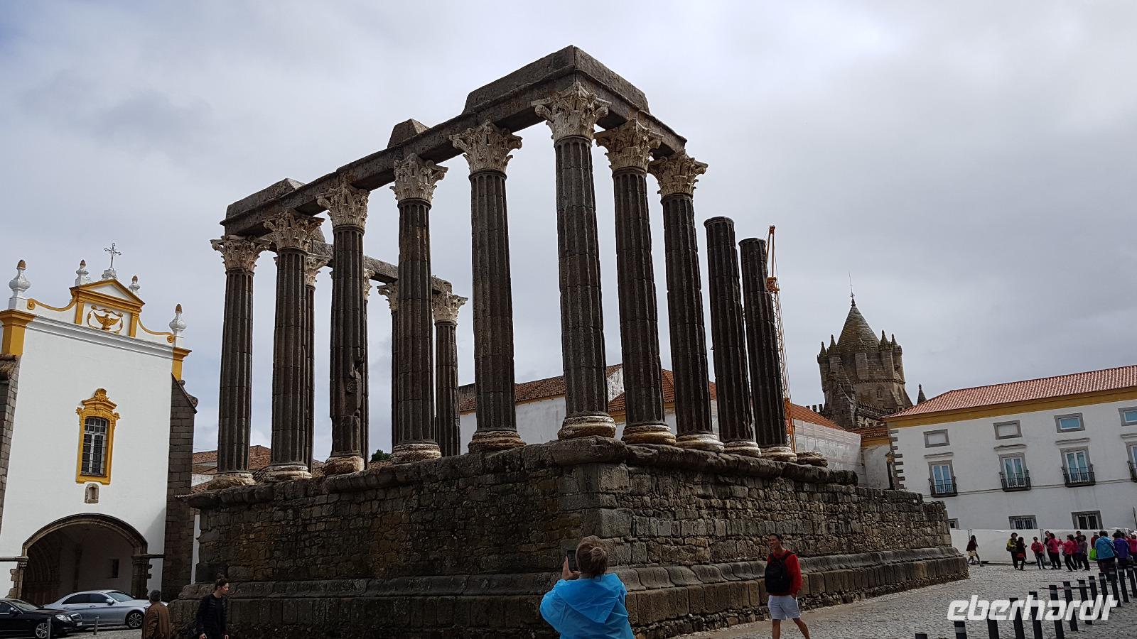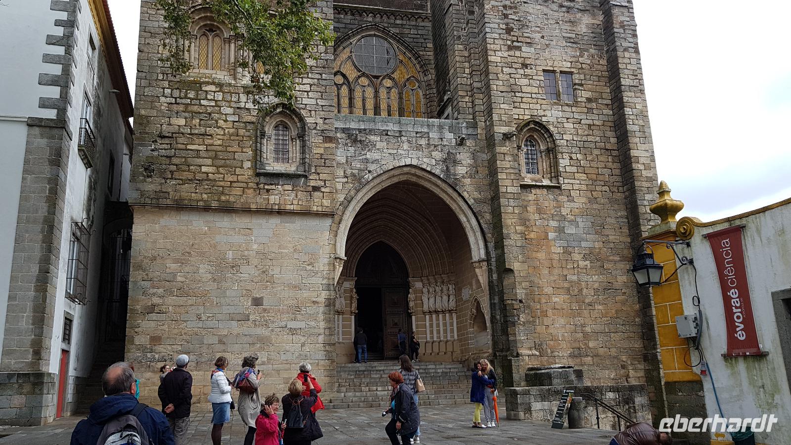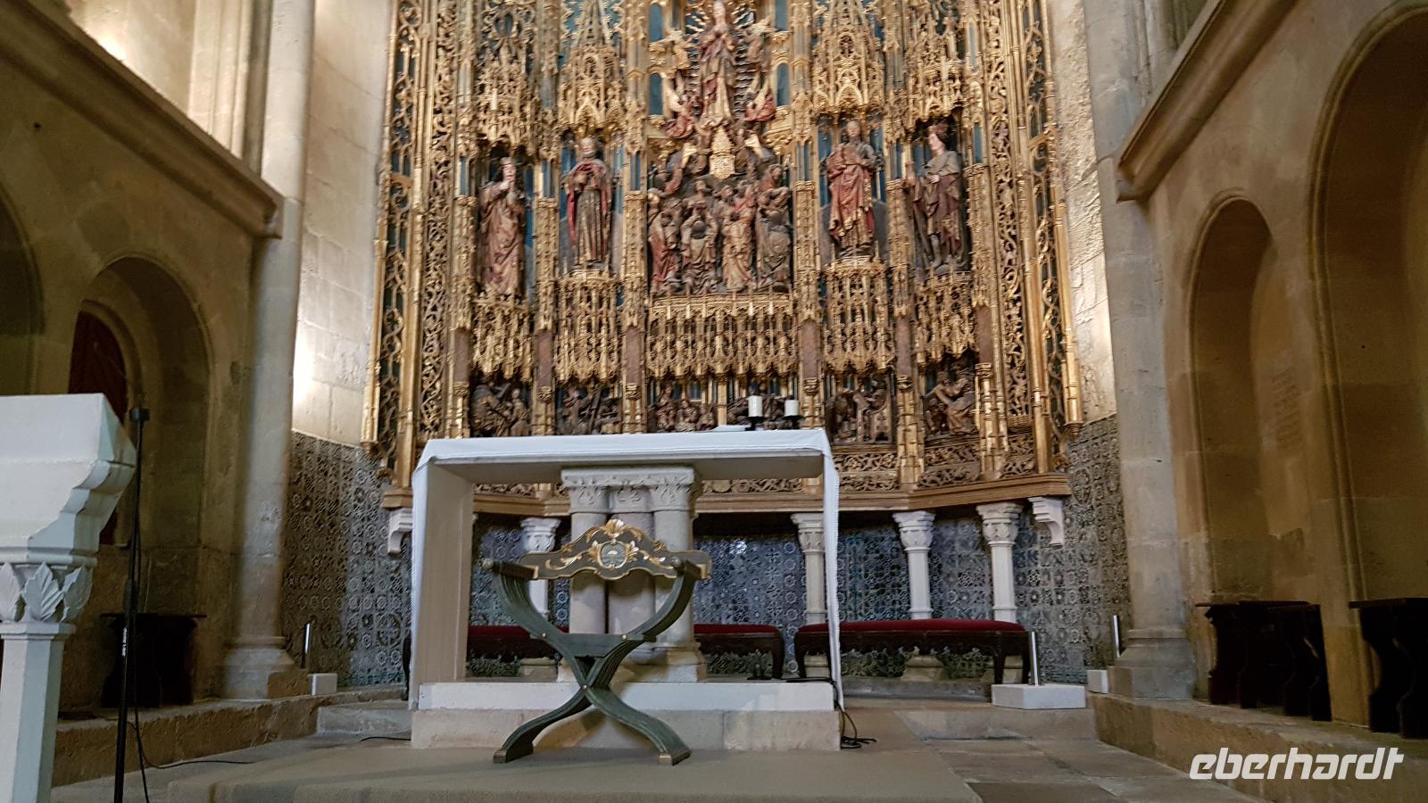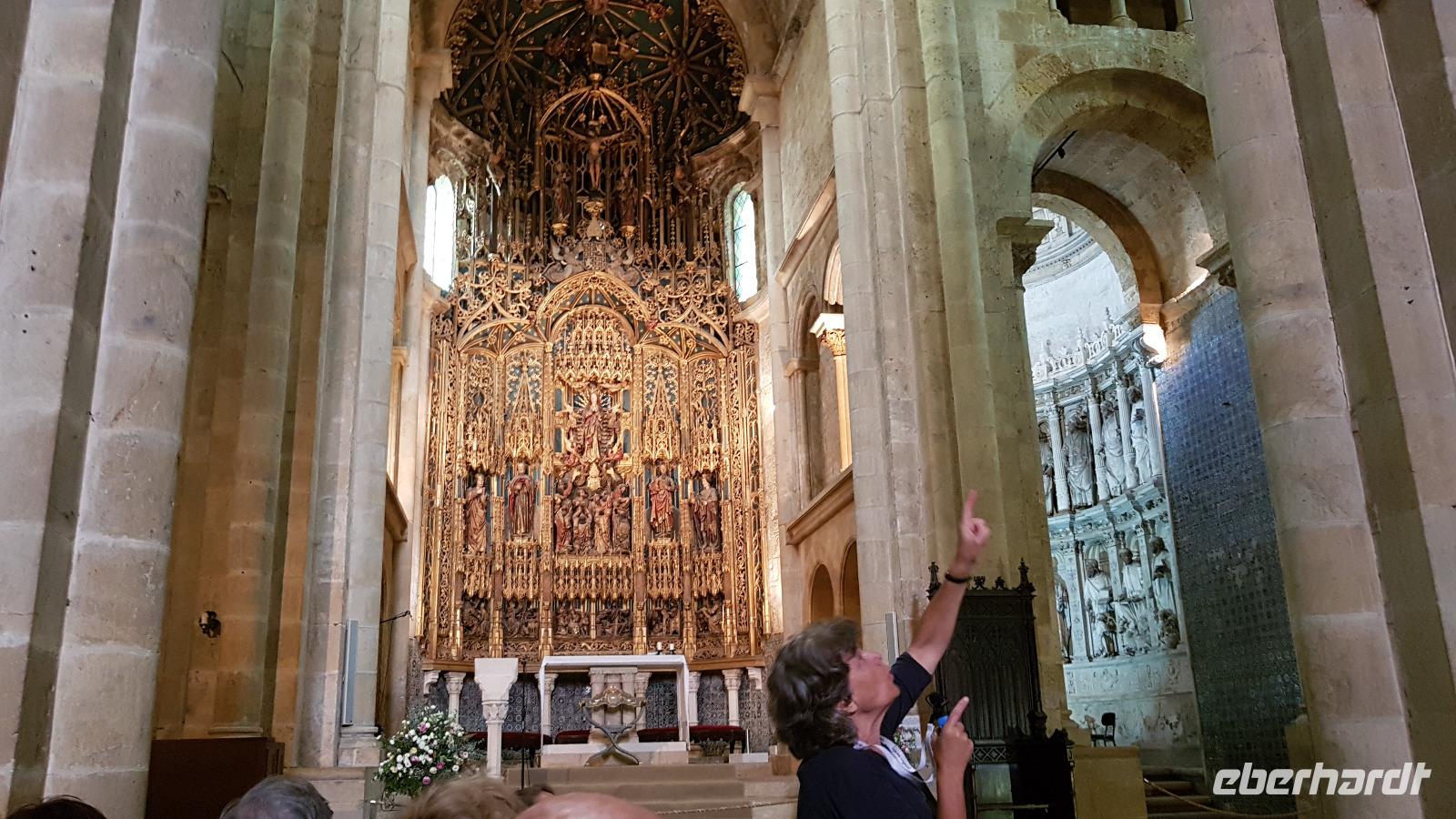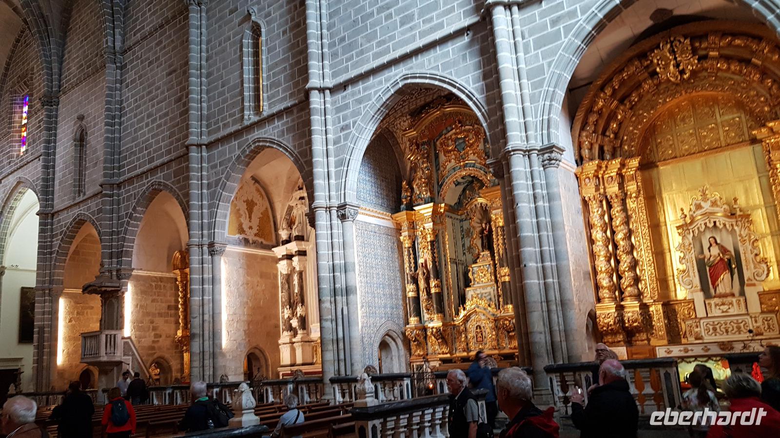 hatten wir bald erreicht und hier treffen wir auf römische Zeitzeugen- den Diana-Tempel. Es ist Zufall, dass er erhalten blieb. Er war nämlich quasi eingemauert in dem Schlachthof, der hier einmal stand. Jetzt sind die Säulen wieder freigelegt und eine der Sehenswürdigkeiten von Evora, der Hauptstadt des Alentejo. Eine weitere ist ihre Kathedrale. Sie empfängt uns mit einem wunderschönen gotischen Portal. Im Inneren dann eine der seltenen Darstellungen der schwangeren Jungfrau Maria. Die barocke Ausgestaltung der Kirche ist überwältigend und man könnte stundenlang hier verweilen und doch immer wieder etwas Neues entdecken. Wir spazieren weiter durch die Gassen der Stadt, die schon immer bedeutender Handelspunkt war und auf dem Marktplatz schließlich trennen wir uns kurz, jeder hat individuell Zeit, die Stadt weiter zu erkunden oder einen Mittagsimbiss zu sich zu nehmen. Dann ist noch Zeit, um der Igreja de São Vicente einen Besuch abzustatten. Eine schöne gotische Kirche mit vielen verschiedenen Altären in den Seitenschiffen. Dann verabschieden wir uns von Evora und fahren Richtung Süden. Am späten Nachmittag erreichen wir
