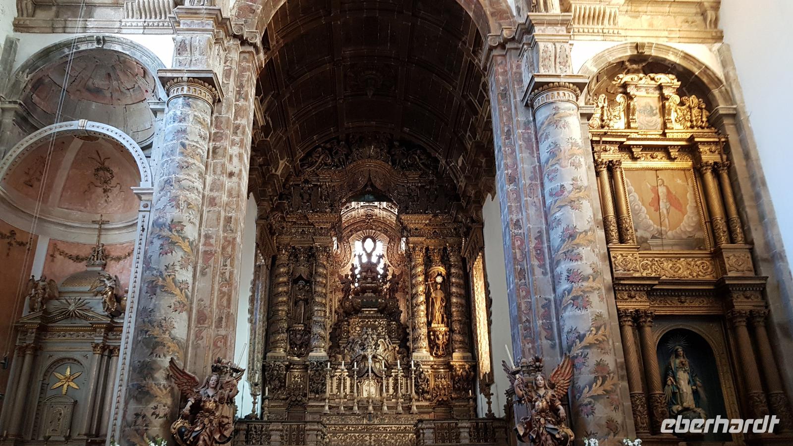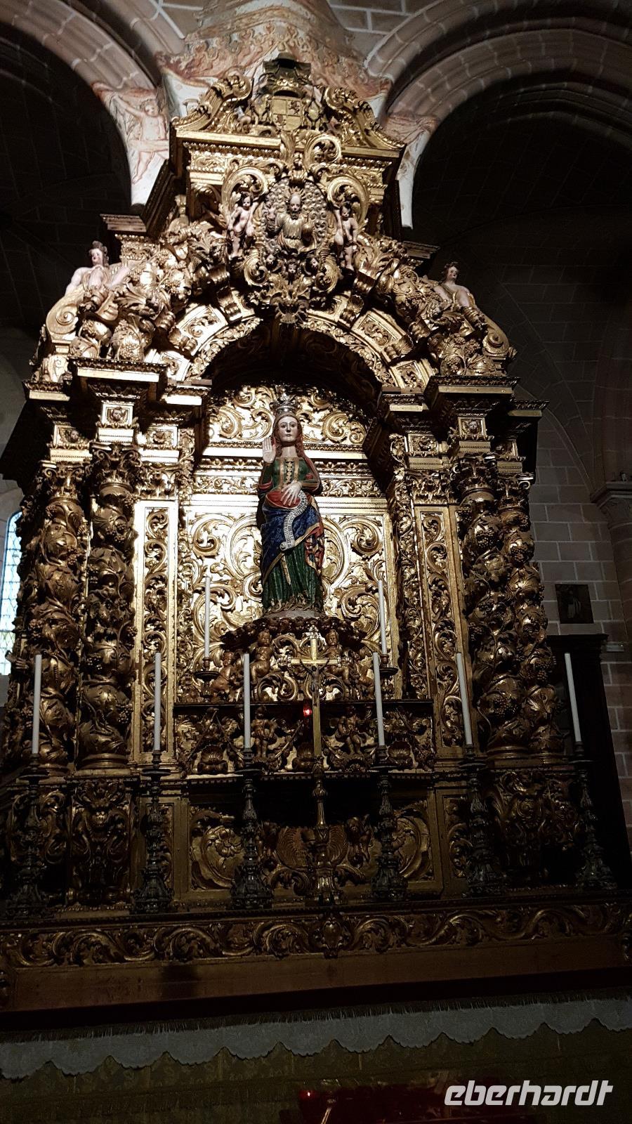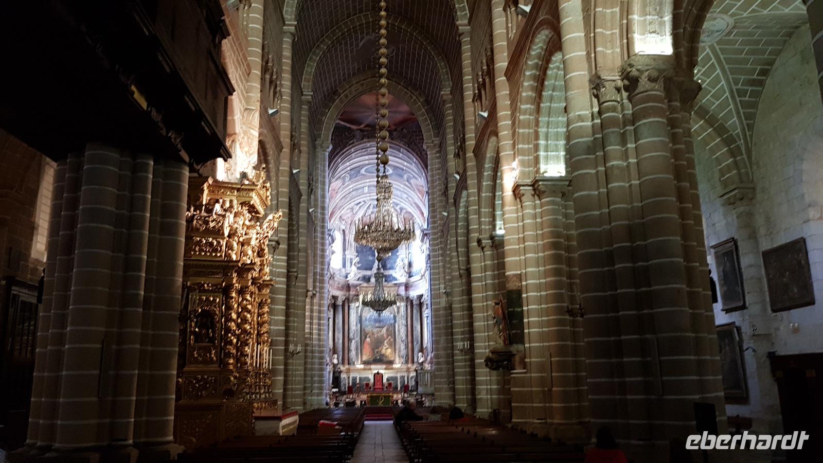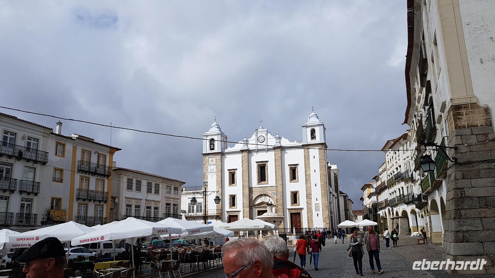 hatten wir bald erreicht und hier treffen wir auf römische Zeitzeugen- den Diana-Tempel. Es ist Zufall, dass er erhalten blieb. Er war nämlich quasi eingemauert in dem Schlachthof, der hier einmal stand. Jetzt sind die Säulen wieder freigelegt und eine der Sehenswürdigkeiten von Evora, der Hauptstadt des Alentejo. Eine weitere ist ihre Kathedrale. Sie empfängt uns mit einem wunderschönen gotischen Portal. Im Inneren dann eine der seltenen Darstellungen der schwangeren Jungfrau Maria. Die barocke Ausgestaltung der Kirche ist überwältigend und man könnte stundenlang hier verweilen und doch immer wieder etwas Neues entdecken. Wir spazieren weiter durch die Gassen der Stadt, die schon immer bedeutender Handelspunkt war und auf dem Marktplatz schließlich trennen wir uns kurz, jeder hat individuell Zeit, die Stadt weiter zu erkunden oder einen Mittagsimbiss zu sich zu nehmen. Dann ist noch Zeit, um der Igreja de São Vicente einen Besuch abzustatten. Eine schöne gotische Kirche mit vielen verschiedenen Altären in den Seitenschiffen. Dann verabschieden wir uns von Evora und fahren Richtung Süden. Am späten Nachmittag erreichen wir