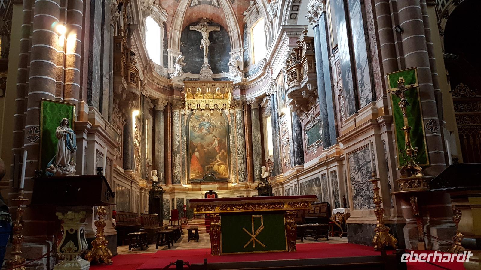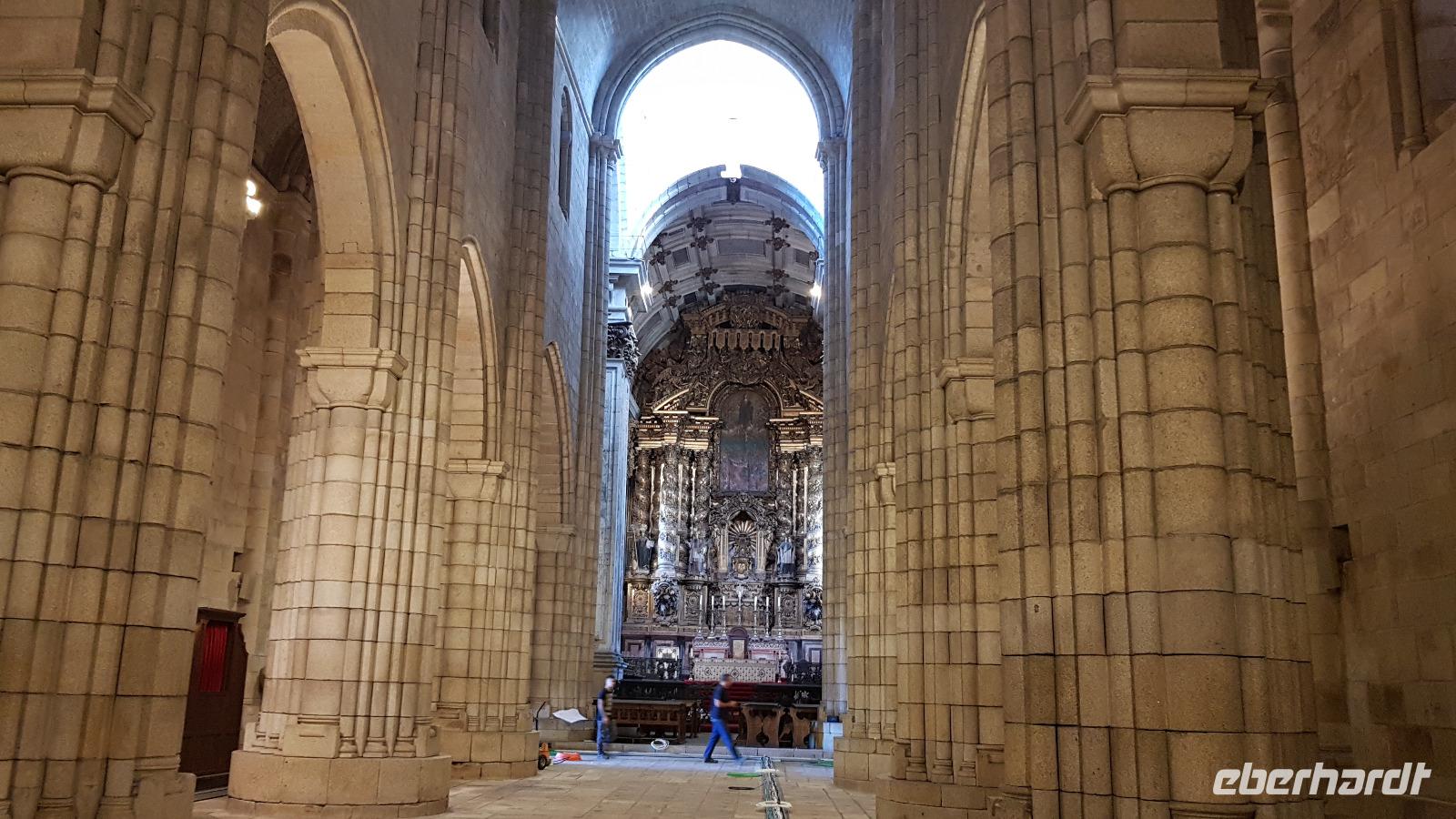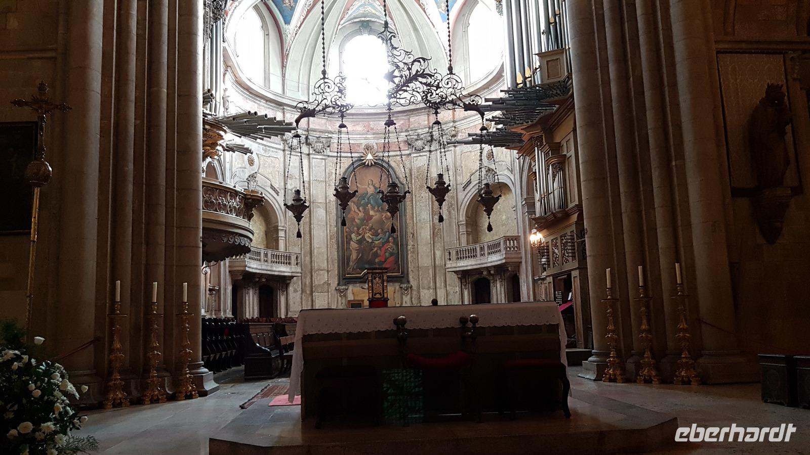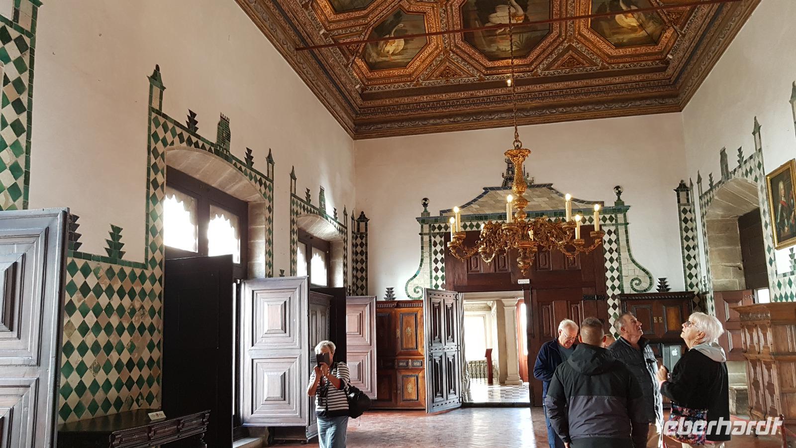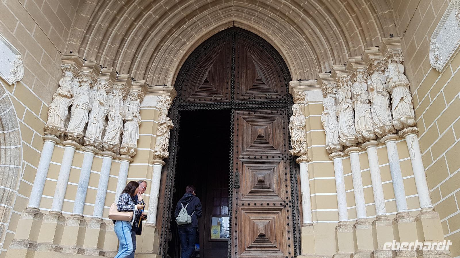 hatten wir bald erreicht und hier treffen wir auf römische Zeitzeugen- den Diana-Tempel. Es ist Zufall, dass er erhalten blieb. Er war nämlich quasi eingemauert in dem Schlachthof, der hier einmal stand. Jetzt sind die Säulen wieder freigelegt und eine der Sehenswürdigkeiten von Evora, der Hauptstadt des Alentejo. Eine weitere ist ihre Kathedrale. Sie empfängt uns mit einem wunderschönen gotischen Portal. Im Inneren dann eine der seltenen Darstellungen der schwangeren Jungfrau Maria. Die barocke Ausgestaltung der Kirche ist überwältigend und man könnte stundenlang hier verweilen und doch immer wieder etwas Neues entdecken. Wir spazieren weiter durch die Gassen der Stadt, die schon immer bedeutender Handelspunkt war und auf dem Marktplatz schließlich trennen wir uns kurz, jeder hat individuell Zeit, die Stadt weiter zu erkunden oder einen Mittagsimbiss zu sich zu nehmen. Dann ist noch Zeit, um der Igreja de São Vicente einen Besuch abzustatten. Eine schöne gotische Kirche mit vielen verschiedenen Altären in den Seitenschiffen. Dann verabschieden wir uns von Evora und fahren Richtung Süden. Am späten Nachmittag erreichen wir
