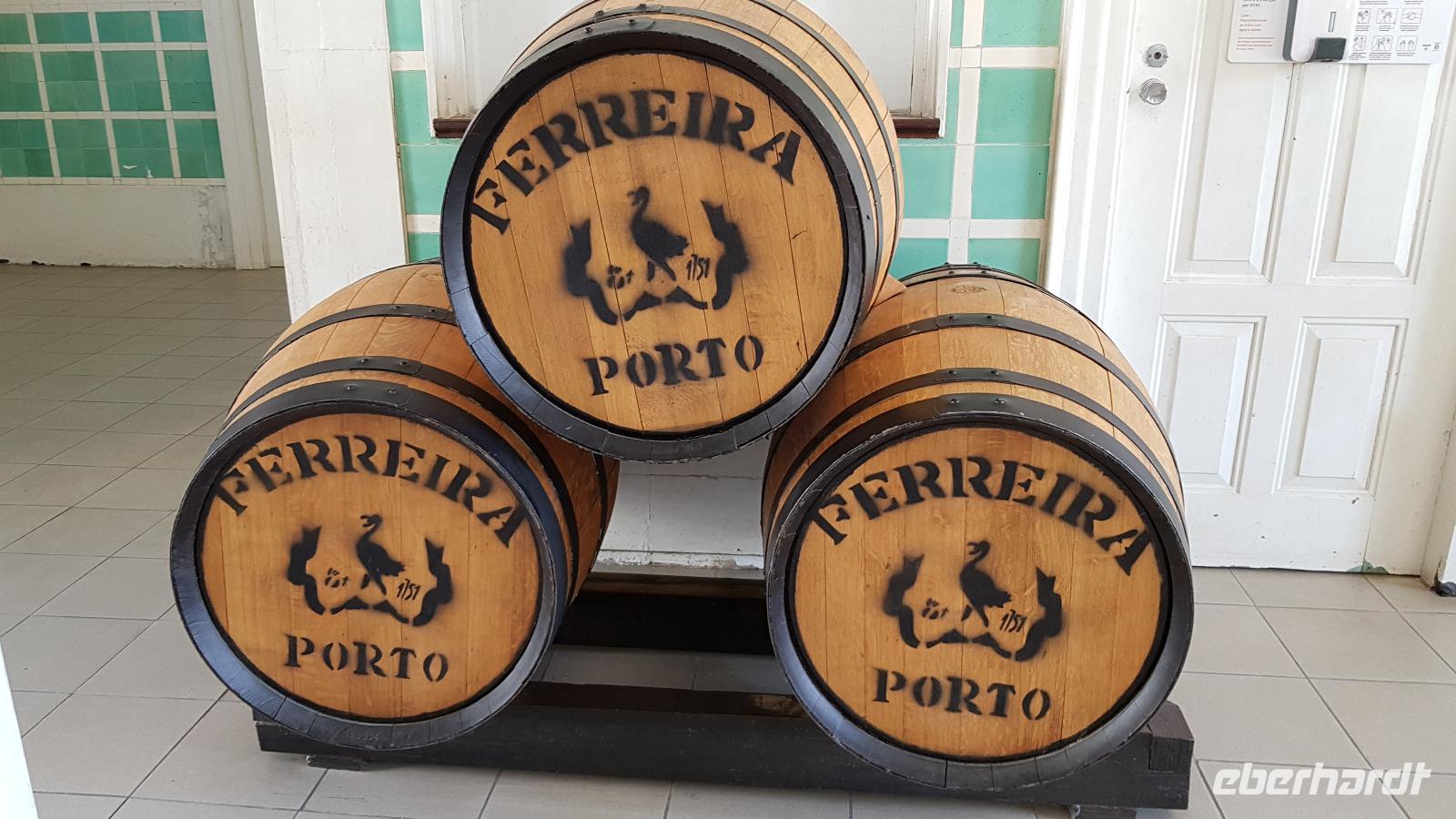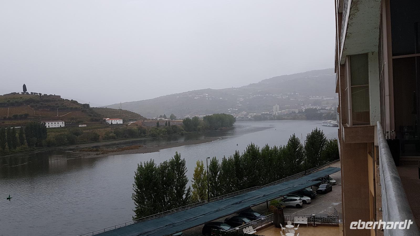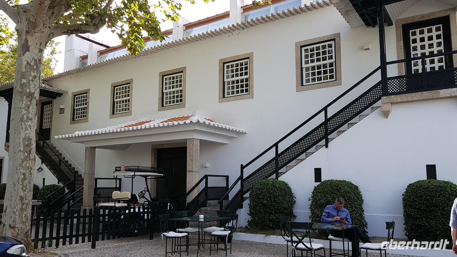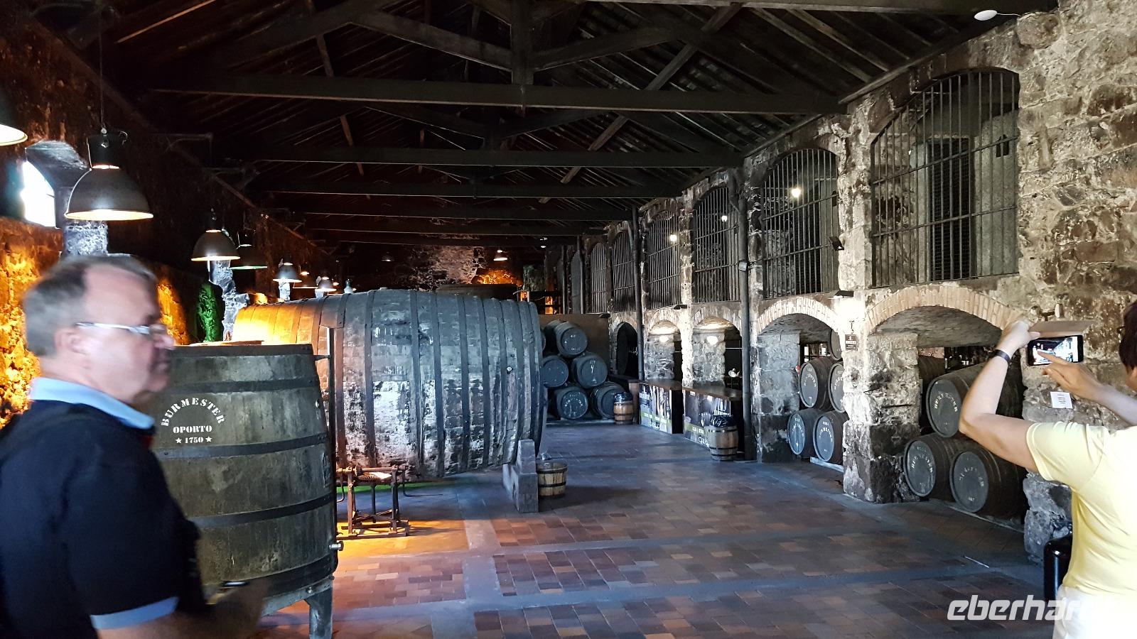 Es liegt direkt neben einem Gut von Sandemann, dessen Werbefigur hat uns überlebensgroß schon eine ganze Weile auf dem Hügel begleitet. Unser Weingut jedoch ist ein Familienbetrieb, es zählt mit ca. 700.000 abgefüllten Flaschen pro Jahr eher zu den mittleren Gütern. (Sandemann produziert 7 Millionen Flaschen.) Carlos zeigt uns das Anwesen und wir kommen gerade noch rechtzeitig. Die Ernte ist nämlich abgeschlossen und die letzten Trauben werden vergoren. Das passiert hier tatsächlich noch traditionell mit dem Füssen- die Trauben werden gestampft. Carlos erzählt, dass nur der Mensch es schafft, dass beim Stampfen nicht die Kerne und Schalen zerstört werden, wie es eine automatische Presse unweigerlich tun würde. So vermeiden sie Bitterstoffe der Kerne und können einen exzellenten Wein herstellen. Von den Traubenbecken geht es zu den Fasslagern- nur ein Teil lagert hier vor Ort, der Platz wird für die touristischen Veranstaltungen benötigt, das Weingut lebt zum Großteil von Hochzeiten, Konzerten, Fado oder auch Übernachtungen vor Ort, das gutseigene Hotel hat 15 Zimmer, weitere Zimmer sind in Fassform dieses Jahr entstanden und bis 2019 soll es auch einen Pool außen geben. Doch bleiben wir beim Wein- sie erzeugen hier verschiedene Tafelweine und auch Portwein. Als er uns fragt, ob wir schon einmal von Tawny gehört haben wissen alle: ja- aber was war das nochmal? Nur 1 Gast wußte noch, was uns Ruben bei Burmester dazu erzählt hat- es ist die Farbe- wie Bernstein. Sie entsteht, weil der Wein in kleineren Fässern lagert und so mehr Kontakt mit dem Holz hat- daher die Farbe. Auch sind die kleinen Fässer luftdurchlässig, daher ist er bereits oxidiert und hält sich angebrochen noch längere Zeit, im Gegensatz zu den Portweinen, die als besonders guter Jahrgang in Flaschen abgefüllt werden und dort mindestens 10 Jahre reifen. Sie sind empfindlich gegenüber Sauerstoff und verlieren rasch ihren Geschmack, wenn sie längere Zeit offenbleiben. Nun möchten wir natürlich auch verkosten und so folgen wir gern Carlos Einladung dazu. Wir starten mit einer Rarität: einem Rose- hmmm. Dem folgt ein Rotwein- wow. Nun kommen die Portweine: ein 10-jähriger und ein Vintage...Wir sind begeistert von der Vielfalt und verbringen noch einige Zeit hier bis wir aufbrechen. Unser Hotel in Peso da Regua wartet auf uns und nach dem problemlosen Einchecken haben wir noch etwas Zeit bis zum Abendessen. Das Hotel liegt direkt am Fluss und was liegt näher, als hier noch am Ufer spazieren zu gehen. Zum Abendessen werden wir mit einem guten Menü verwöhnt und dann heisst es: Bis morgen!