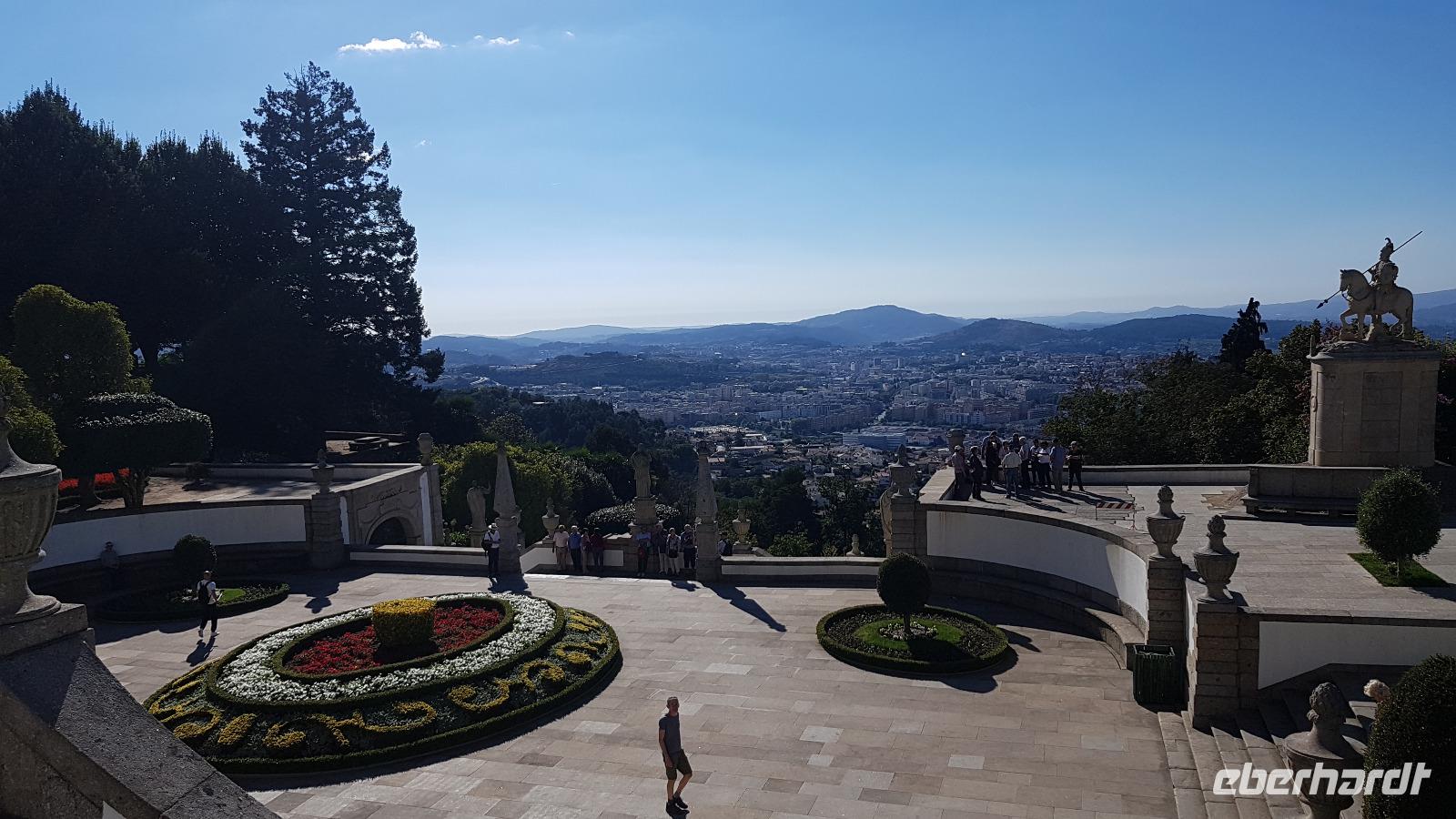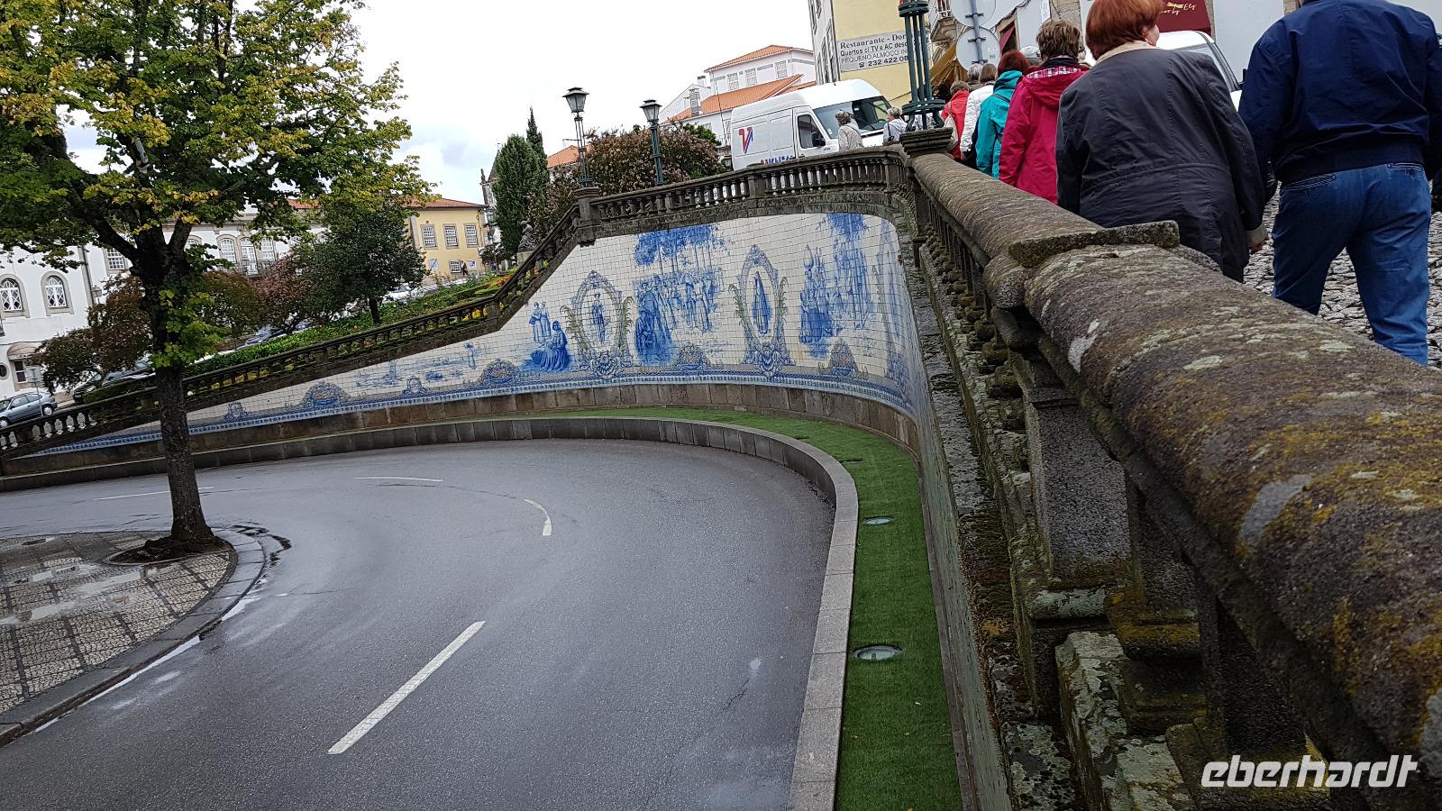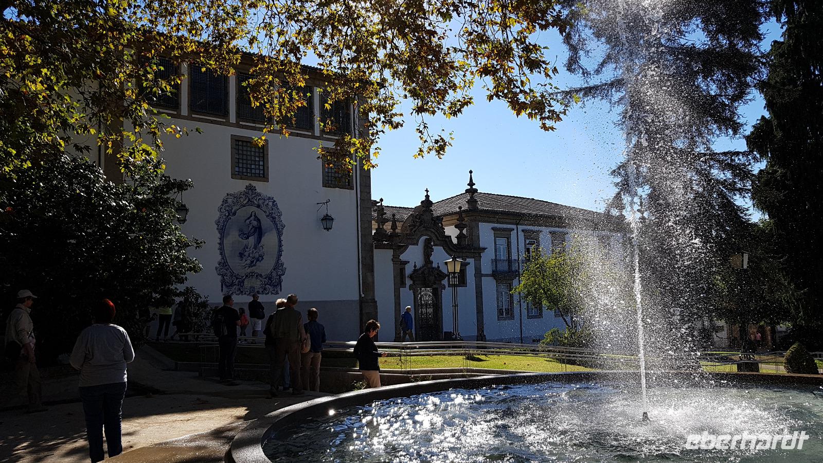 Unser Bus bringt uns dann sicher nach Braga. Durch das Stadttor betreten wir die wunderschöne Altstadt und spazieren durch mittelalterliche Gassen zur Kathedrale und zum Erzbischofspalast. So vieles gab es zu entdecken, besonders beeindruckend der Garten der hl. Barbara am Erzbischofspalast. Mit vielen Fotos im Gepäck trennten wir uns vorerst, jeder hatte nun Zeit für weitere Erkundungen, einfach einen Bummel oder ein kleines Mittagsmenü. „Am Ende der Straße" trafen wir uns wieder- offenbar war dieses für jeden von uns woanders- so trafen wir uns überraschend im Bus wieder- also alles gut.