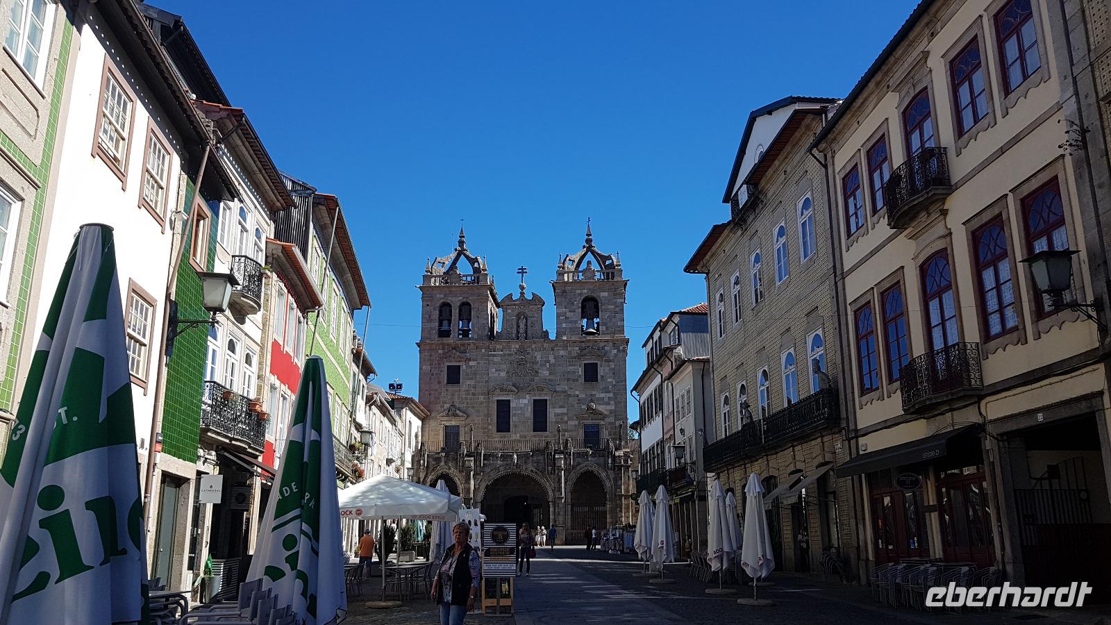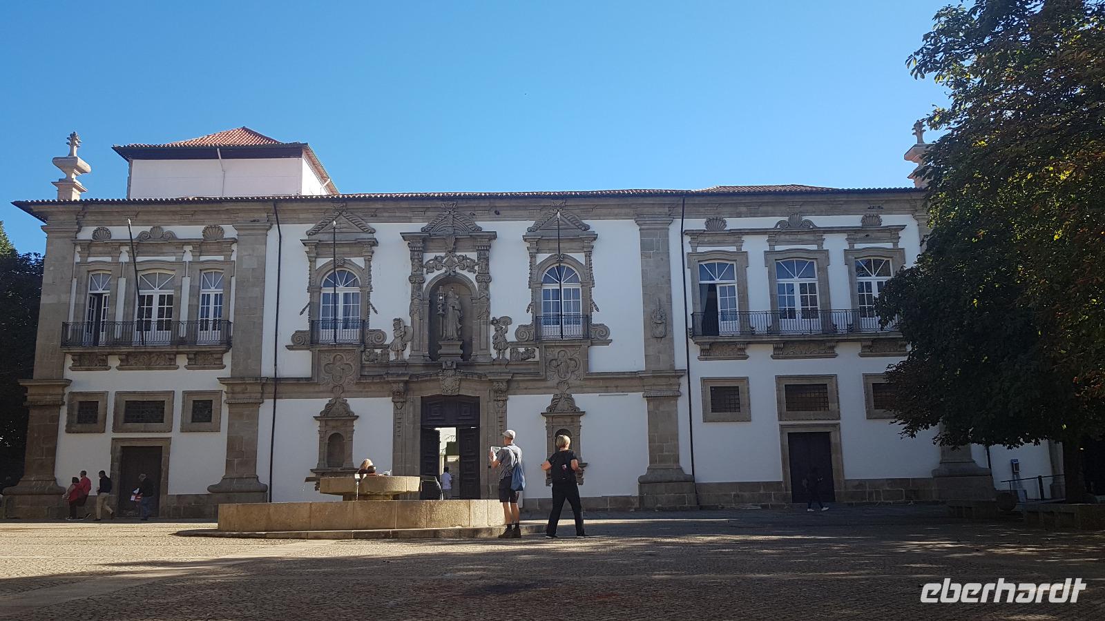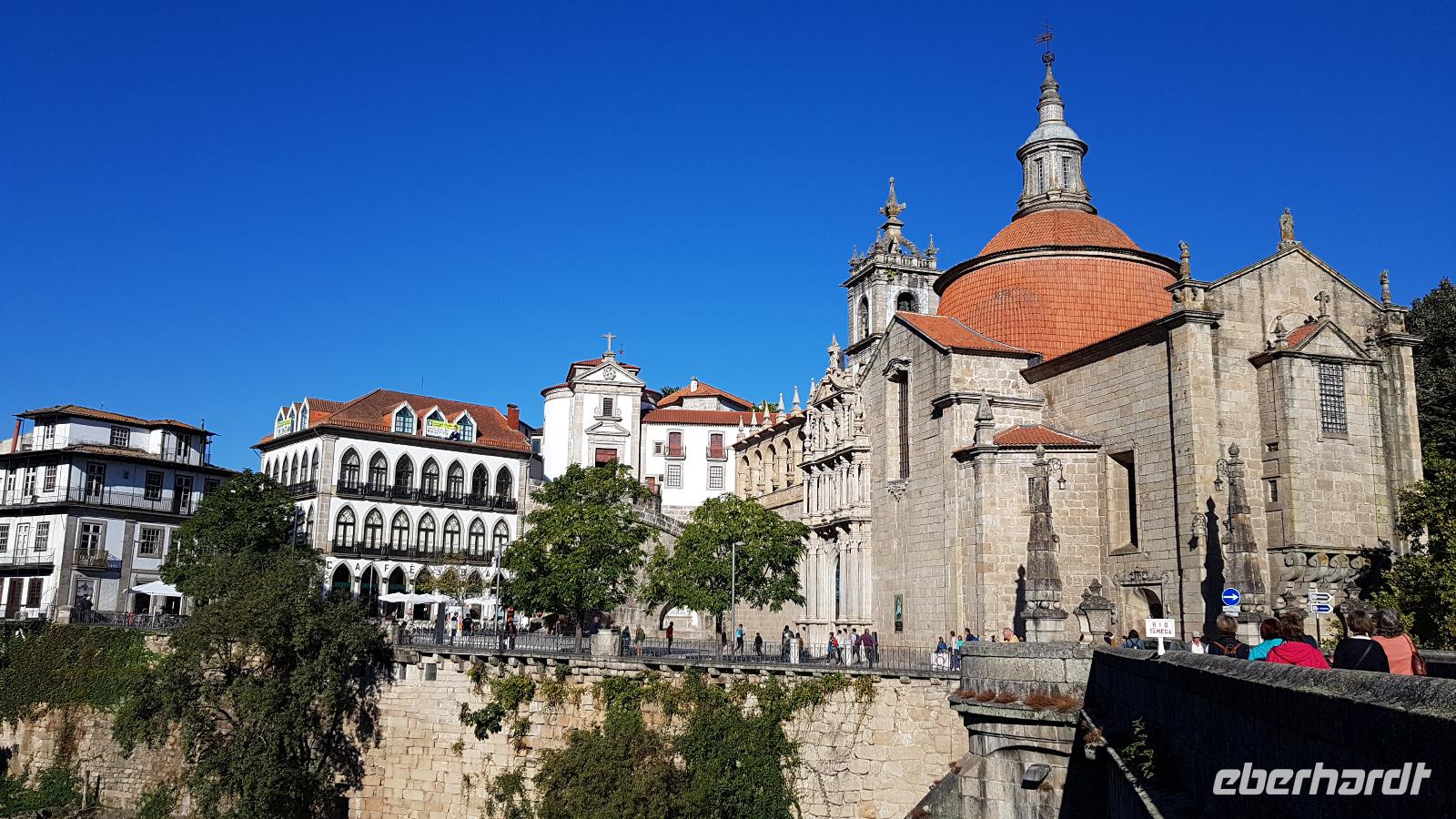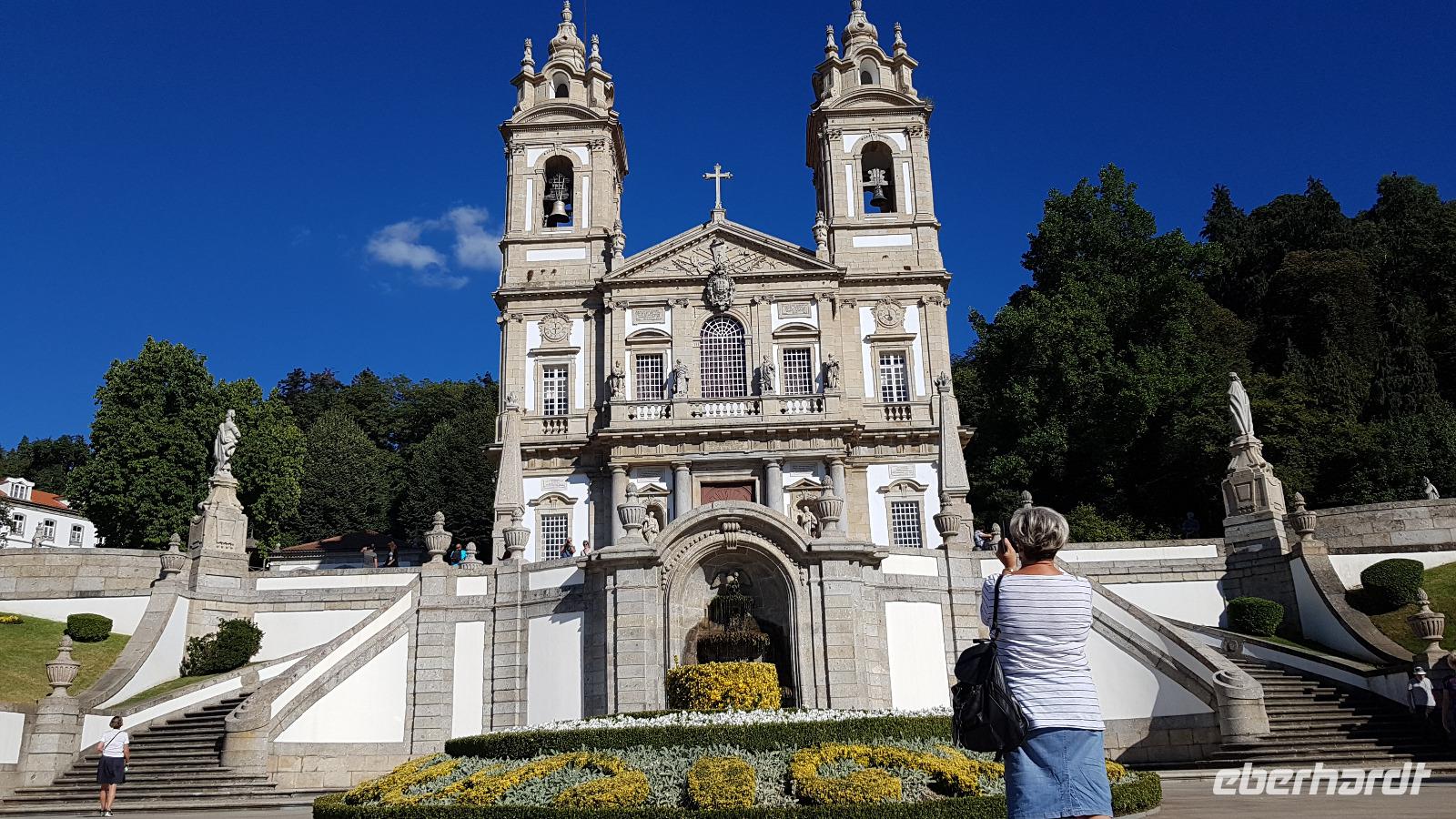 Unser Bus bringt uns dann sicher nach Braga. Durch das Stadttor betreten wir die wunderschöne Altstadt und spazieren durch mittelalterliche Gassen zur Kathedrale und zum Erzbischofspalast. So vieles gab es zu entdecken, besonders beeindruckend der Garten der hl. Barbara am Erzbischofspalast. Mit vielen Fotos im Gepäck trennten wir uns vorerst, jeder hatte nun Zeit für weitere Erkundungen, einfach einen Bummel oder ein kleines Mittagsmenü. „Am Ende der Straße" trafen wir uns wieder- offenbar war dieses für jeden von uns woanders- so trafen wir uns überraschend im Bus wieder- also alles gut.