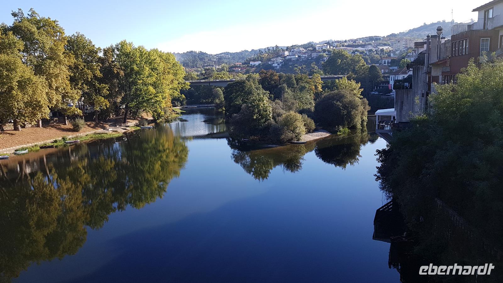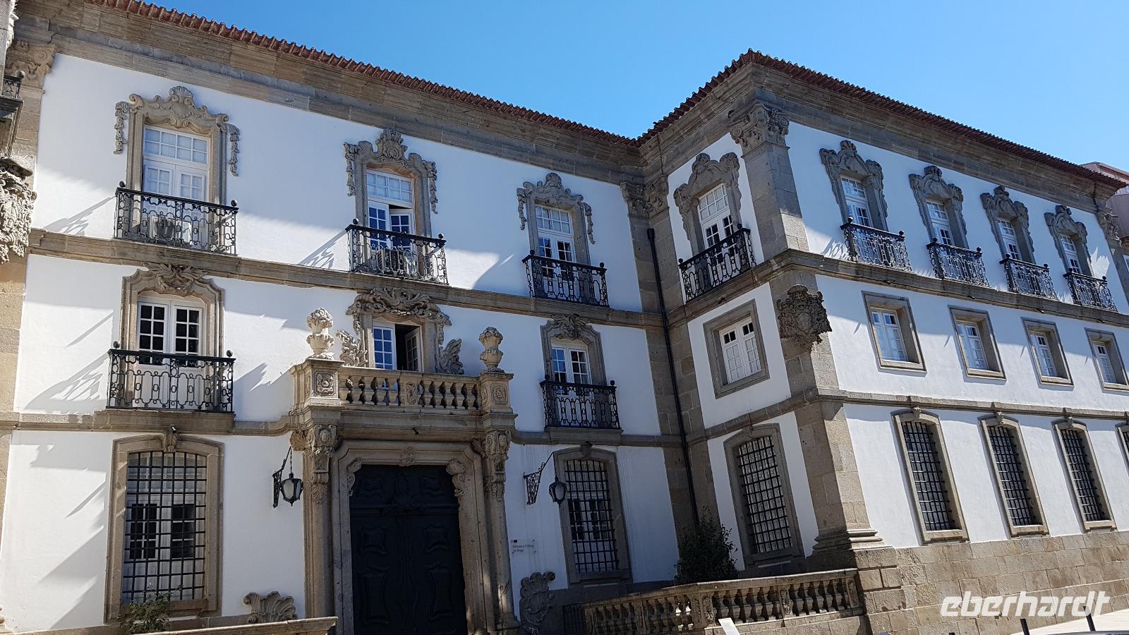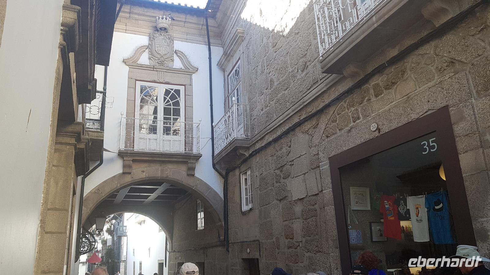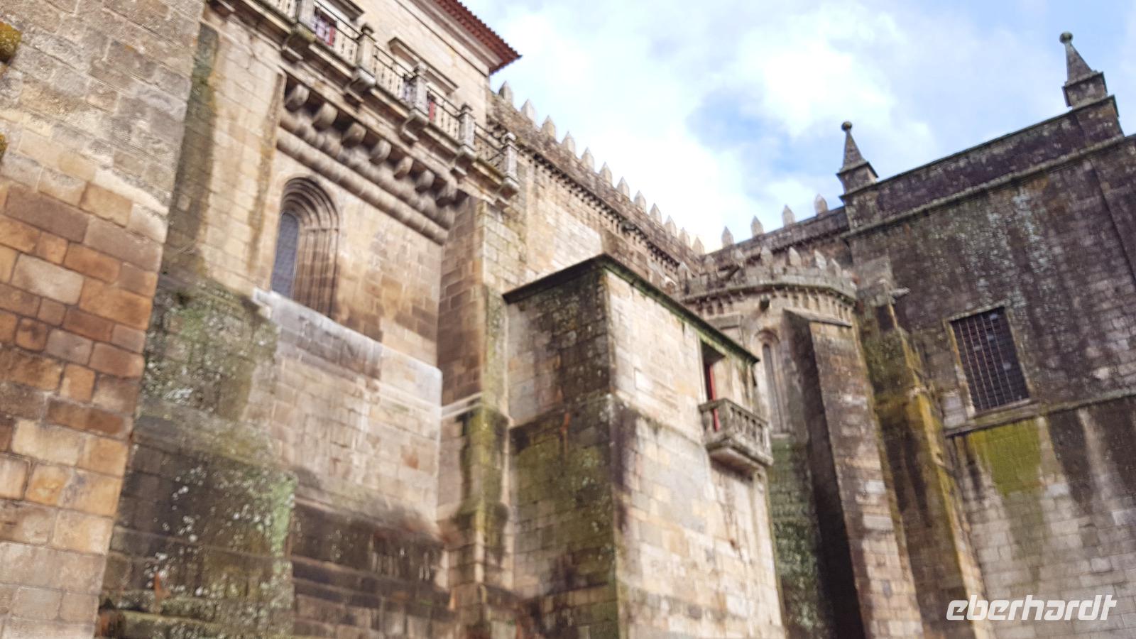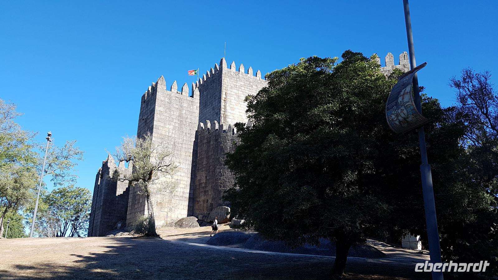 Heute fahren wir zur Wiege Portugals. Nach einem guten Frühstück starten wir Richtung Norden. Uns fallen die vielen Eukalyptusbäume auf und Maria erzählt, dass hier die Holzwirtschaft eine große Rolle spielt. Eukalyptusbäume wachsen sehr schnell, schon nach ca. 9 Jahren können sie "geerntet" und an die Papierindustrie verkauft werden. Das weckt Begehrlichkeiten, alle anderen Hölzer brauchen z.T. Generationen, bis sie Geld erwirtschaften. Aber Eukalyptus saugt den Boden aus, bei Waldbränden sorgen das Öl des Baumes und das dichte Unterholz für ein stetiges Wiederaufflammen der Feuer. Deshalb gibt es jetzt Vorgaben, wo diese Bäume noch wachsen dürfen. Dann erreichen wir Guimarães. Wir besuchen die alte romanische Burg. Sie sollte das Kloster beschützen, das die Gräfin Mumadona im 10. Jahrhundert hier errichten ließ. Hier wurde Alfonso Henriques geboren, der erste König Portugals. Deshalb gilt der Ort auch als Wiege Portugals und war seine erste Hauptstadt. Wir werfen noch einen Blick in die nahegelegene Kapelle in der Alfonso I. getauft wurde und spazieren dann hinunter in den Ort, teilweise auch auf dem Pilgerweg, die Jakobsmuschel weist im Boden darauf hin. Wir genießen den Spaziergang durch die Altstadt, übrigens auch Teil des Weltkulturerbes der UNESCO, die berühmte Rua de Santa Maria entlang bis zum Olivenbaumplatz. Hier trennen sich für kurze Zeit unsere Wege, wir nutzen die Zeit für individuelle Erkundungen, die Kirche mit dem Alpendre vor dem Westportal in ihrem manuelinischen Stil (ein besonderer Baustil benannt nach König Manuel I., erkennbar an den Schiffstauen und den runden statt spitzen Bögen der Gotik), die Läden und Gassen ringsumher... und nach dem einen oder anderen Kaffee oder Espresso verlassen wir die Altstadt, bestaunen die wundervoll angelegte Avenue davor.