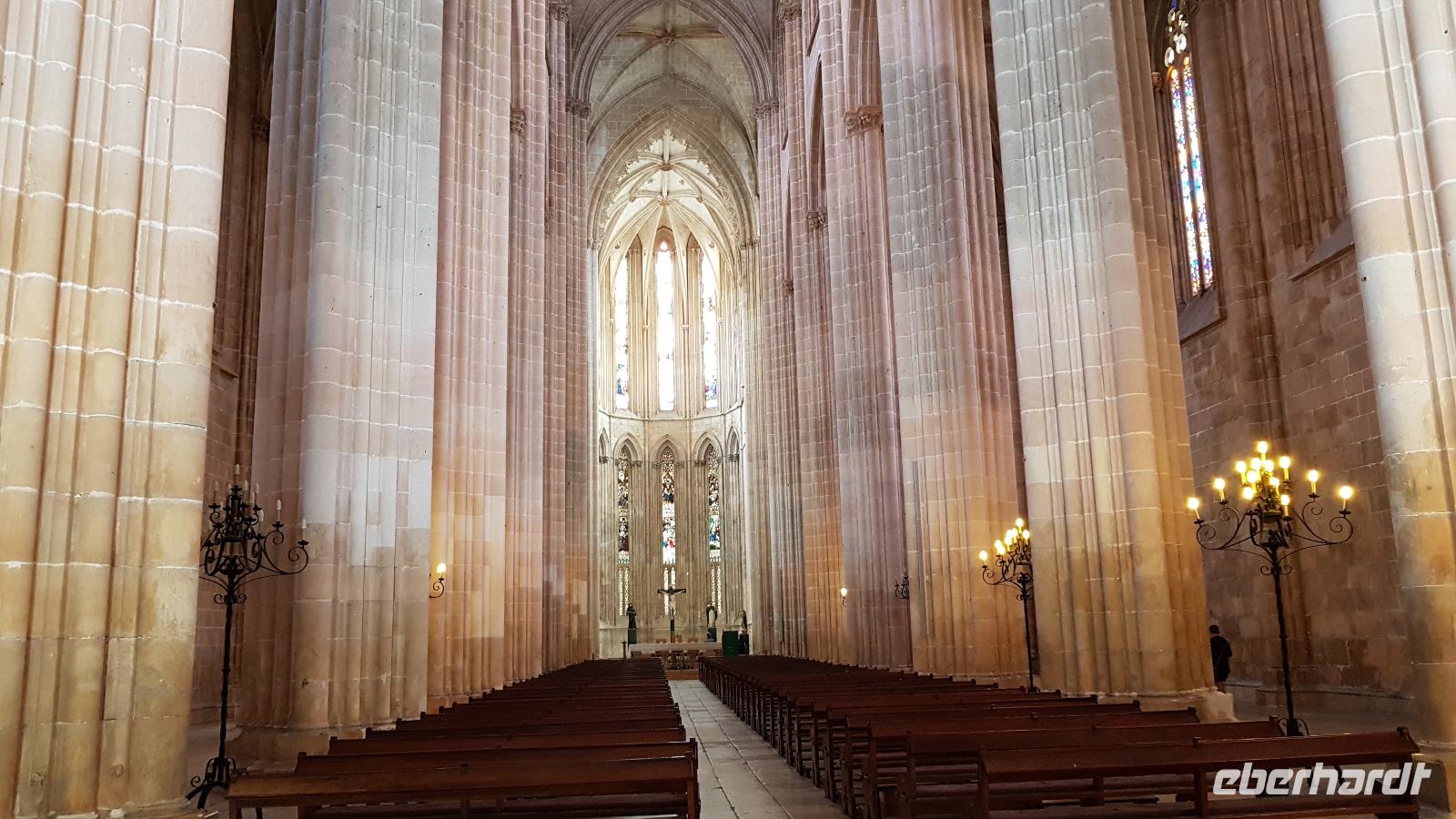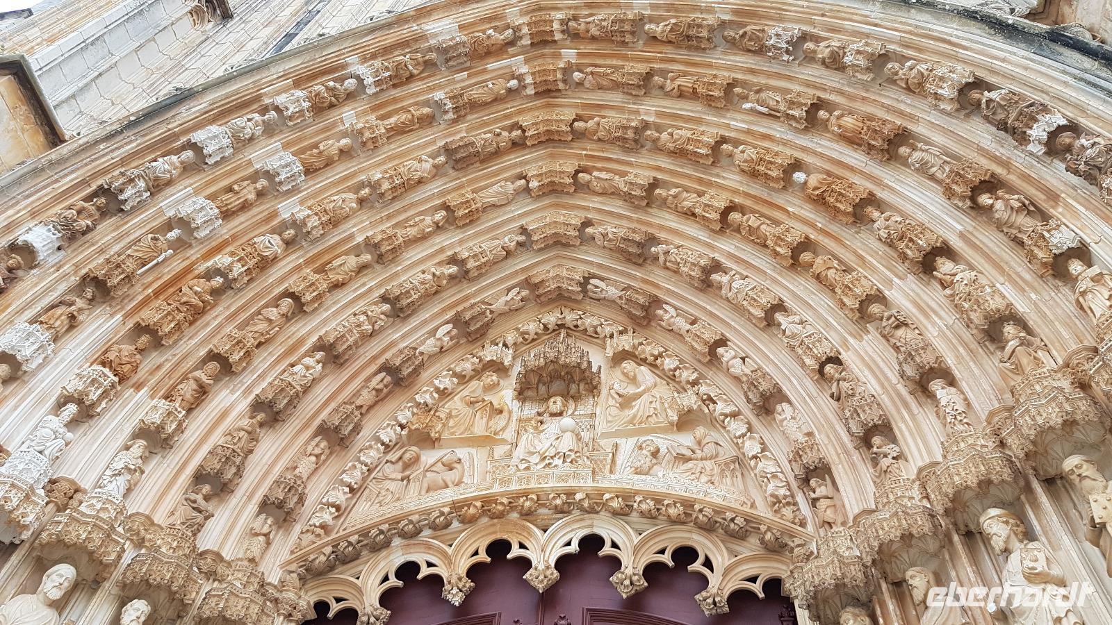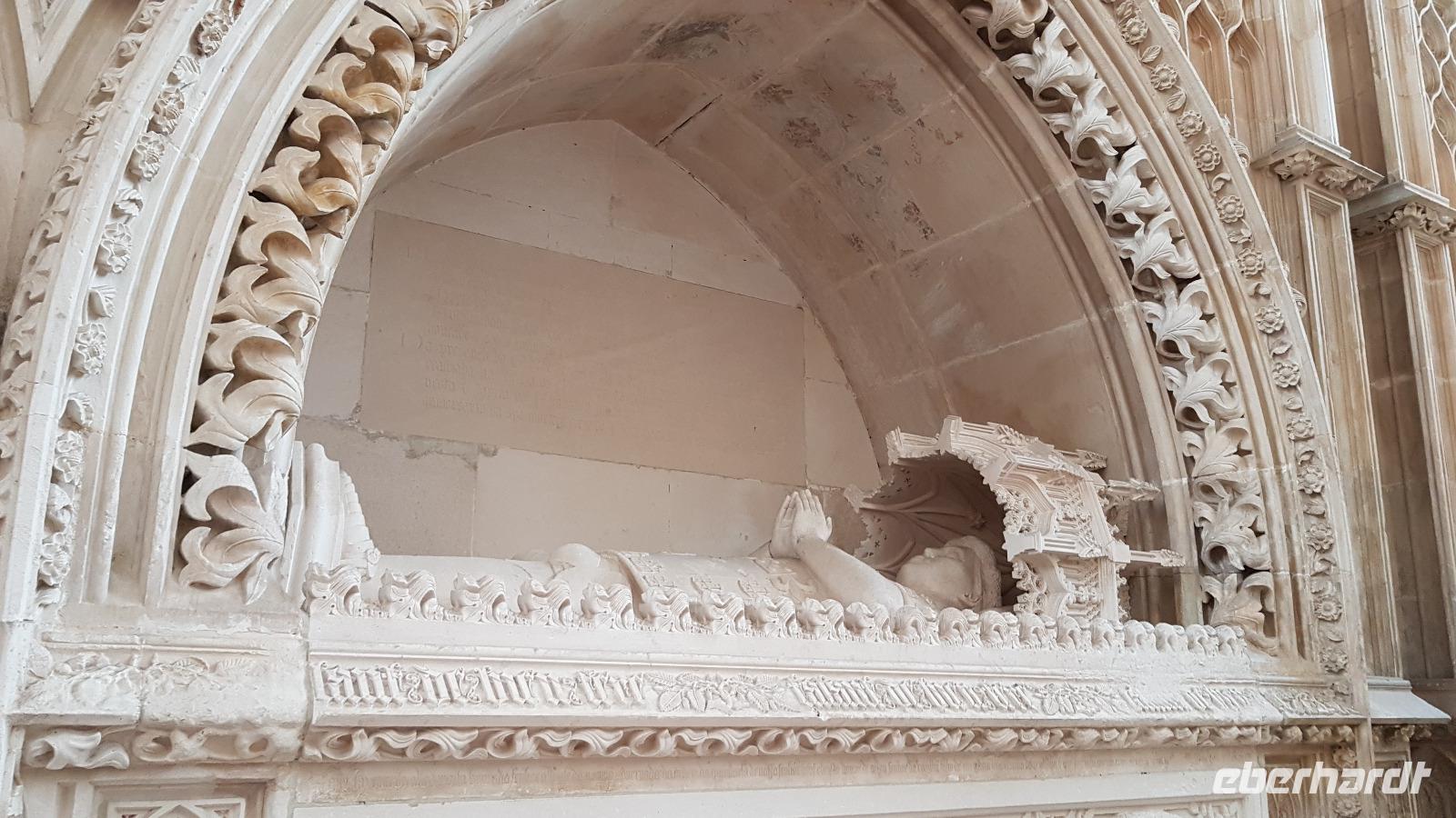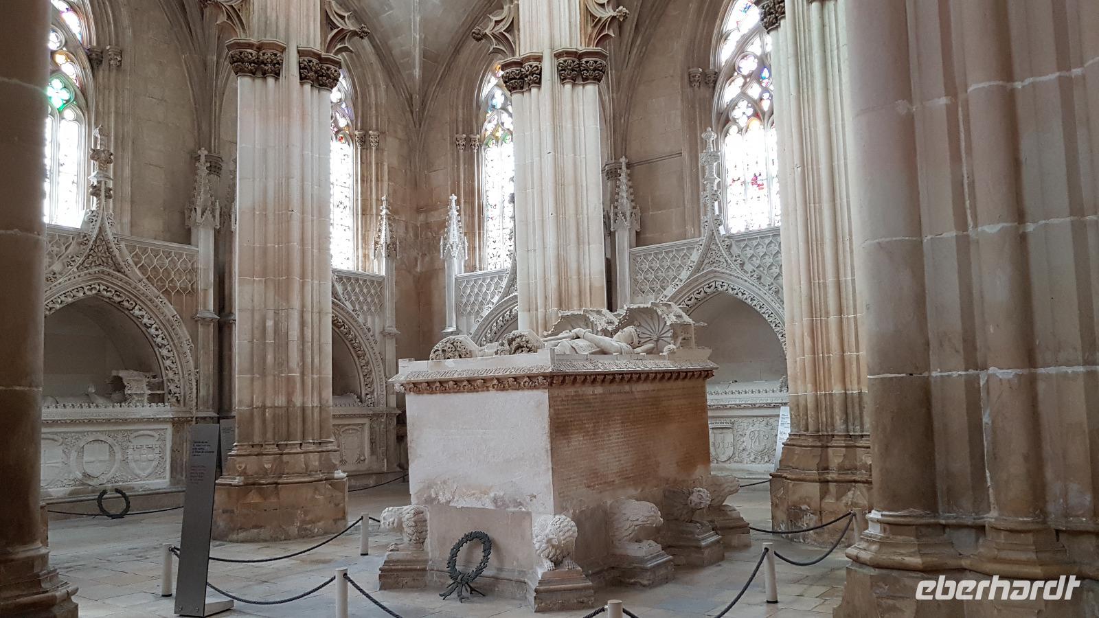 Es wurde gestiftet von Joao I. für seinen Sieg über Kastillien 1385. Das klingt simpel, was uns erwartet ist aber alles andere als das: Ein überragend schöner Gebäudekomplex der Hochgotik. Wir sind beeindruckt und schauen uns gemeinsam die Kirche, die Grabstätten der Könige, den Kreuzgang und natürlich den scheinbar unvollendeten Anbau an. Im Kreuzgang ist auch ein Denkmal für den unbekannten Soldaten, hier findet gerade eine Wachablösung statt. Bau und Ausstattung hier sind überragend und natürlich begegnet uns auch wieder der manuelinische Baustil mit seinen Schiffstauen. Dass die Kapelle mit Absicht nicht weiter gebaut wurde erklärt sich dann mit dem fehlenden Licht in der Kirche. Nun ist wieder Ziet für individuelle Entdeckungen und weiter geht unsere Reise nach