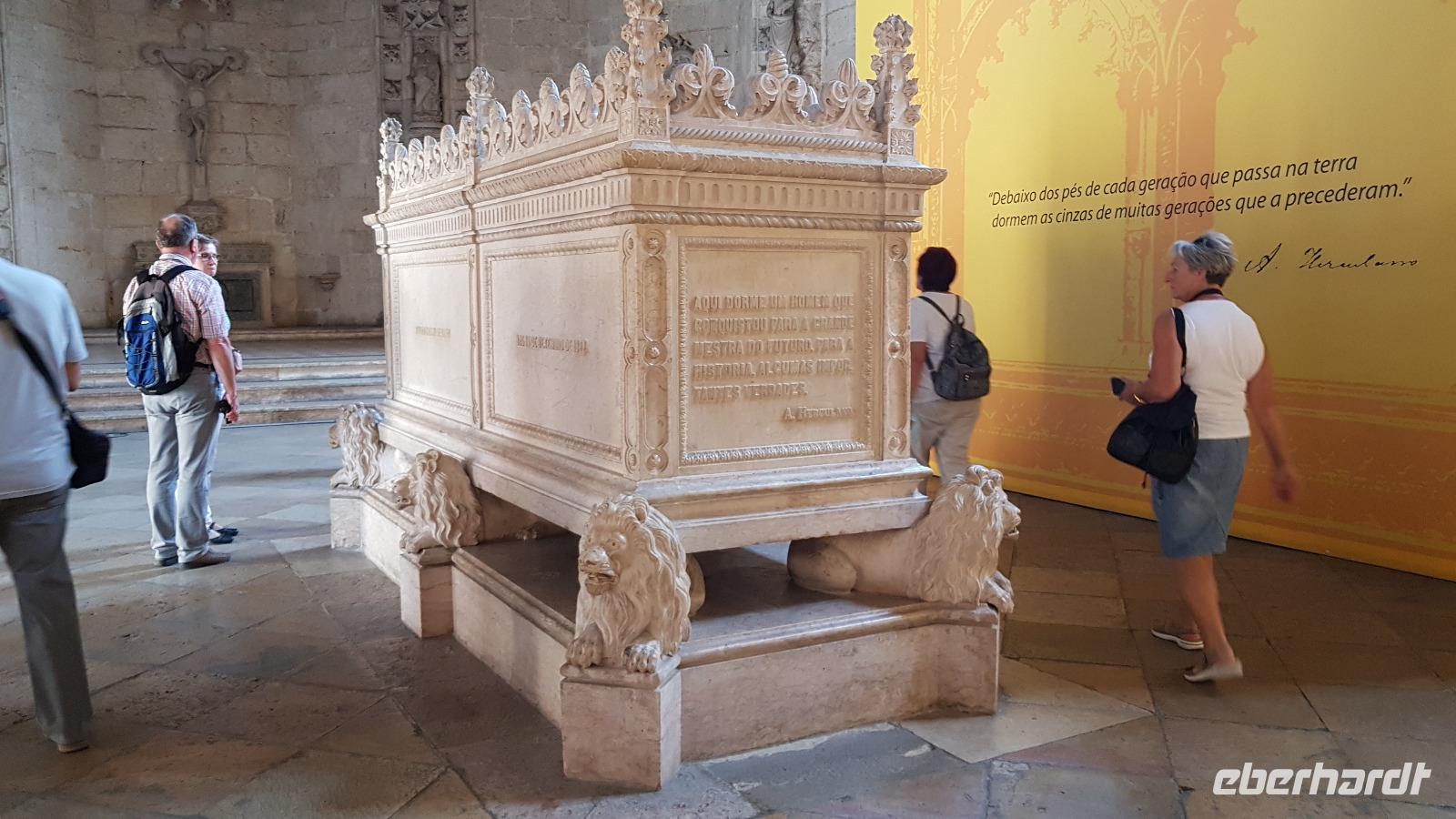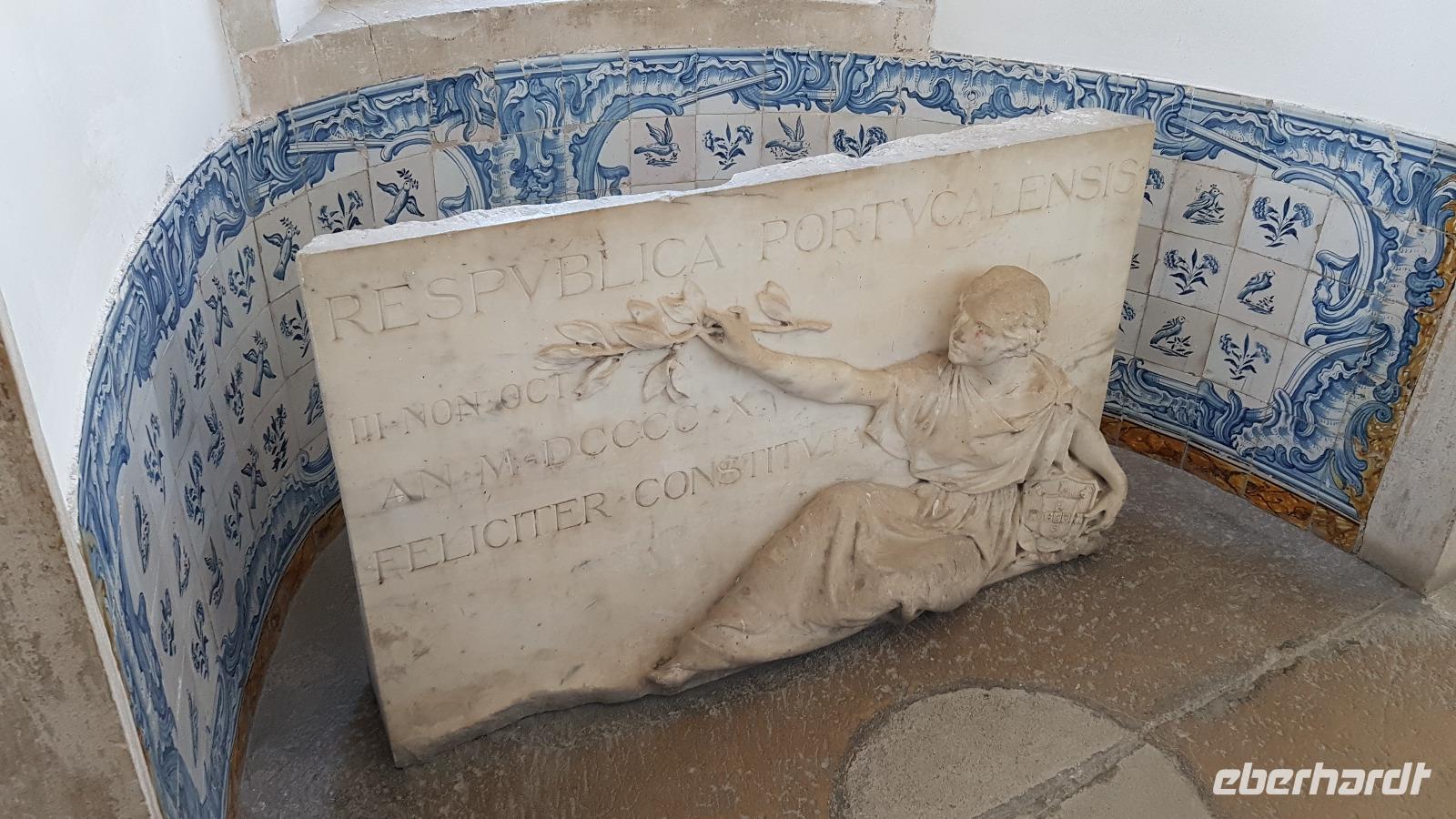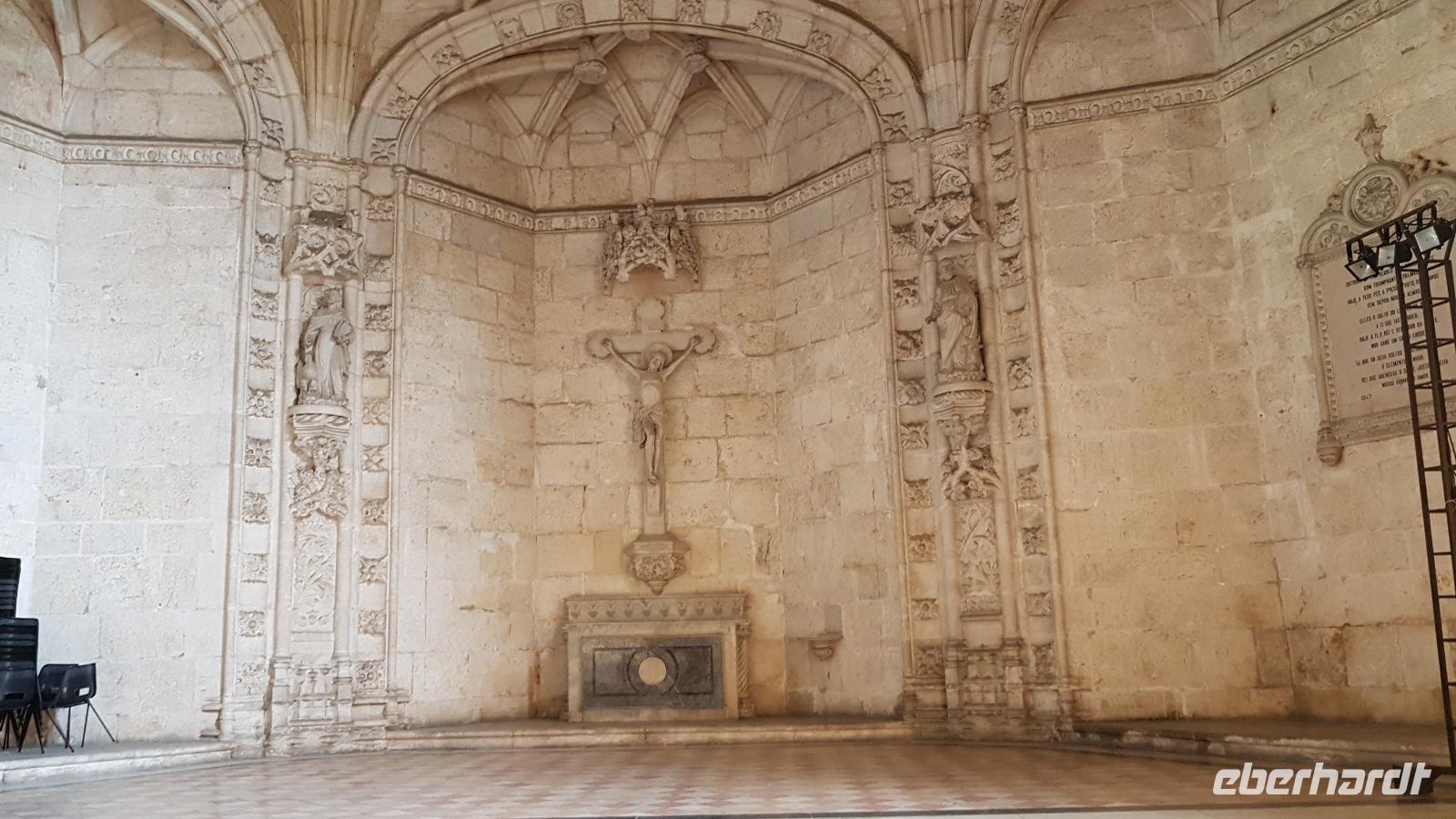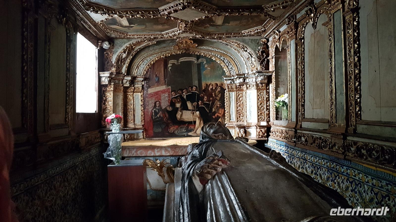Es wurde gestiftet von Joao I. für seinen Sieg über Kastillien 1385. Das klingt simpel, was uns erwartet ist aber alles andere als das: Ein überragend schöner Gebäudekomplex der Hochgotik. Wir sind beeindruckt und schauen uns gemeinsam die Kirche, die Grabstätten der Könige, den Kreuzgang und natürlich den scheinbar unvollendeten Anbau an. Im Kreuzgang ist auch ein Denkmal für den unbekannten Soldaten, hier findet gerade eine Wachablösung statt. Bau und Ausstattung hier sind überragend und natürlich begegnet uns auch wieder der manuelinische Baustil mit seinen Schiffstauen. Dass die Kapelle mit Absicht nicht weiter gebaut wurde erklärt sich dann mit dem fehlenden Licht in der Kirche. Nun ist wieder Ziet für individuelle Entdeckungen und weiter geht unsere Reise nach