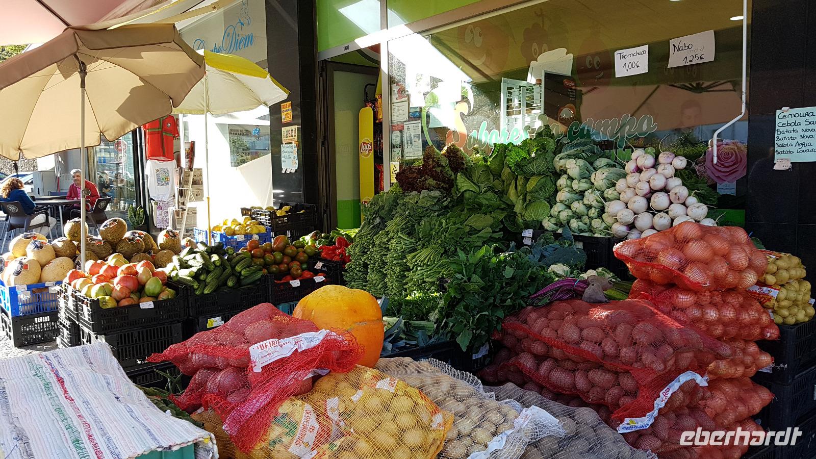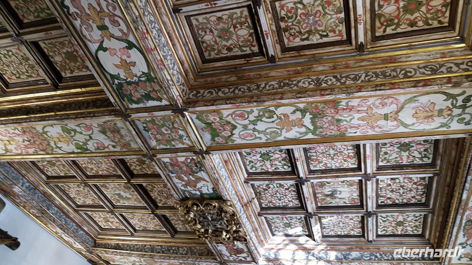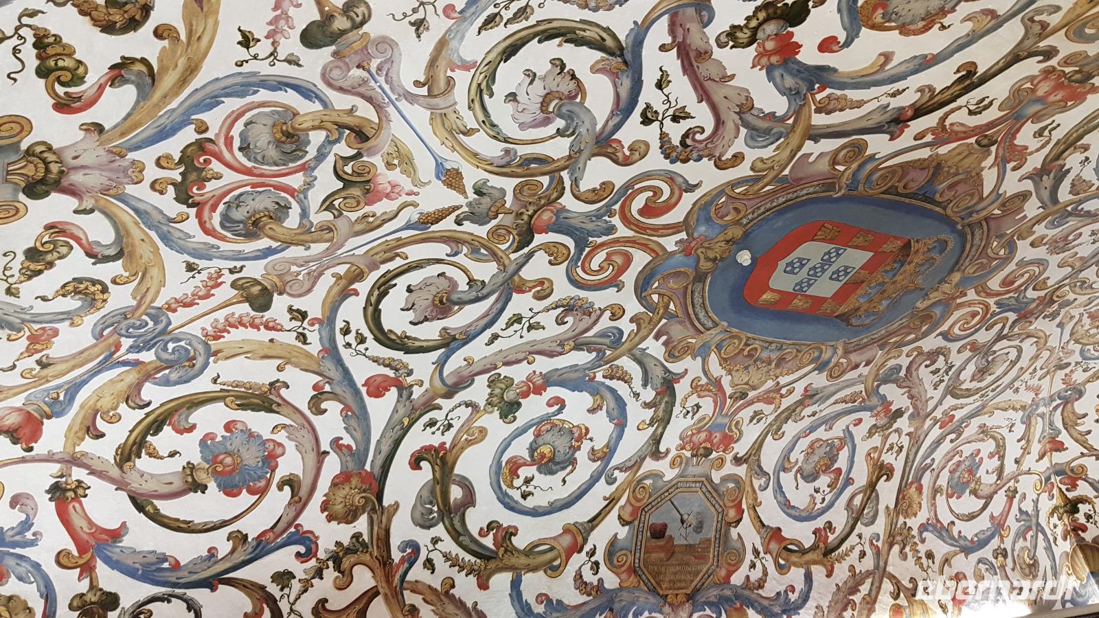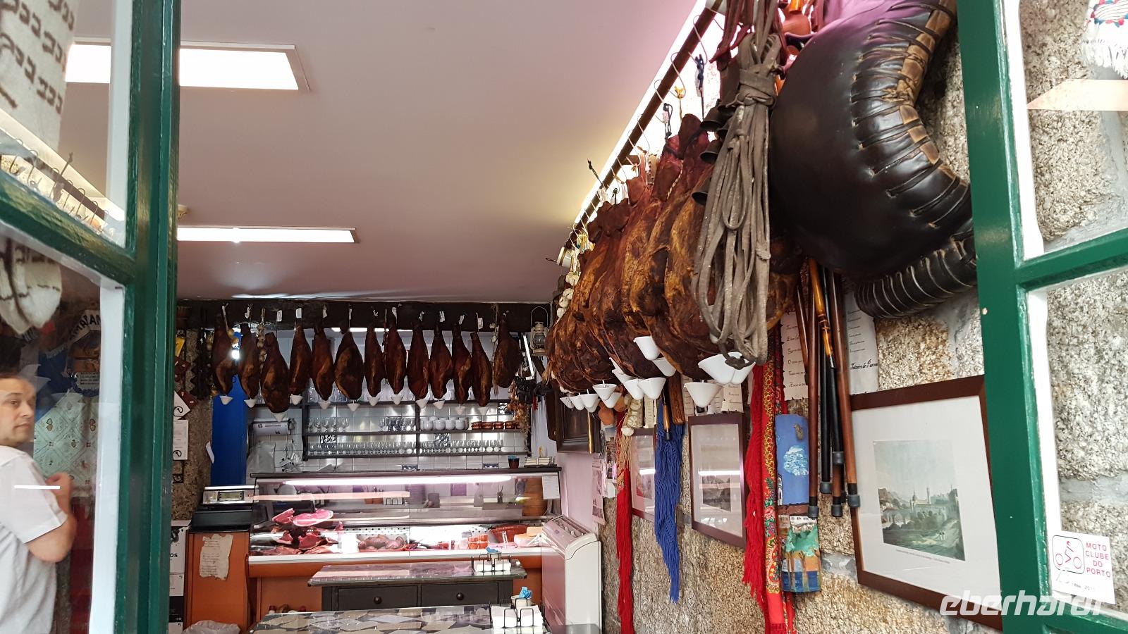 Ein letztes Mal frühstückten wir im Casa da Musica, dann hieß es Koffer laden und Abfahrt Richtung Osten. Alvaro wird uns noch die nächsten Tage begleiten, das ist auch gut so, er ist ein sehr sicherer und guter Fahrer, der auch unsere Foto-Stopp-Wünsche erfüllt und das sollte uns heute besonders zugutekommen. Nach einer reichlichen Stunde Fahrt erreichten wir unser erstes Etappenziel: Amarante. Hier erhebt sich das Marão-Gebirge und der Fluss Tâmega fließt durch das Herz der Stadt. Wir überqueren den Tamega über eine Brücke, die die Einwohner der Stadt einst erfolgreich gegen Napoleon verteidigt hatten, und erreichten die Kirche des heiligen Gonçalo. Er ist Schutzpatron der Liebenden und hier in der Kirche ist auch sein Grab. Wir sind überrascht von der prunkvollen Ausstattung der Kirche und erhaschen auch einen Blick in die Sakristei- originale Bemalungen der hölzernen Decken und Wände ziehen uns in ihren Bann. Dann nutzen wir die Zeit und bummeln durch das Städtchen- die Auslagen der Obst- und Gemüseläden haben es uns angetan und bei den riesigen Pfirsichen und Nektarinen greife ich zu und besorge für die Gruppe ein wenig Vitamine.