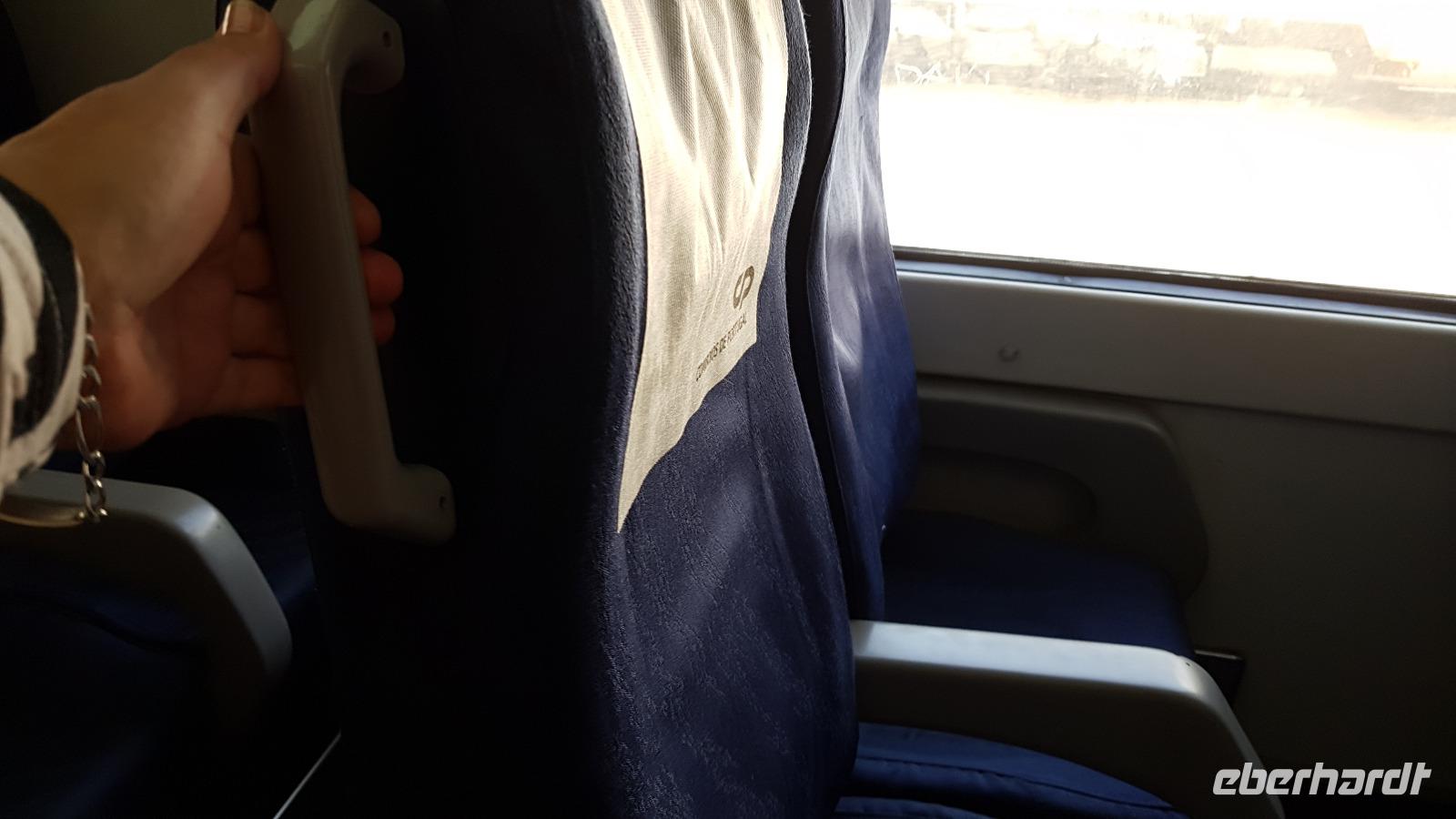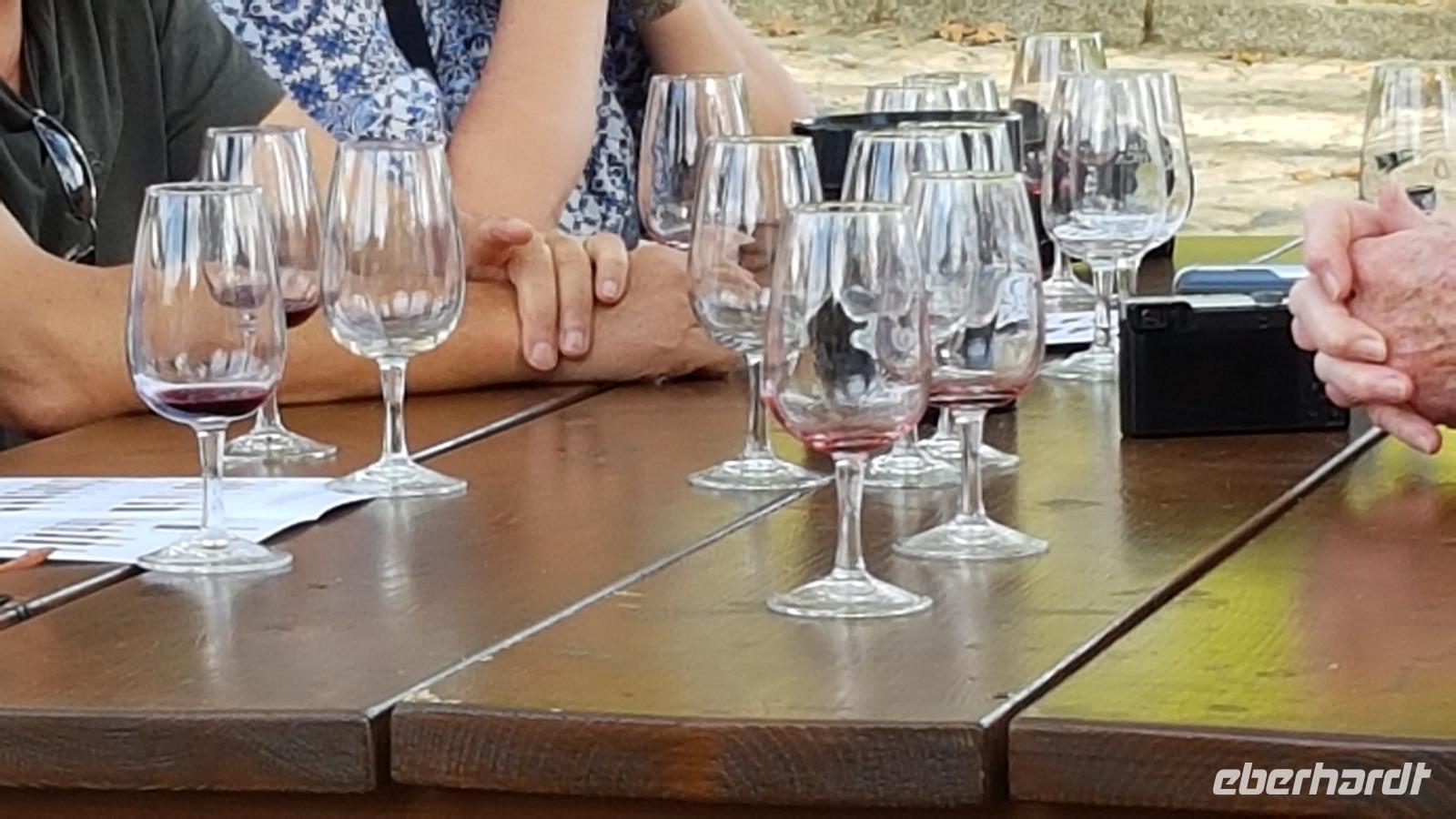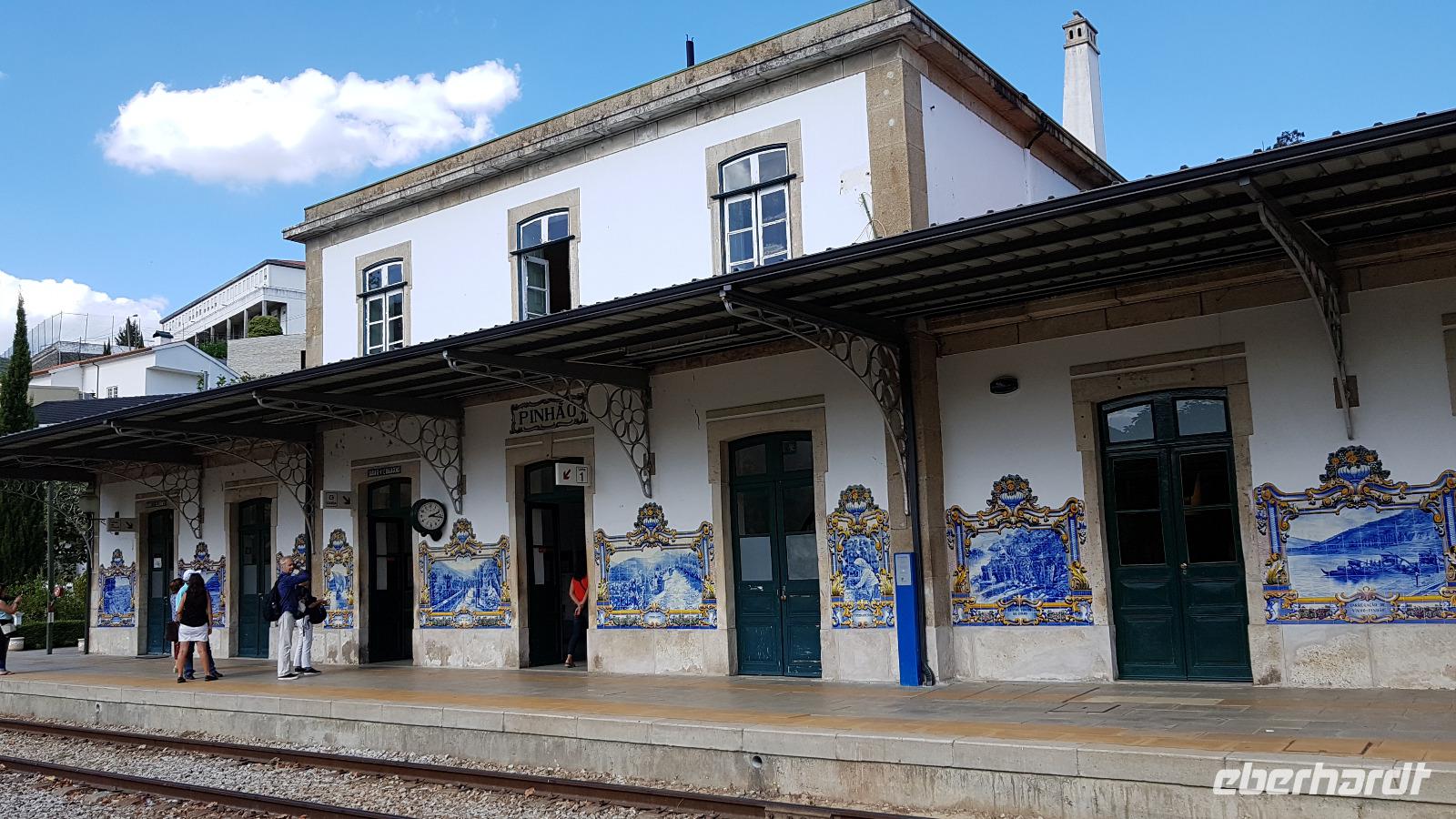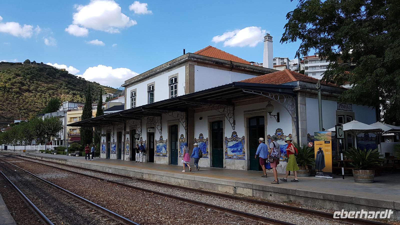Am Bahnhof, der mit wunderschönen Azulejos geschmückt ist, steigen wir aus und können in diesem schönen Städtchen unsere Mittagspause direkt am Ufer des Douro genießen. Vom Bahnhof aus geht es dann auch weiter: wir fahren mit der Regionalbahn bis Regua immer am Douro entlang. Genießen die Landschaft und sind hocherfreut über eine typisch portugiesische Erfindung (oder nicht), die Lehnen der Sitzbänke lassen sich ganz einfach nach vorn oder nach hinten schieben- so kann man vis-a-vis oder hintereinander sitzen- irgendwie cool. Alvaro holt uns schließlich ab und wir fahren zu einem Weingut - dem