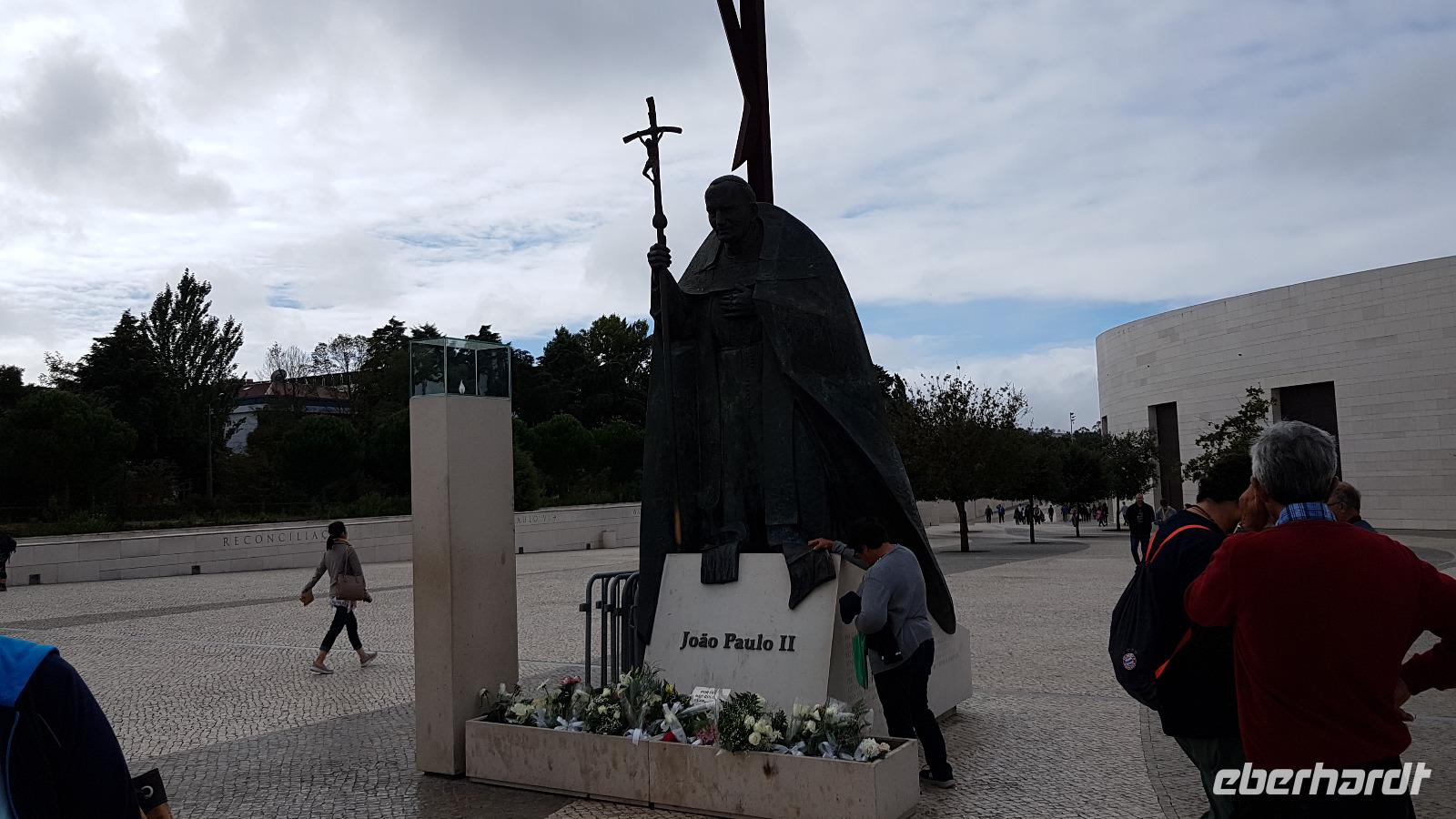 Heute reiht sich ein Highlight an das nächste und wir beginnen am Heiligtum Fatima. Nach einer knappen Stunde Fahrt erreichen wir Fatima, eine der wichtigsten Pilgerstätten Europas. Hier soll vor 101 Jahren die Jungfrau Maria 3 Hirtenkindern erschienen sein, sie kündigte für den 13. Oktober 1917 ein Wunder an und ein 13. Oktober ist morgen. Wir sehen viele Pilger von überall her strömen und dann haben wir ihn auch schon erreicht: den größten Kirchenvorplatz der Welt. Manche rutschen den Weg zur Kapelle auf Knien, als Sühne oder Buße oder Dank für ein erbetenes Wunder. An der Erscheinungskapelle findet gerade ein Gottesdienst statt und wir haben Zeit, uns individuell umzuschauen. Viele werfen einen Blick in die Kirche mit den Gräbern der Seher-Kinder und natürlich auch in die neue Kirche gegenüber. Heute Abend wird eine Kerzenprozession hier statfinden und morgen das 101. Jubiläum der 6. Erscheinung gefeiert, Hundertausende werden erwartet. Wir sind tief beeindruckt von diesem Ort und seiner fast magischen Aura. Und magisch geht es weiter: