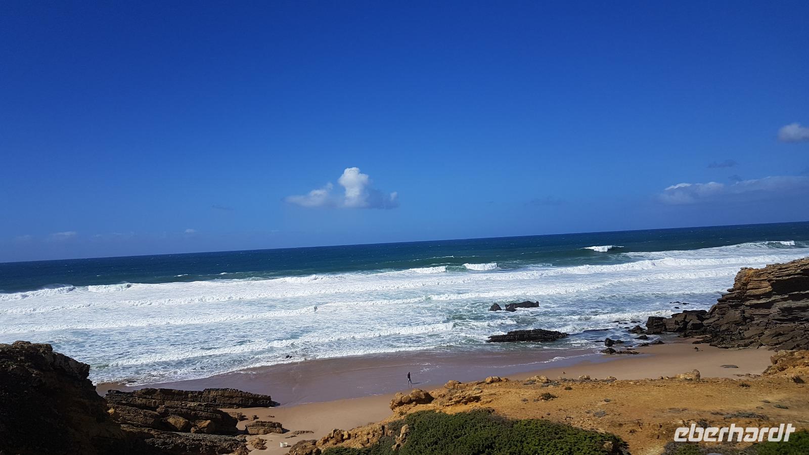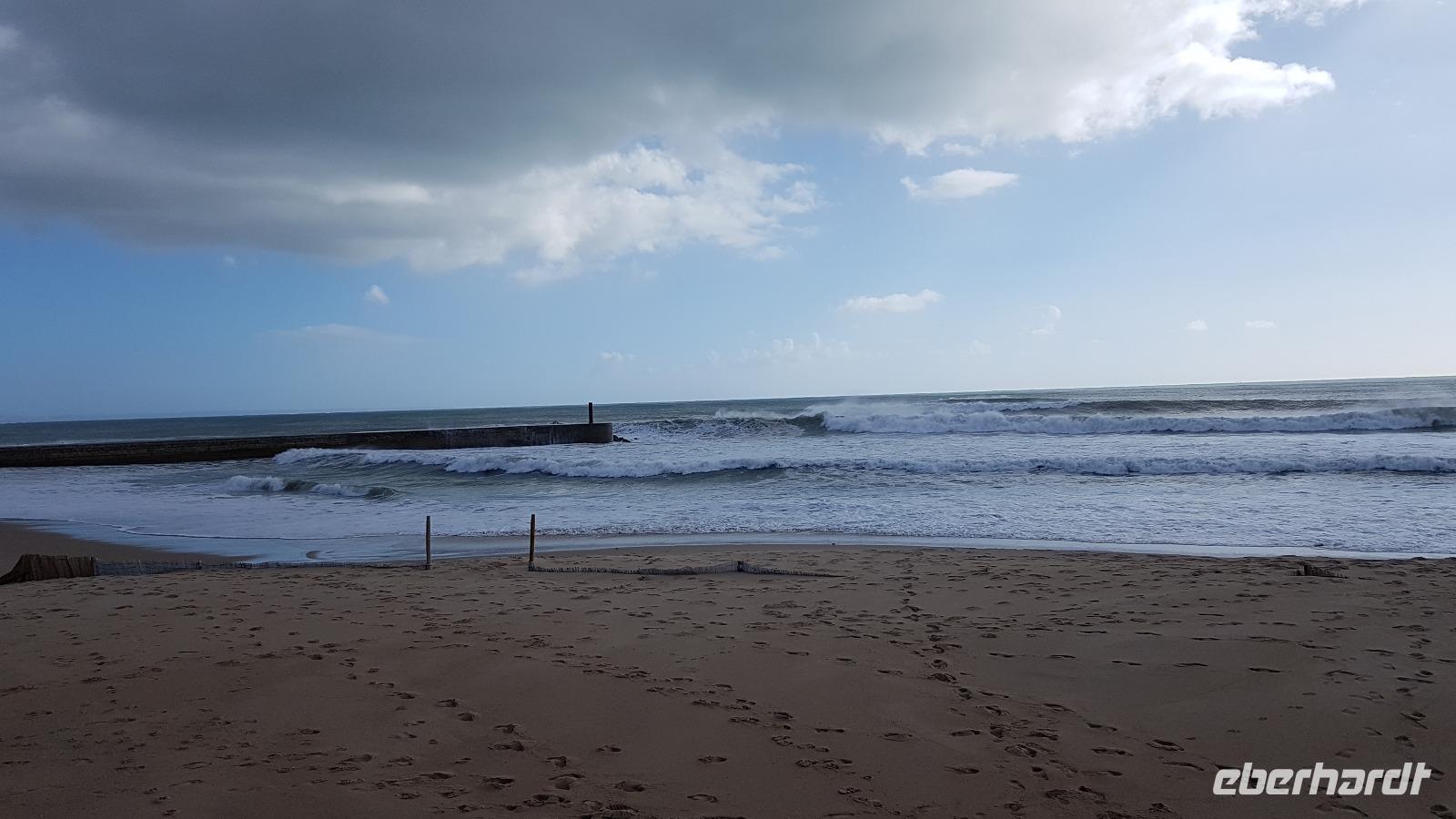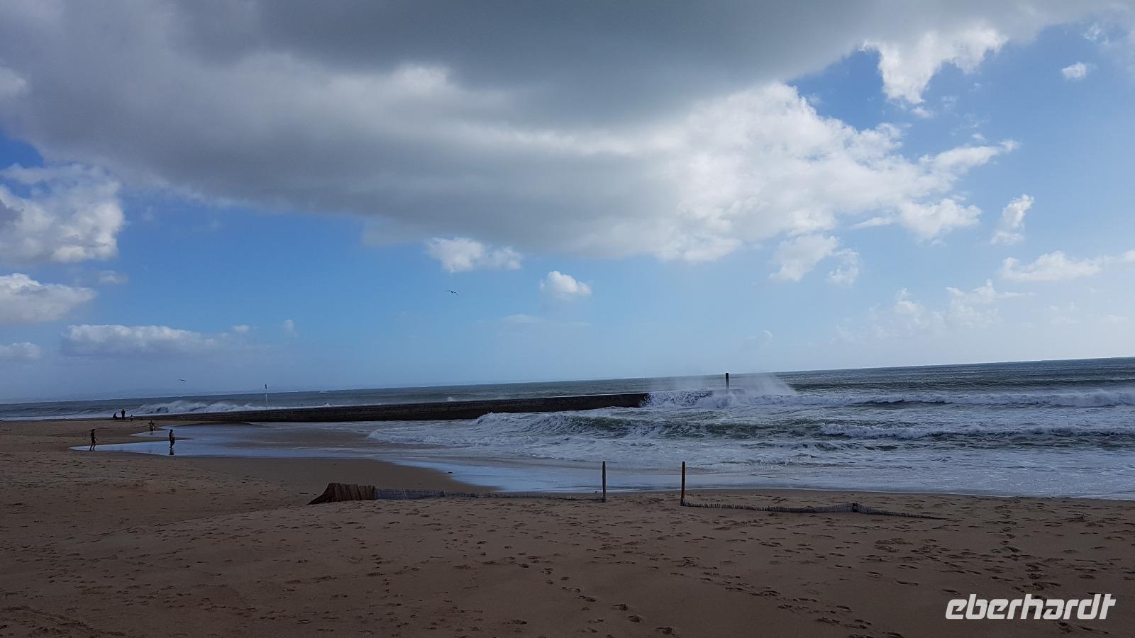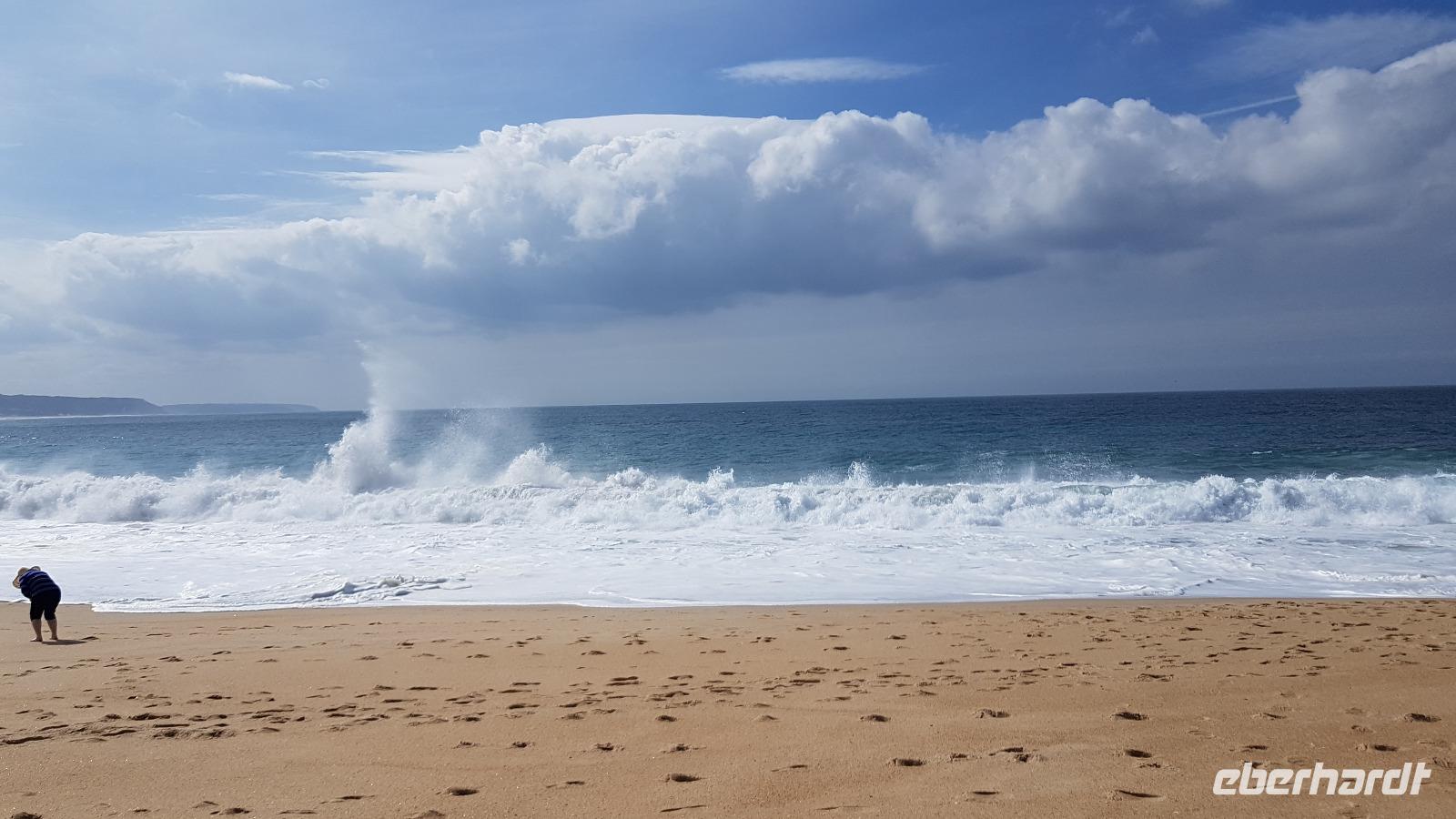 erreicht. Hier hielten wir am Strand, der wegen der hohen Wellen immer noch abgesperrt war. Das hielt natürlich einige Übermütige nicht davon ab, trotzdem in die Wellen zu tauchen, auch Surfer waren wieder unterwegs und nutzten die Gunst der Stunde. Wir genossen einfach das imposante Schauspiel und spazierten dann zurück zum Bus. Ein kleiner Stopp noch am berühmten Casino, das im James Bond- Film vorkam und schon ging es weiter. Ein riesiges Äquadukt zeugte von der frühen Besiedlung und den Baukünsten und schon waren wir wieder zurück in Lissabon. Ein wunderbarer Tag ging zu Ende und im Hotel erwartete uns ein Buffett zum Abendessen. Dann hieß es Koffer packen, morgen ziehen wir weiter- unser Ziel heißt : Algarve.