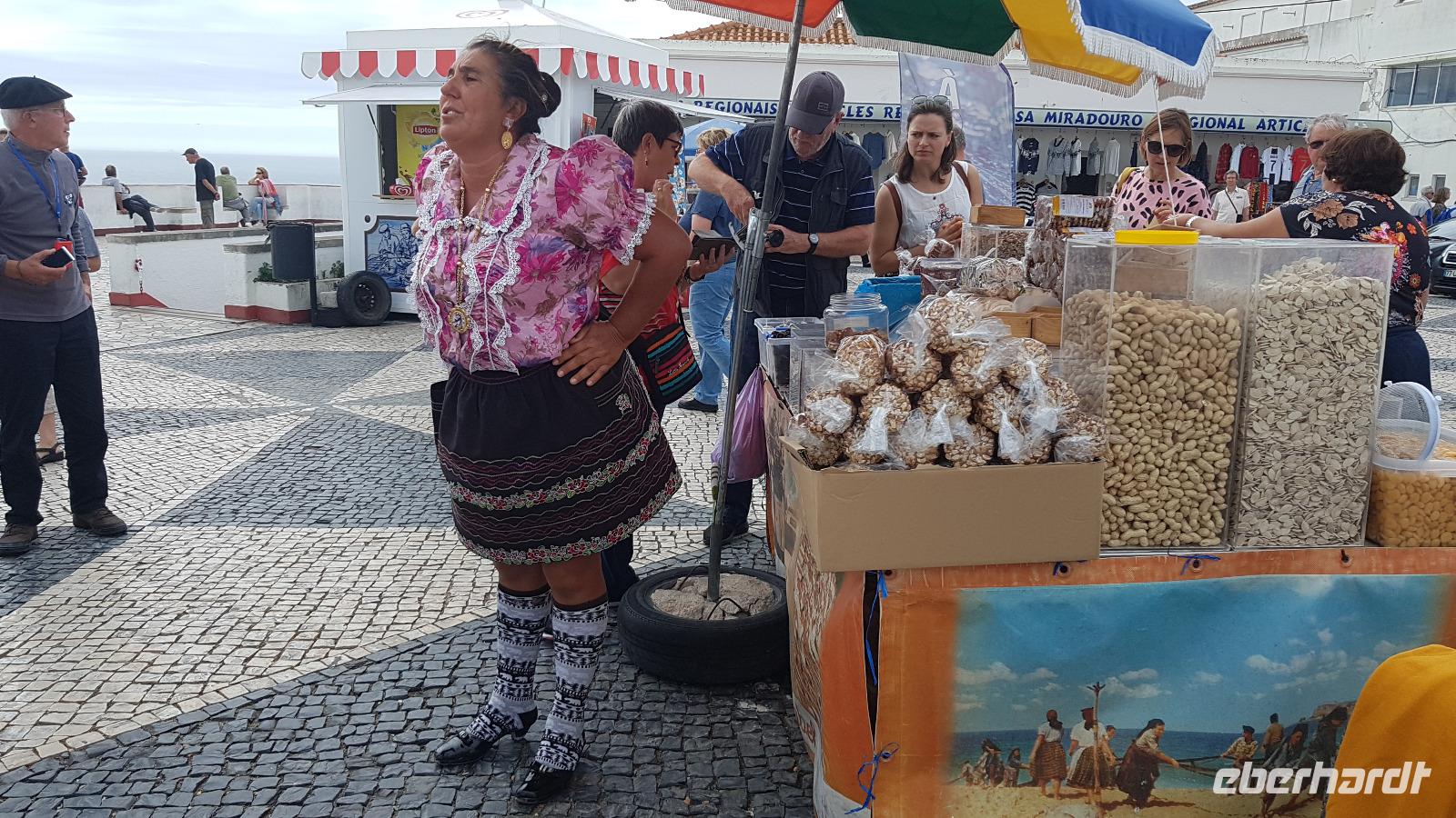 Auch heute noch ein Fischerdorf liegt es direkt an der Westküste und wir fahren auch direkt an die Strandpromenade. Wie die Wellen sich tosend brechen! Wie die Gischt aufbraust und den ganzen Strand in feinen Nebel hüllt- WOW! Hier hatten wir Zeit für das Meer und einen Mittagsimbiss bevor wir hinauffuhren auf den Felsen und dort oben in fast 90 Metern Höhe einen phantastischen Blick auf das Meer und den Strand, den Hafen und den Ort unter uns werfen konnten. Hier oben stand auch eine kleine Kapelle für die Jungfrau Maria, die hier einen Jäger vor dem Sturz über die Klippen bewahrt haben soll und natürlich eine Kirche auf dem Platz hier oben, der eigentlich den Frauen gehört, die hier ihre Backwaren verkaufen. In der hiesigen Tracht mit kurzen, aber 7- lagigen Röcken brachten sie leckerstes Nussgebäck, Mandeln, Nüsse und Pistazien an den Mann oder die Frau. Wir genossen die Aussicht und das Treiben hier oben bevor es weiterging nach