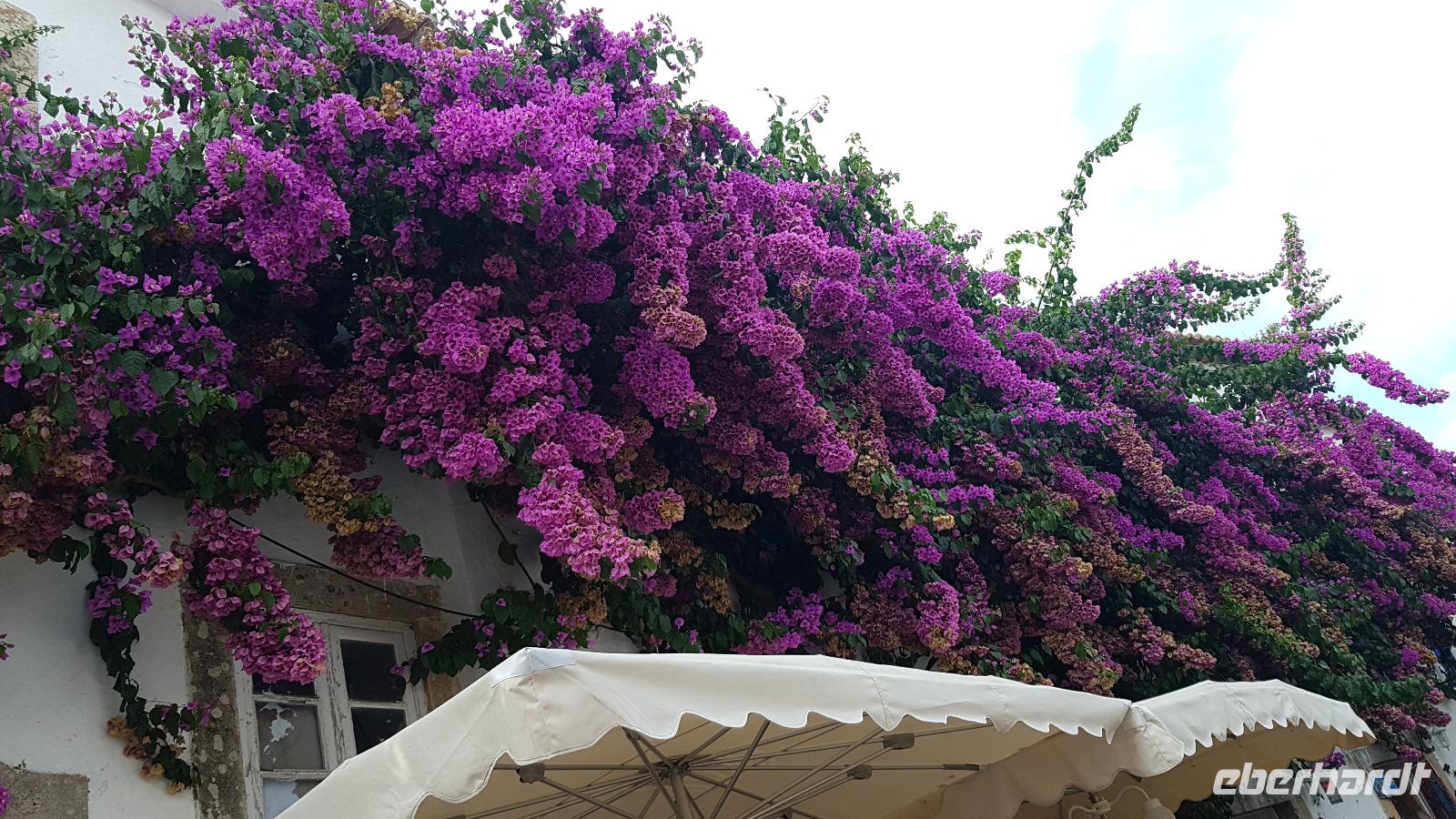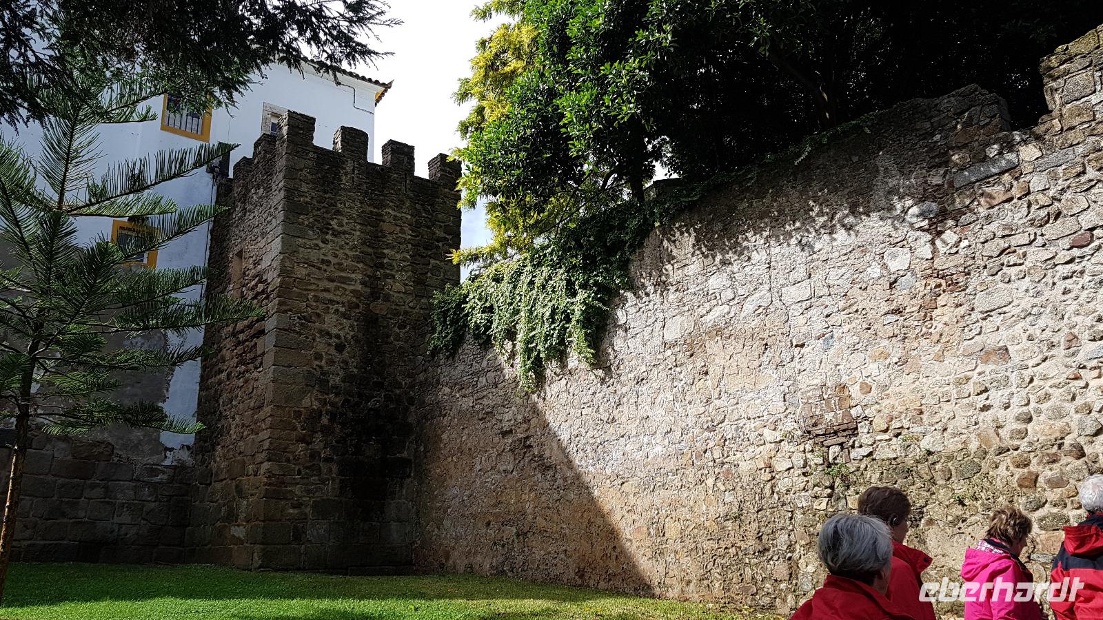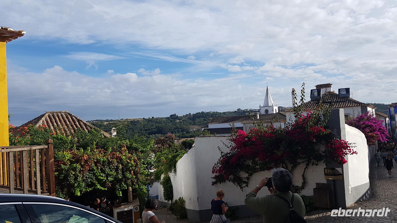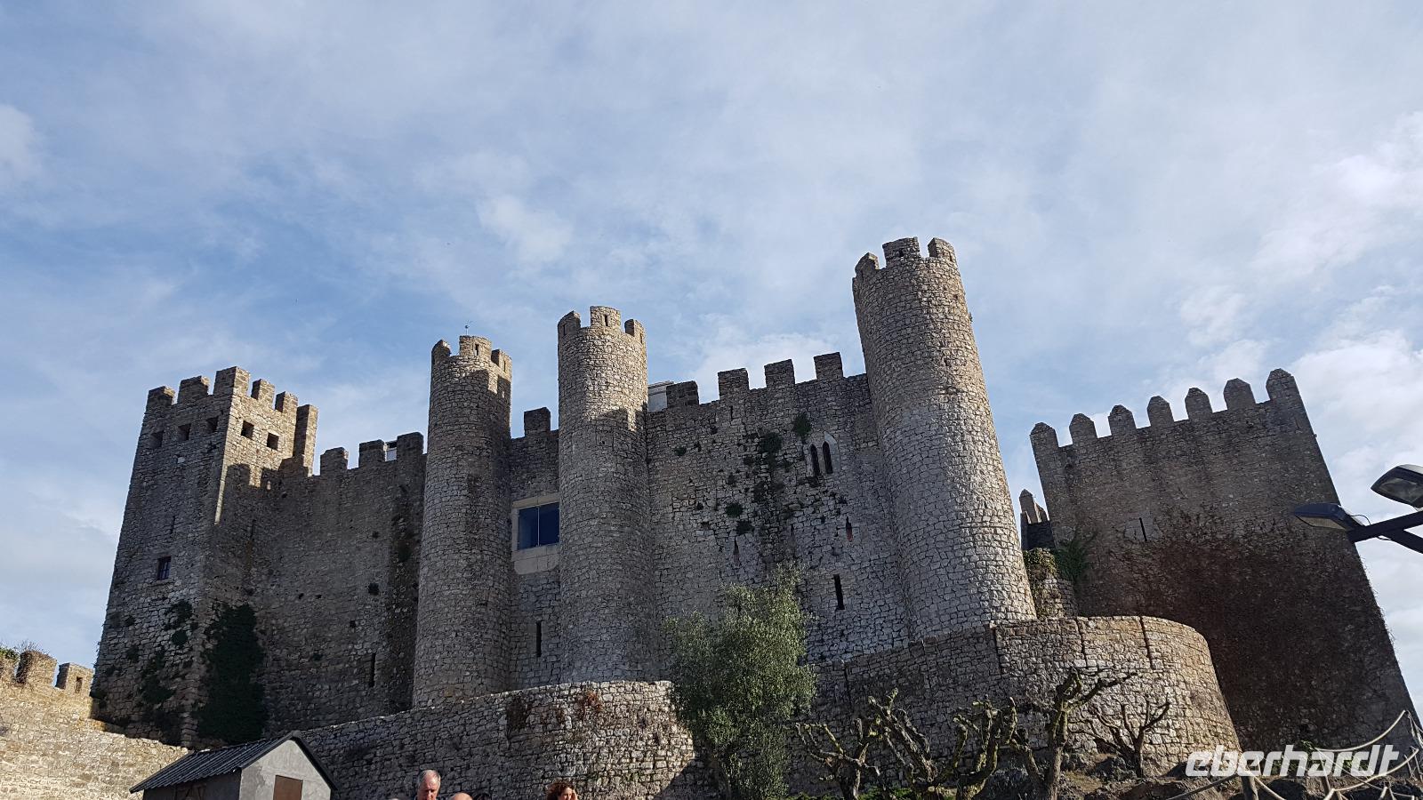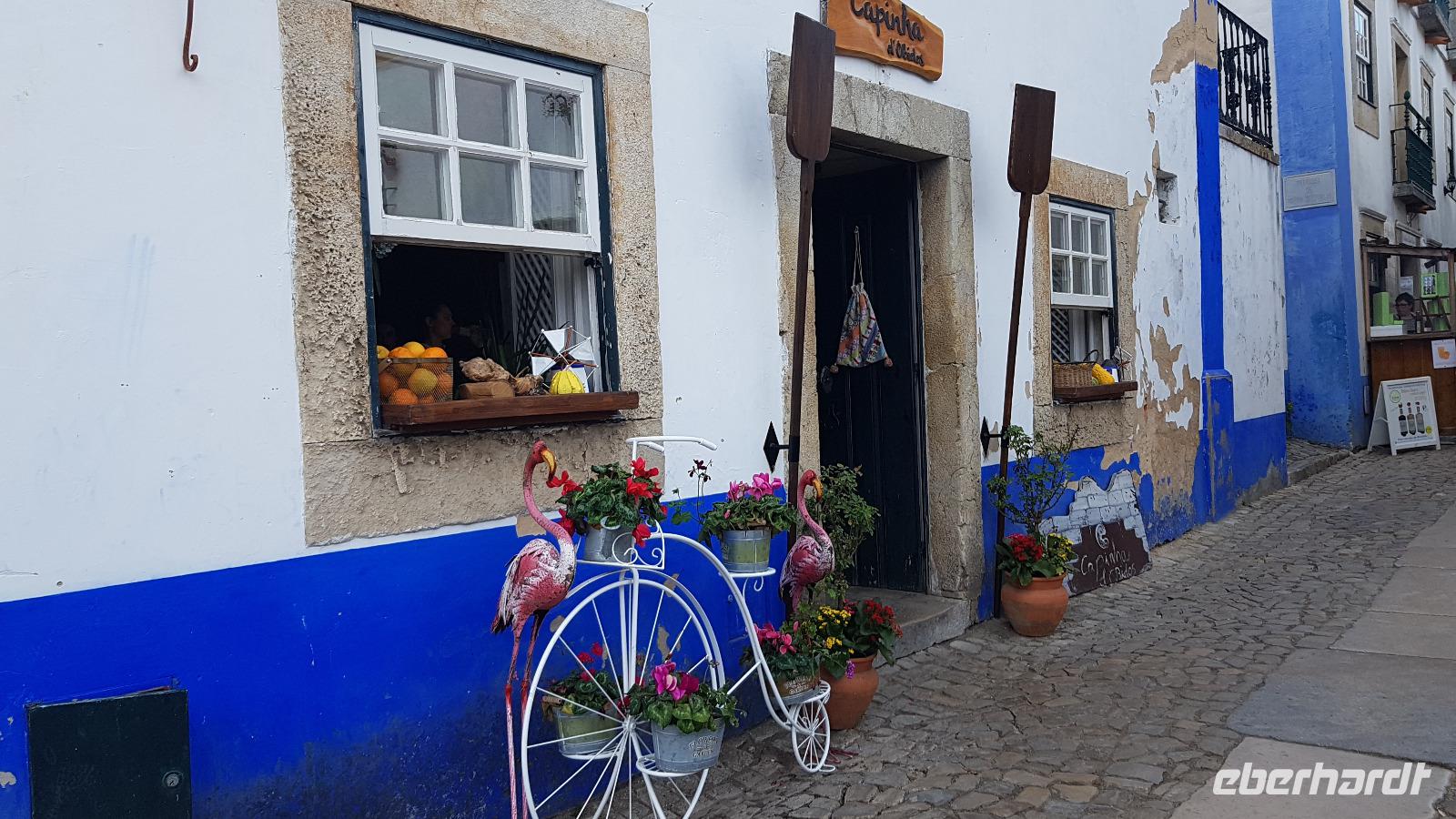 Diese Stadt war ein Geschenk. Ein Geschenk des Königs Dinis an sein Geliebte. 17 Kirchen soll die Stadt haben, vor allem aber eine romantische romanische Burg und wunderschöne Gässchen mit Läden, Cafes und Restaurants und natürlich mit dem berühmten Kirschlikör. Den konnte man überall probieren, am besten in einem Schokobecher. Hmmm! Hier konnten wir nach Herzenslust bummeln, auf der Stadtmauer entlangspazieren oder der einen und anderen Kirche einen Besuch abstatten. Die Zeit verging wie im Flug und schon hieß es: weiterfahren. Unsere letzte Station für heute heißt