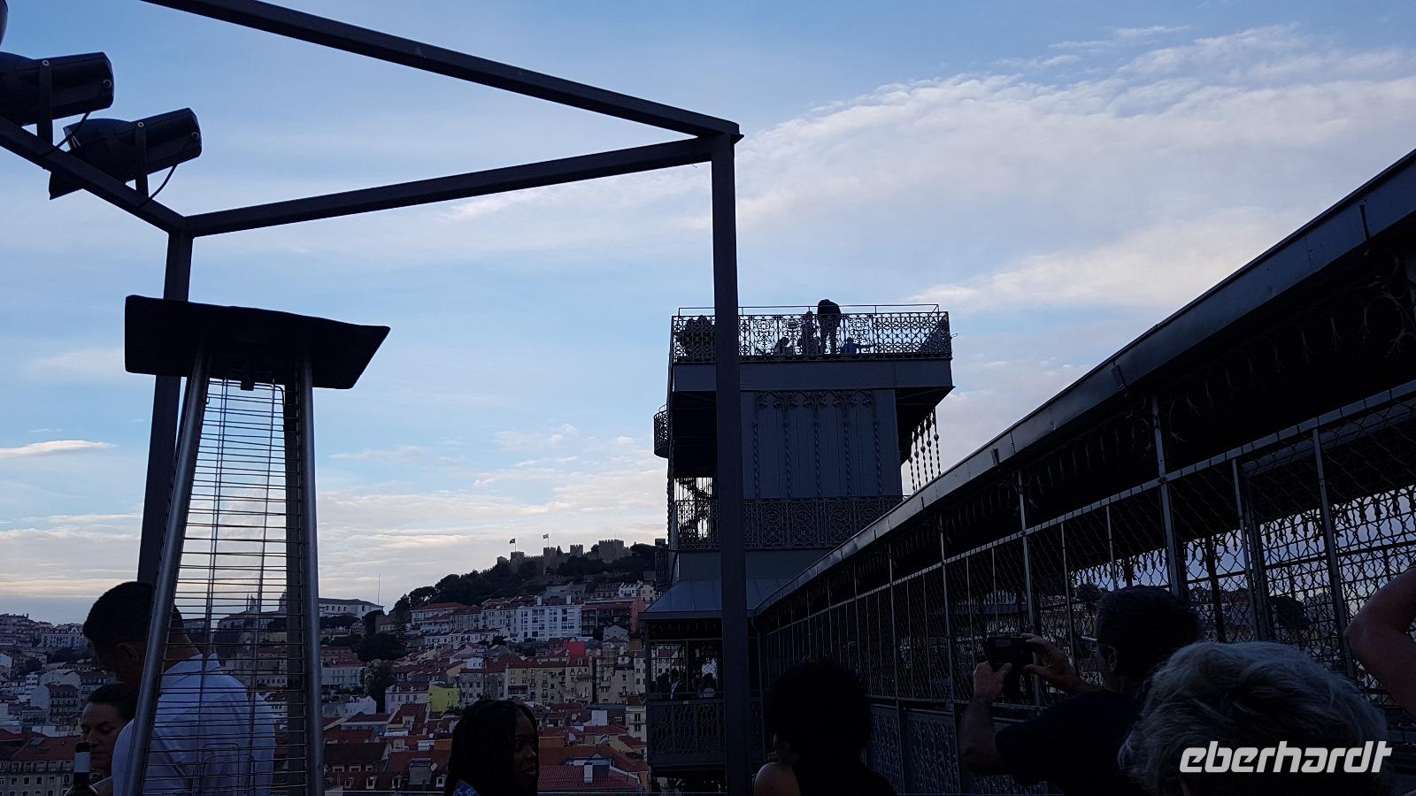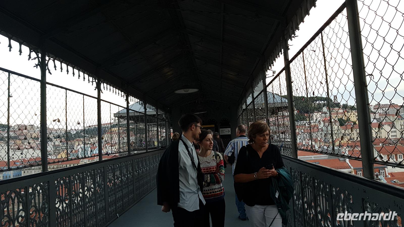 Portugiesischer geht es nicht- die Seele Portugals wird diese Musik genannt, voller Sehnsucht und Weltschmerz. Davon konnten wir uns live überzeugen. Ein tolles Ambiente und tolle Musiker! Die sogenannte portugiesische Gitarre (sie gerhört zum Fado) wurde virtuos gespielt- sie hat 12 Seiten und gilt als schwerstes Seiteninstrument. Tief beeindruckt und ein klein wenig beseelt laufen wir wieder hinunter Richtung Rossio, dem Platz, an dem wir uns mit den anderen verabredet hatten. Unterwegs statteten wir dem Fahrstuhl noch einen Besuch ab und genossen die Aussicht von ganz oben. Dann jedoch schickte der Hurrican "Leslie" seine Vorboten, es regnete plötzlich und ein Sturm zog auf. Alle Cafes und Geschäfte machten sich bereit für den Sturm und wir waren froh, als wir das "Cozinha da Estaçao" erreicht hatten. Hier wollten wir heute zu Abend essen. Maria holte noch die anderen Gäste ab und dann genossen wir einen tollen Abend mit einem tollen Essen! Mit dem Bus ging es dann zurück ins Hotel und manch einer verfolgte gespannt den Weg des Hurricans. Er war weiter nördlich als erwartet auf Land getroffen, Coimbra und Nazare konnten wir in den Nachrichten sehen, er hatte jede Menge Regen und Sturm dabei. Bei uns dagegen gab es keine Probleme und so konnten wir ruhig einschlafen.