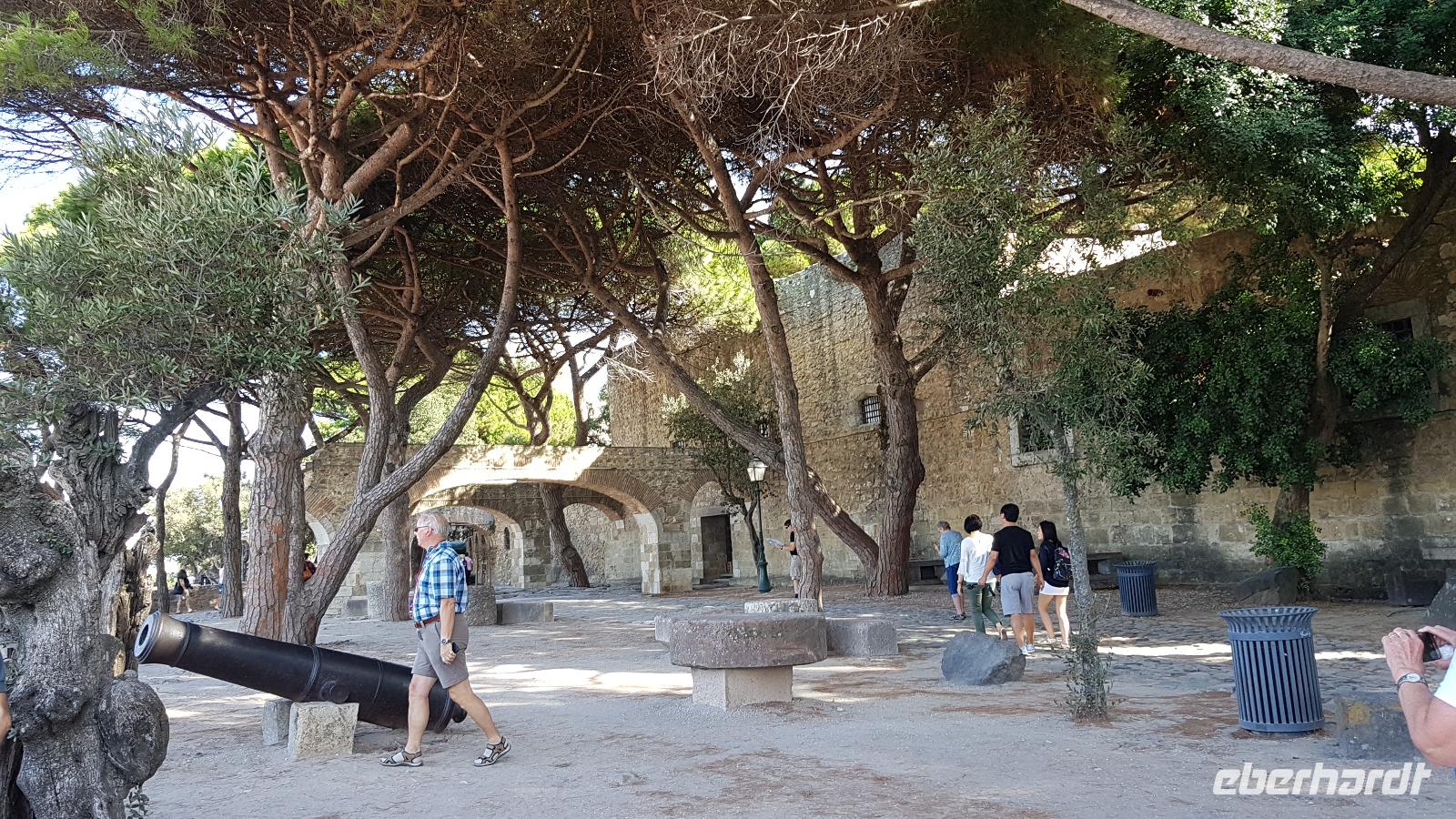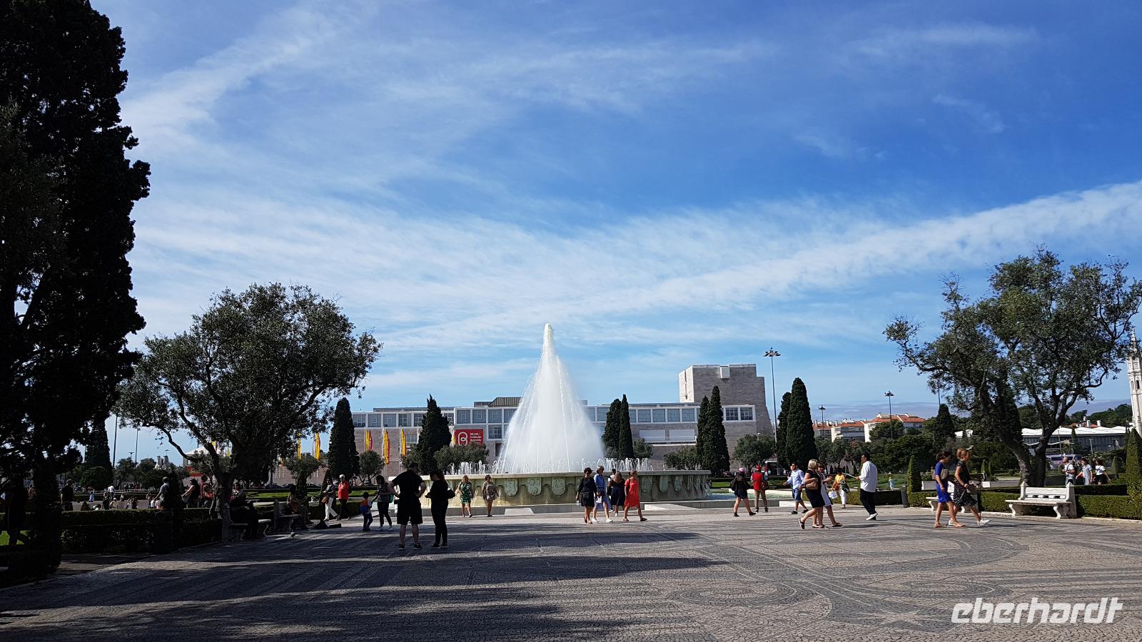 König Manuel I. hatte den Bau 1515 in Auftrag gegeben, also feierten die Lissaboner 2015 den 500. Geburtstag! Als Wahrzeichen Lissabons begrüßte und verabschiedete er die Seefahrer und in seiner wechselvollen Vergangenheit war er auch Gefängnis und Waffenlager. Bei unserem Besuch war ein Areal weiträumig abgesperrt und Soldaten standen an den Kanonen bereit. Warum sollten wir bald hören. Unweit vom Belemturm steht heute das