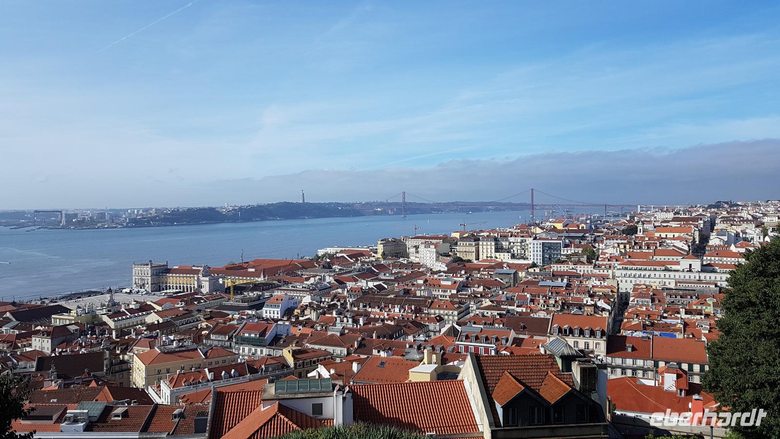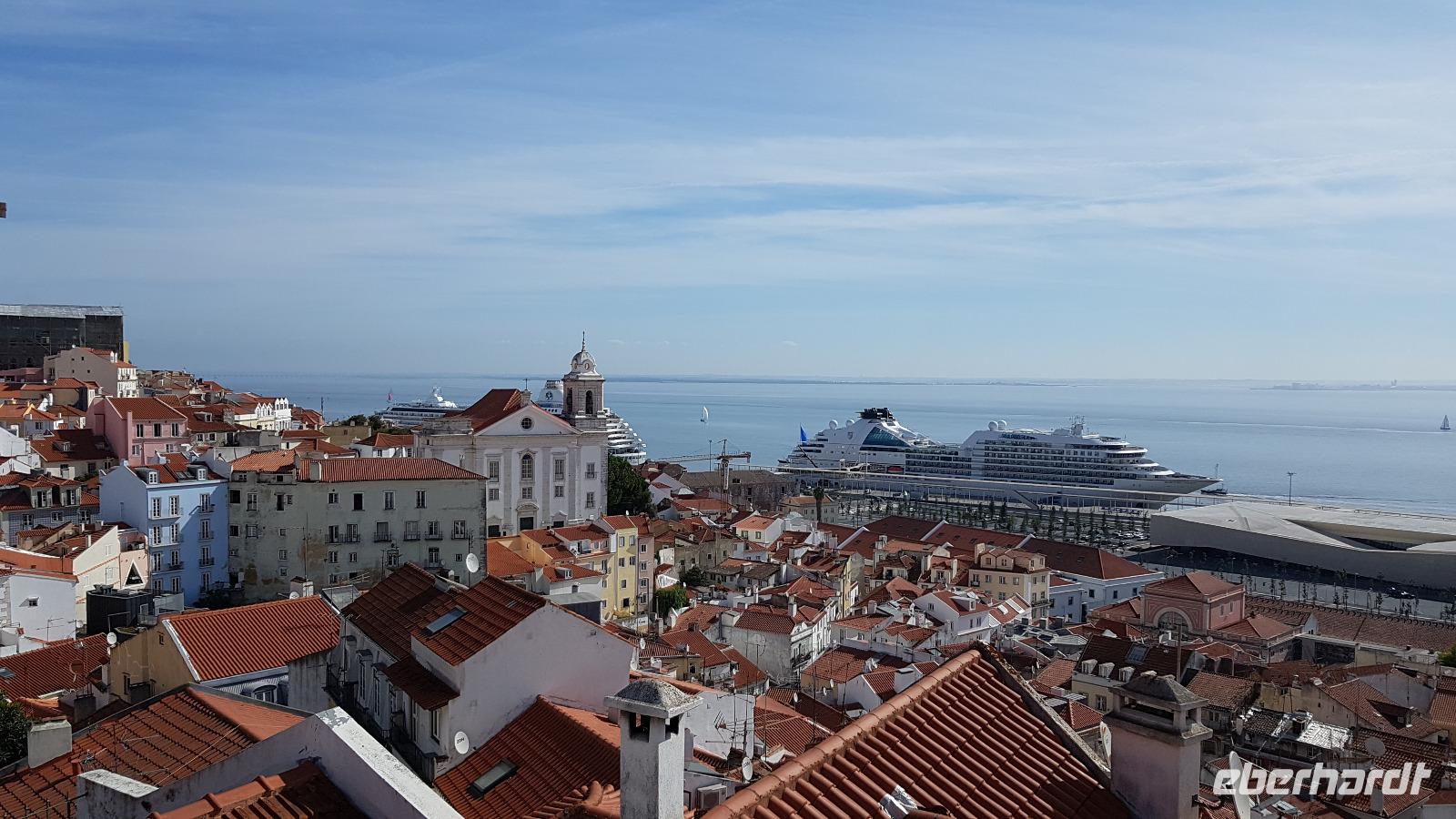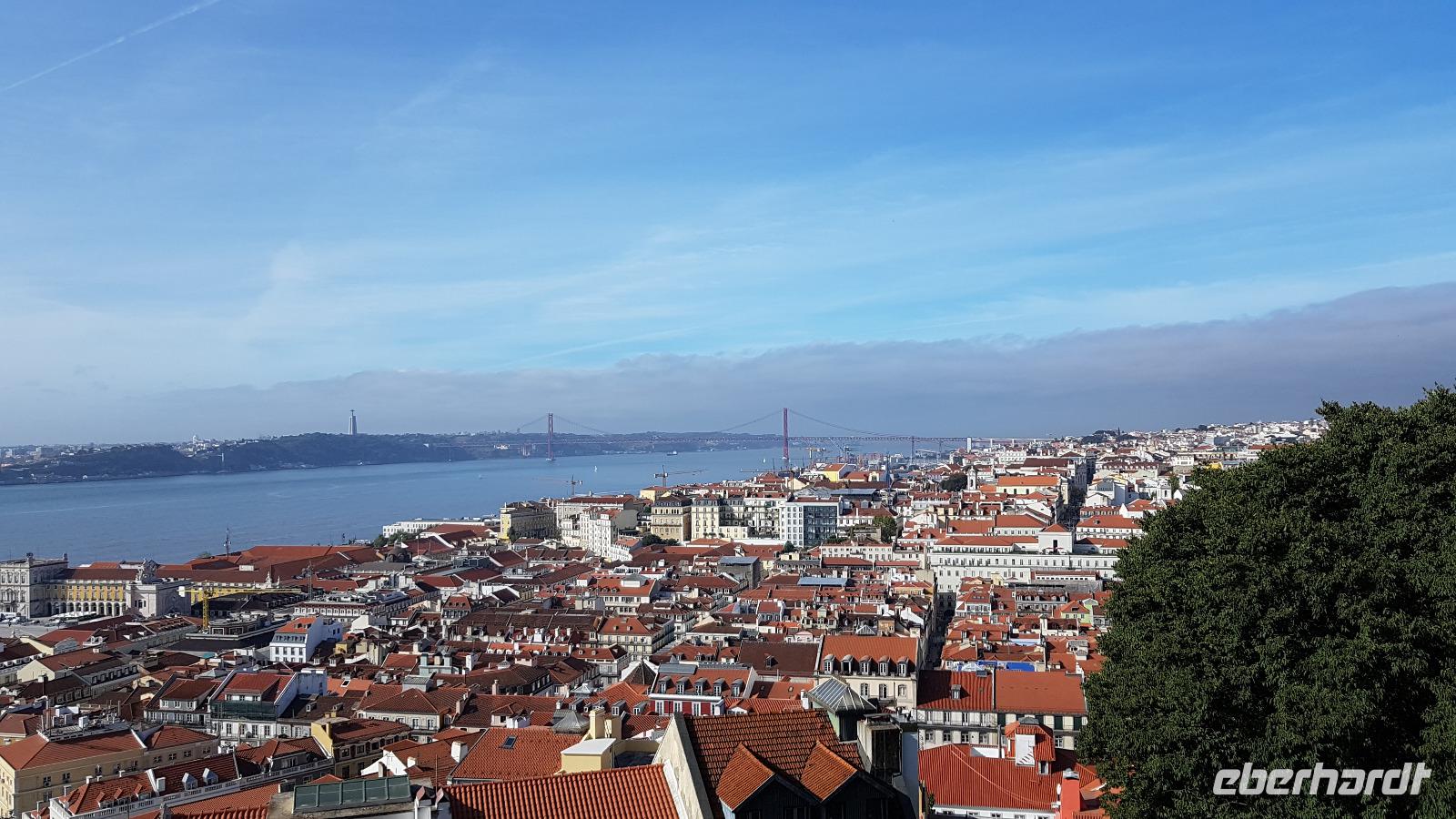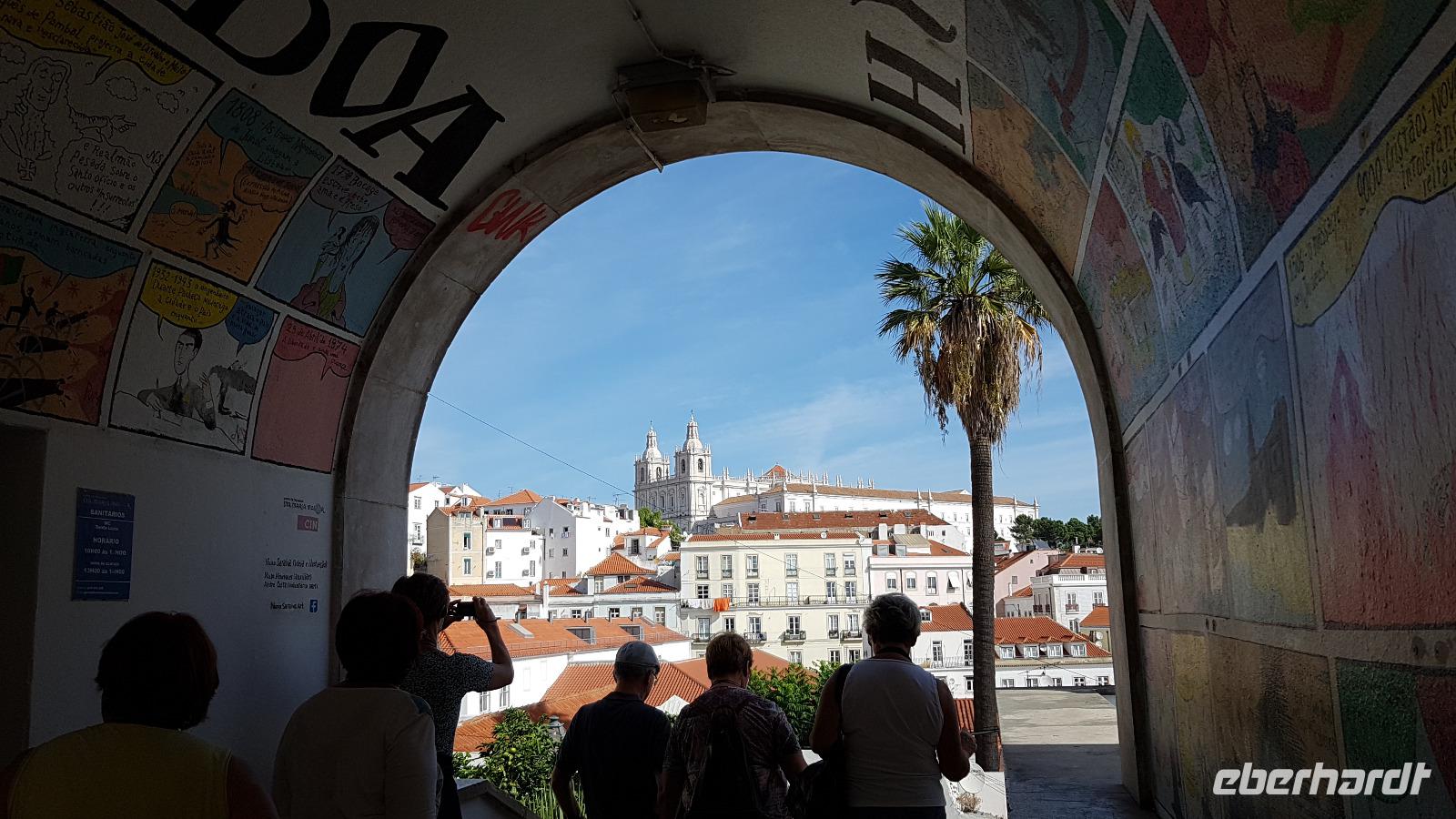 Der Tag heute gehört Lissabon. Wir starten mit einem fulminanten Aussichtspunkt, können den Park Eduard VII. und die Avenida da Liberdade hinabschauen bis zum Tejo. Maria erzählt uns, dass es 1755 ein schweres Erdbeben mit einem Tsunami gab, die 3/4 der Stadt zerstörten. Einem genialen und weitsichtigen Baumeister ist es zu verdanken, dass die Stadt mit so viel Übersicht und breiten Straßen zwischen den beiden Hügeln am Tejo wiedererstehen konnte. Sein Name war Marqes de Pompal. Er setzte sein Konzept mit äußerster Härte durch, war deshalb später auch höchst umstritten. Wir genießen jedenfalls den Ausblick und fahren dann in die Alfama- die Altstadt. Unser Bus darf nicht hinauffahren, deshalb gehen wir die 160 (Höhen)Meter zu Fuss - schnauf! Die alten Straßenbahnen rumpeln an uns vorbei und die TukTuks sind flink und dank Elektroantrieb leise. Endlich aber haben wir sie erreicht: die Kathedrale von Lissabon, die "Se de Lisboa". Ein romanischer Bau mit neuen Elementen der Gotik. Wir können uns in Ruhe umsehen und Maria erläutert uns die Besonderheiten dieser Kathedrale. Dann heißt es weiterspazieren, vorbei an den Ausgrabungen des römischen Theaters erreichen wir das Castelo de S. Jorge. Maria besorgt unsere Eintrittskarten und dann können wir einen traumhaften Ausblick auf die Stadt genießen. Strategisch günstig war diese maurische Burg angelegt und sie hat dank ihrer Lage auf dem Hügel auch das Erdbeben und den Tsunami überstanden. Dann ist wieder Zeit für individuelle Entdeckungen bevor wir unseren Spaziergang durch die Alfama fortsetzen. Unser Bus bringt uns dann wieder am Handelsplatz vorbei nach Belem. In diesem Stadtteil befindet sich das weltberühmte