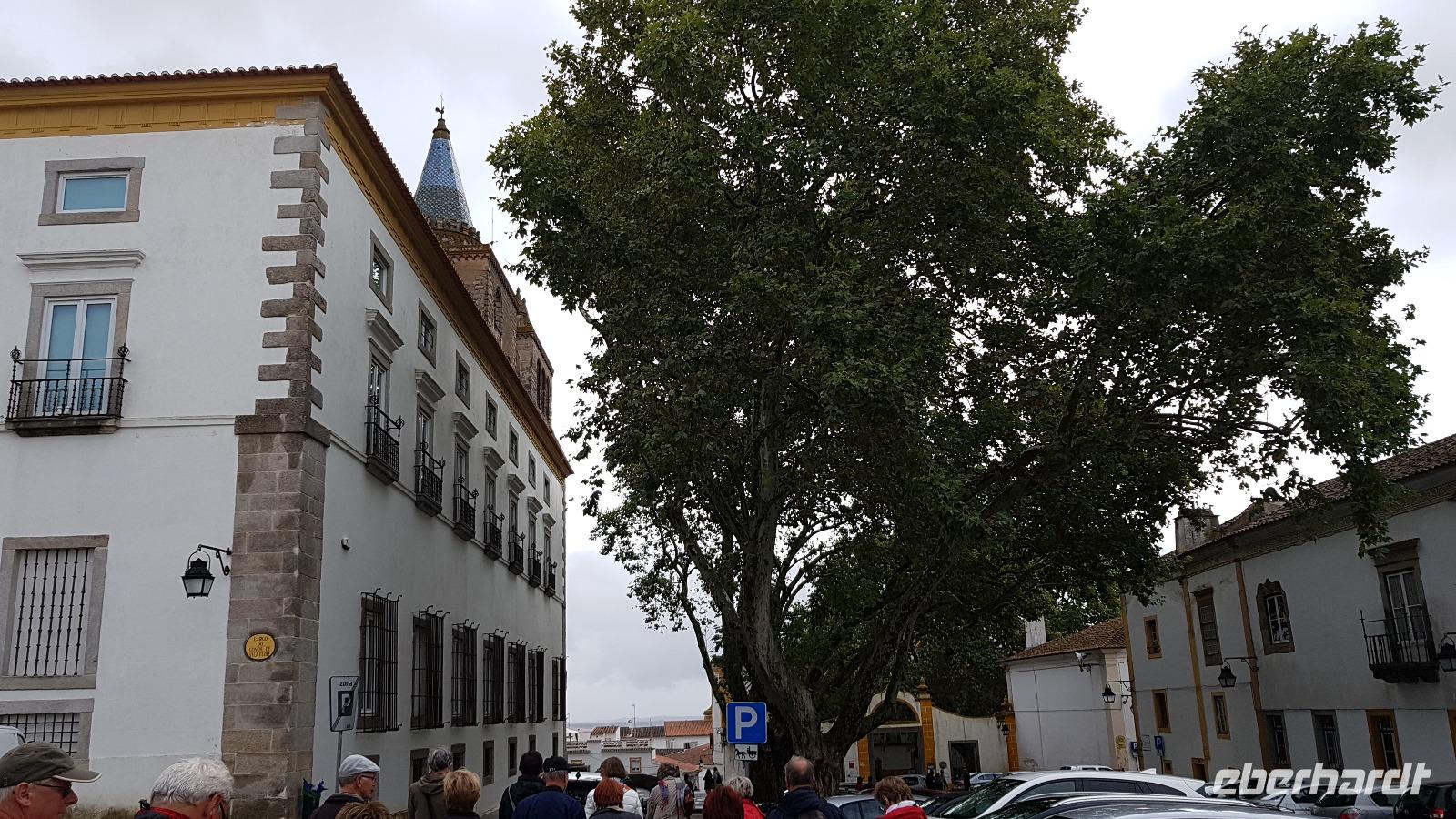 In der Nacht gingen kräftige Regenschauer nieder und auch heute Morgen sollte uns der Regen noch begleiten. Deshalb blieben wir im Bus und machten einen Abstecher zum Expo-Gelände. Dort wo einst Ölraffinerien standen wurde das gesamte Areal umgestaltet und 1998 zum Park der Nationen. Wir sind beeindruckt von der Weitsicht damals- heute gibt es hier keine leeren Messehallen sondern lebendige Viertel mit moderner Industrie, Hotels, Büros, Ozeanarium und vielen weiteren Attraktionen. Weiter geht unsere Fahrt am Nordufer des Tejo entlang zur Vasco da Gama- Brücke. Hier ist der Tejo 15 Kilometer breit und sie verbindet mit ihren 17 Kilometern Länge das Süd- mit dem Nordufer. Am Südufer dann sehen wir auch Überreste der Salzgewinnung, die hier einmal stattfand. Dann führt uns unsere Reise wieder ins Landesinnere, Evora ist unser Ziel, doch zuvor stoppen wir in einer