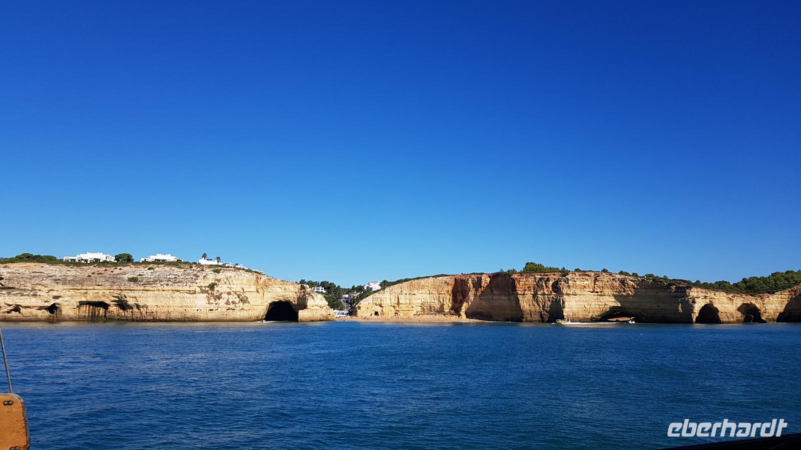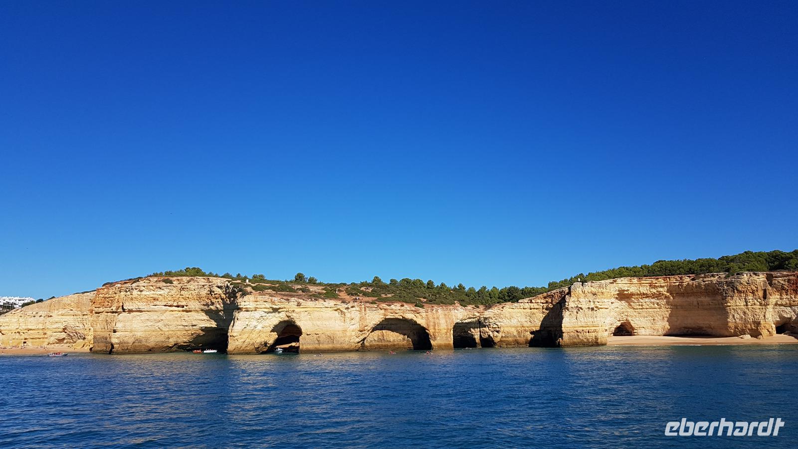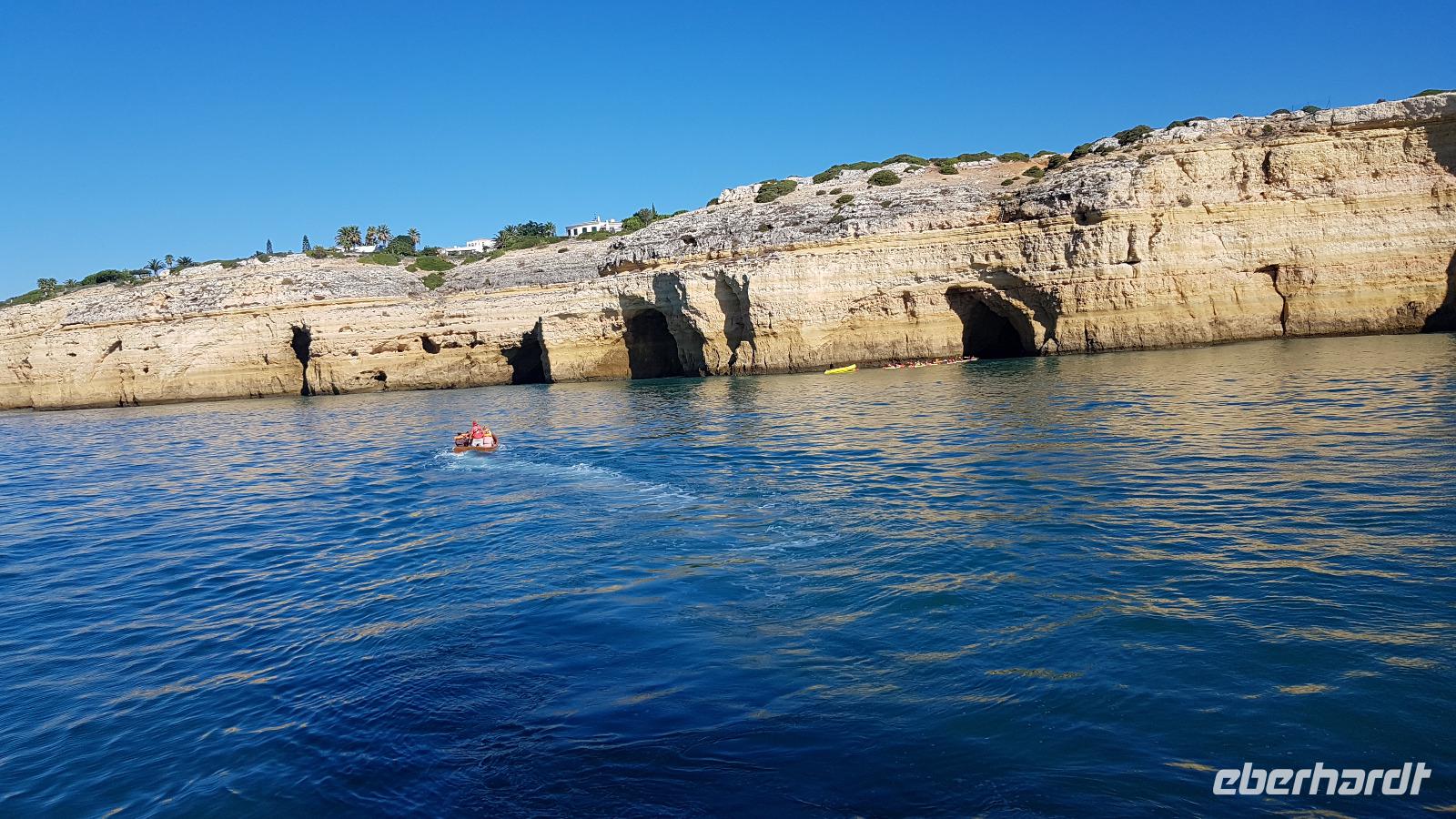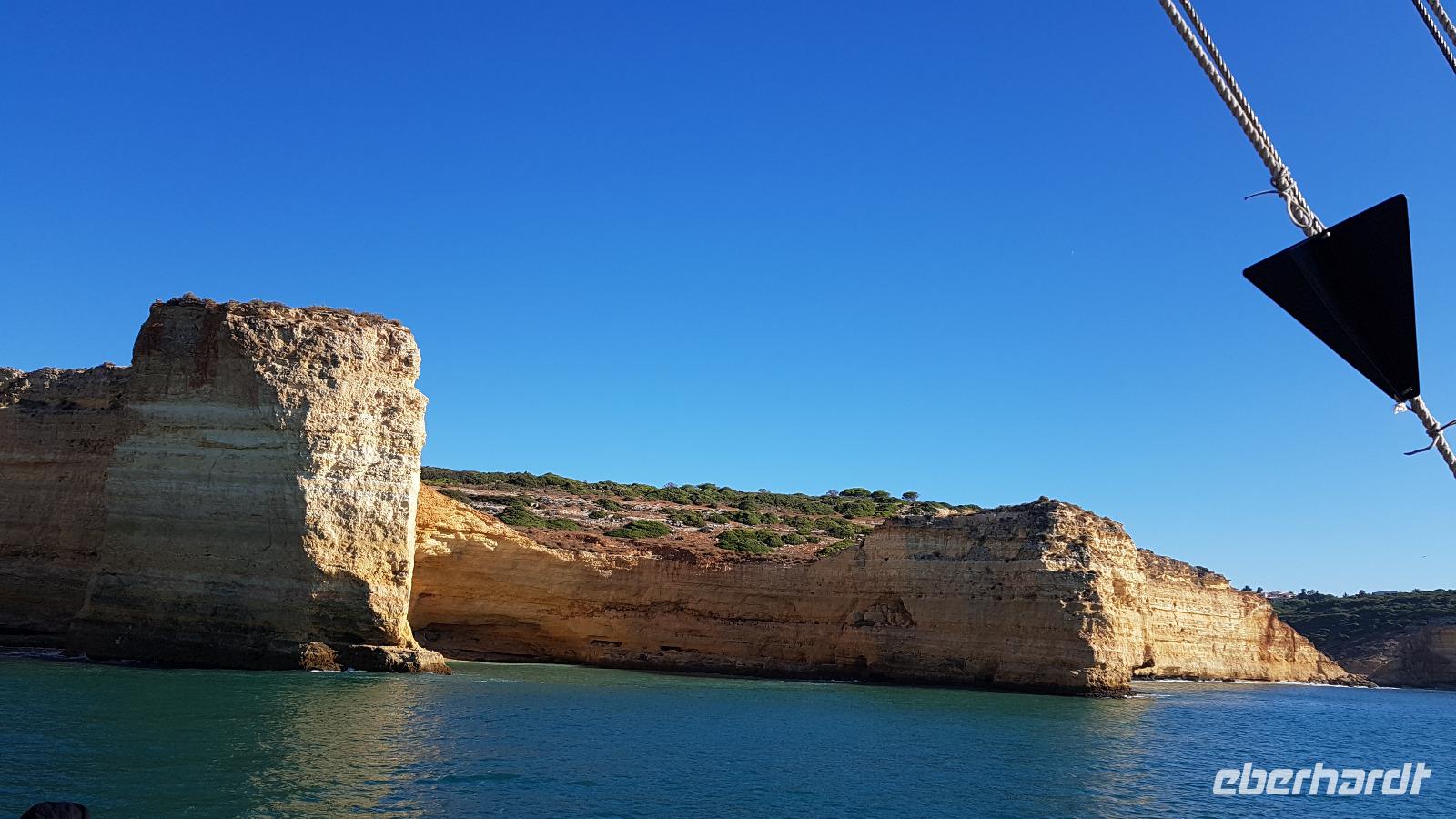 Heute ist frei, einige Gäste hatten beschlossen, mit der kleinen Bahn, die im Ort ihre Runden dreht die Gegend zu erkunden, andere fuhren mit mir nach Portimão. Ich hatte am Vorabend diesen Vorschlag unterbreitet und so machten wir uns zu einer ganz speziellen Bootsfahrt auf. Unser Shuttle-Service brachte uns in die Hafenstadt Portimão, hier sahen wir schon unser "Boot"- es war ein Segler, die "Santa Bernarda". Mit ihr fuhren wir hinaus aufs Meer und an der traumhaft schönen Küste entlang. Klippen und Buchten wechselten sich ab, immer wieder hatte das Meer Grotten erschaffen. In einige konnten wir dank kleiner Beiboote auch hineinfahren- was für ein Erlebnis! Und das bei schönster Sonne, blauem Himmel und türkisblauem Wasser. Den Nachmittag dann verbrachten einige in der Stadt, beim Wandern oder auch beim Baden, dann hieß es schon wieder Koffer packen, morgen fliegen wir nach Hause.