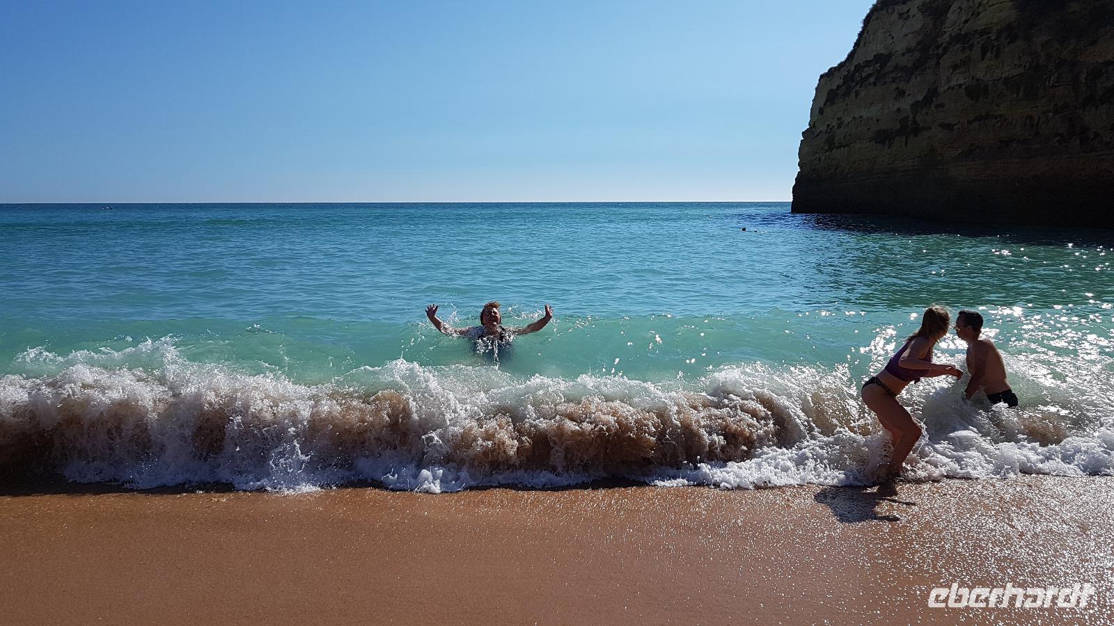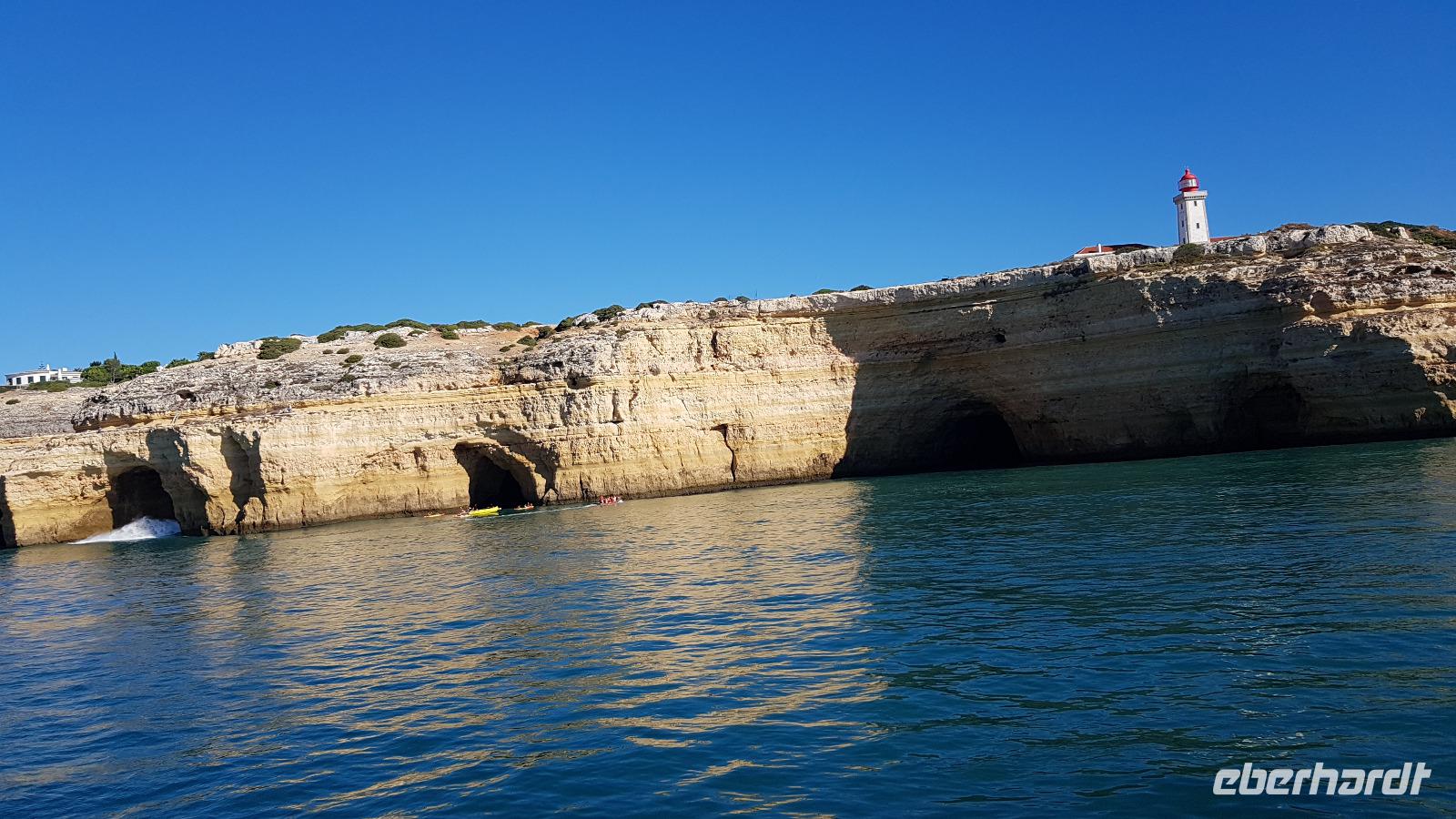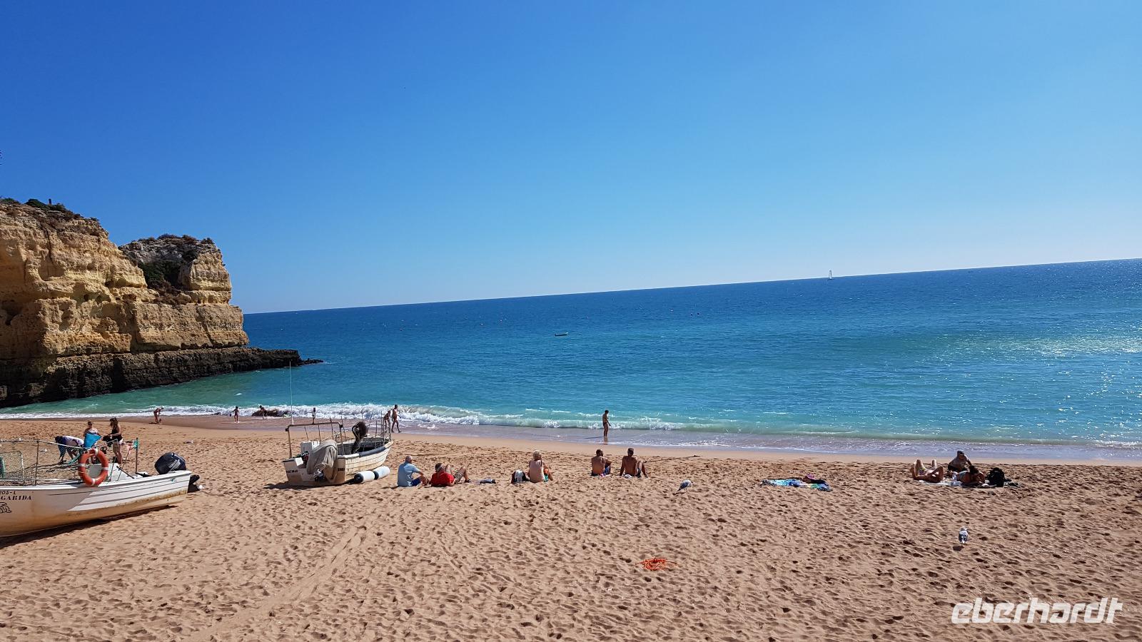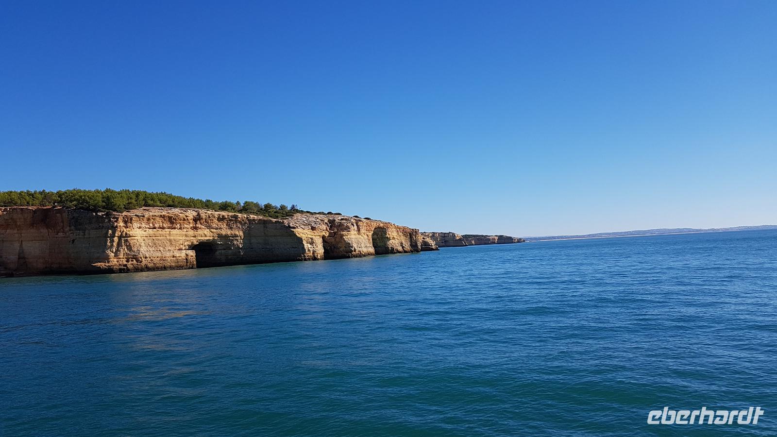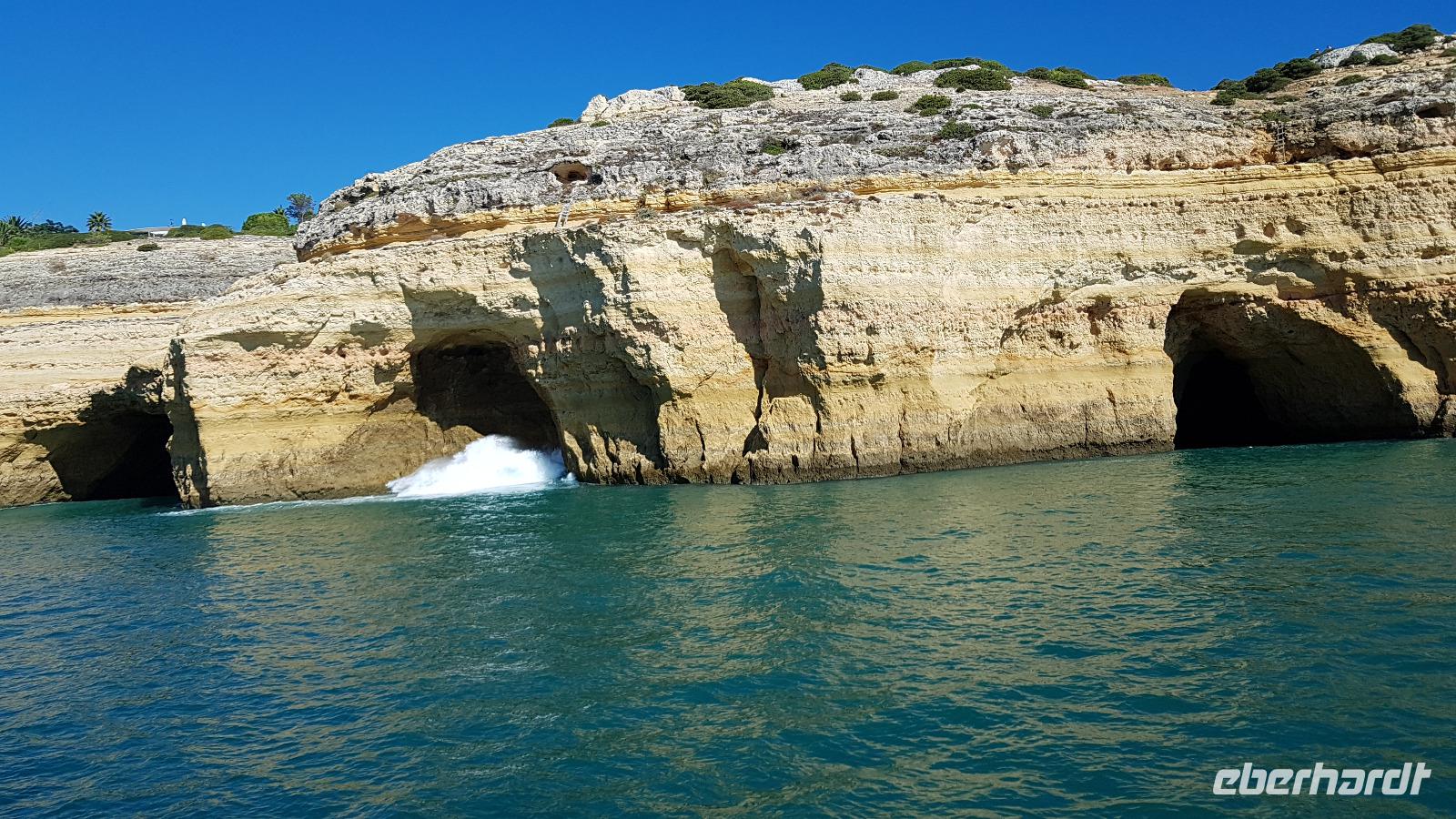 Heute ist frei, einige Gäste hatten beschlossen, mit der kleinen Bahn, die im Ort ihre Runden dreht die Gegend zu erkunden, andere fuhren mit mir nach Portimão. Ich hatte am Vorabend diesen Vorschlag unterbreitet und so machten wir uns zu einer ganz speziellen Bootsfahrt auf. Unser Shuttle-Service brachte uns in die Hafenstadt Portimão, hier sahen wir schon unser "Boot"- es war ein Segler, die "Santa Bernarda". Mit ihr fuhren wir hinaus aufs Meer und an der traumhaft schönen Küste entlang. Klippen und Buchten wechselten sich ab, immer wieder hatte das Meer Grotten erschaffen. In einige konnten wir dank kleiner Beiboote auch hineinfahren- was für ein Erlebnis! Und das bei schönster Sonne, blauem Himmel und türkisblauem Wasser. Den Nachmittag dann verbrachten einige in der Stadt, beim Wandern oder auch beim Baden, dann hieß es schon wieder Koffer packen, morgen fliegen wir nach Hause.