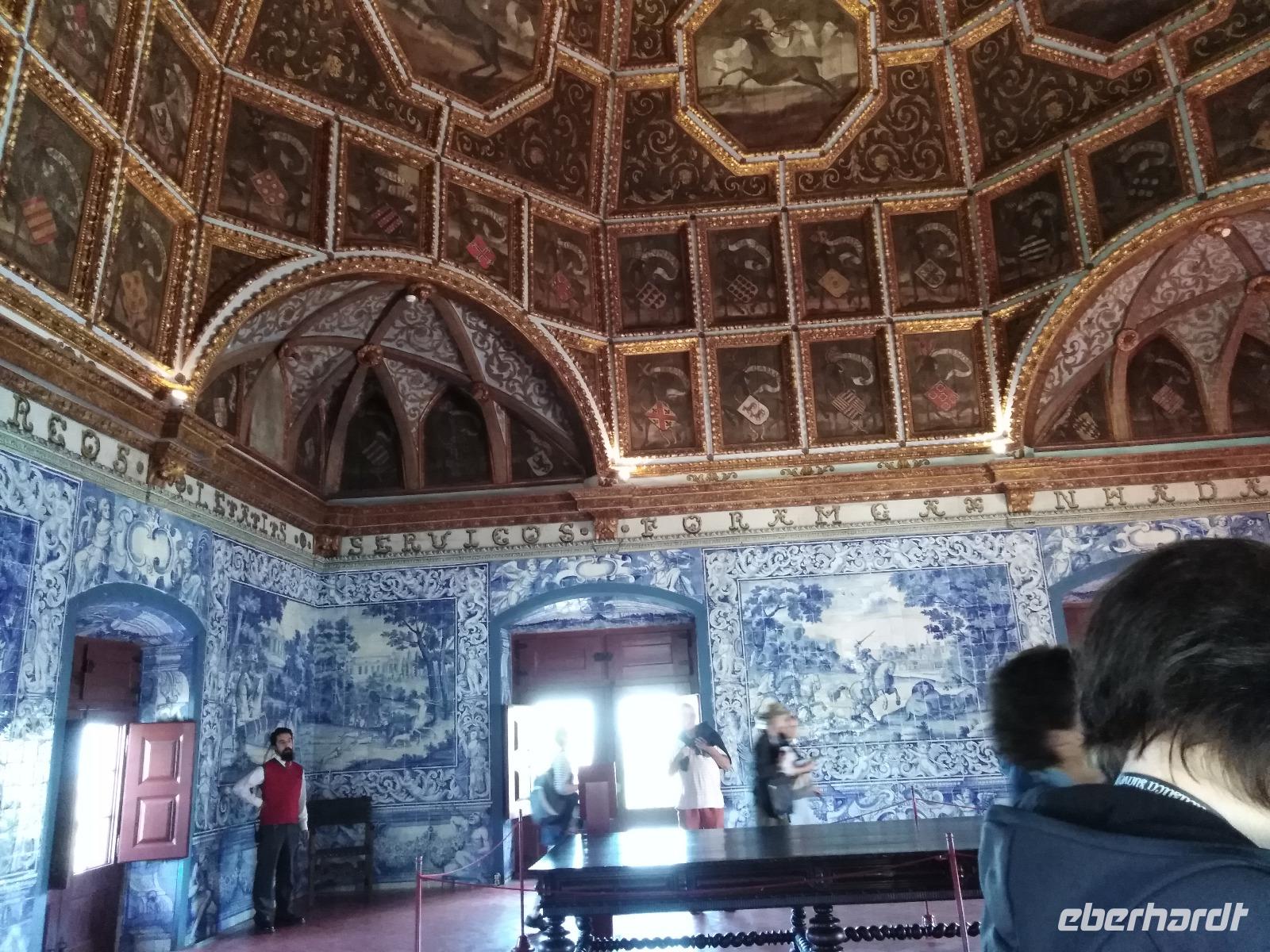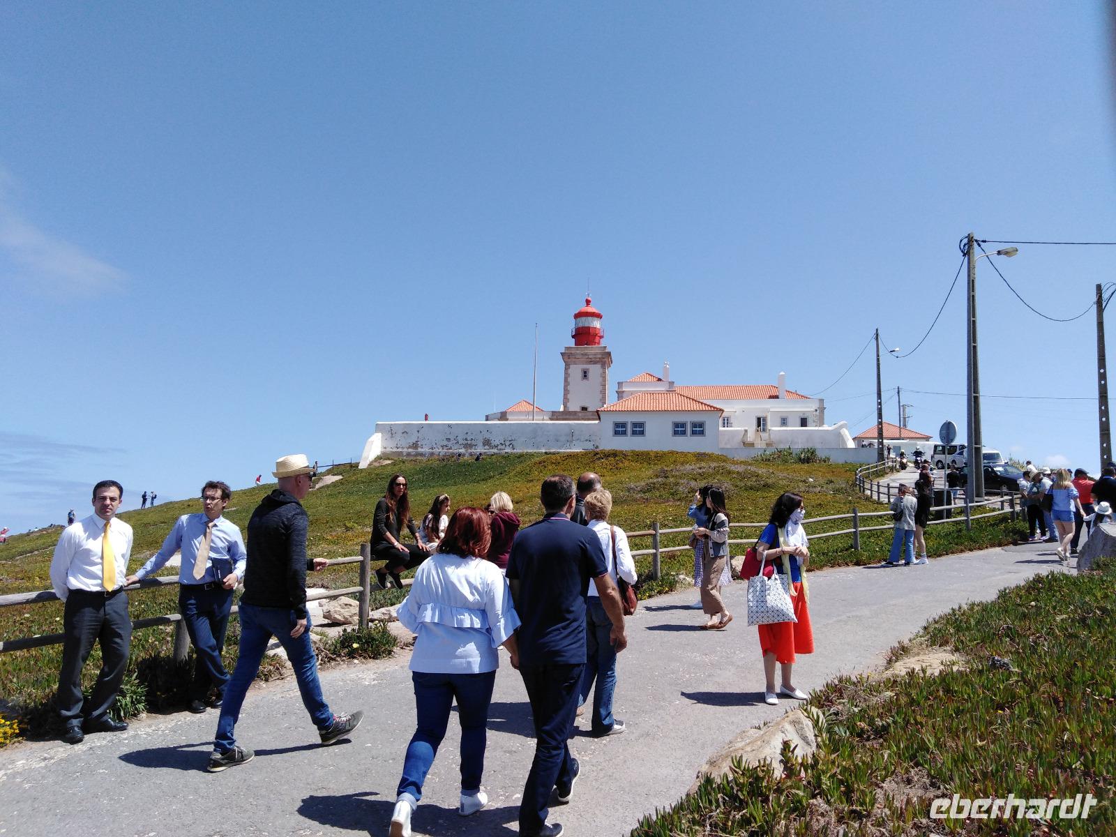 Wir besichtigten den Paco Real, dessen beide sich konisch nach oben verjüngenden Schornsteine ein Wahrzeichen Sintras ist. Da fast alle Innenräume mit Azulejos versiegelt sind, gilt der sehr verschachtelte Komplex trotz zahlreicher Umbauten im 19. Jahrhundert als bedeutendes Beispiel höfischen Lebens in den vergangenen Jahrhunderten. Prunkraum ist der sogenannte Hirschsaal mit Fliesenwänden und der achteckigen Holzkuppel mit Wappen.Anschließend fuhren wir zum Cabo da Roca, einem der westlichsten Punkte Festlandeuropas.144 m hoch auf einem Felsklotz befindet sich das Kap, schon von den Römern Promontorium Magnum genannt, mit Leuchtturmstation.