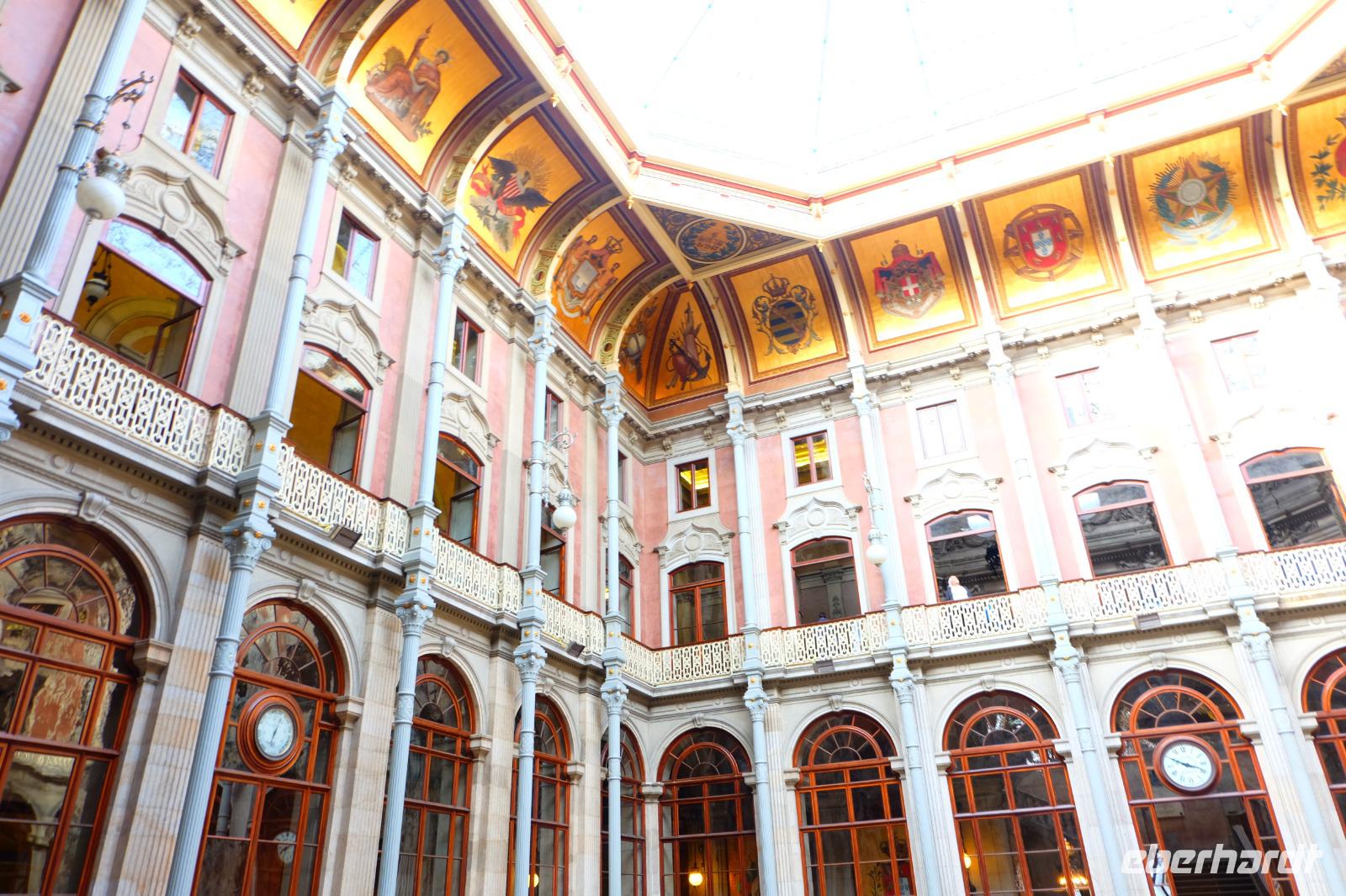 Eine wohltuende erste Nacht lag hinter uns und nach einem stärkenden Frühstück konnte unser Tag beginnen. Unser Bus holte uns am Hotel ab und wir fuhren auf die andere Seite des Flusses nach Porto. Auf dem Weg zu unserem ersten Stop, lernten wir viel wissenswertes über die Namensgebung und Entwicklung der Stadt Porto, welche übersetzt „Hafen" bedeutet. Auf einem Hügel der Stadt stiegen wir aus und besichtigten die Kathedrale von Porto. Die Sé do Porto - so ihr portugiesischer Name - ist eine der wichtigsten katholischen Kirchen auf der iberischen Halbinsel. Ihr Baustil erstreckt sich durch viele architektonischen Epochen. So wurde Sie im romanischen Stil begonnen, in der Gotik erweitert und im Barock umgestaltet. Seit 1996 zählt die Kathedrale nun zum UNESCO Weltkulturerbe. Unser Stadtrundgang führte uns immer mehr bergab durch schmale, bunt verzierte Gassen bis zur Börse. Erbaut wurde es aus den Ruinen eines ehemaligen Franziskaner Klosters und diente als Handelsvereinigung und Handelsgericht der Stadt. Um die Mittagszeit unternahmen wir eine Schifffahrt auf dem etwa 900 Kilometer langen Douro, welche in der Stadt Porto mündet. Vom Wasser aus ergab sich uns eine ganz andere Sicht auf die Stadt und wir konnten die bekannten prächtigen Brücken genauer bestaunen. Nach der Mittagspause, haben wir uns bereits eine gute Grundlage für den anschließenden Programmpunkt geschaffen. Wir spazierten zu dem Weinkeller „Burmeister" und lernten bei der Führung alles über die Begriffe Ruby, Tawny und Rosé kennen. Anschließend durften wir zwei verschiedene Portweine verkosten. Zum Abschluss des Tages unternahmen wir noch eine Panoramafahrt entlang des Douros und kamen dem rauen Atlantik ganz nah. Den Abend verbrachten wir in einem kleinen Lokal am Fluss, dem „Chez Lapin", welches ein interessantes Verständnis von Dekoration hat.