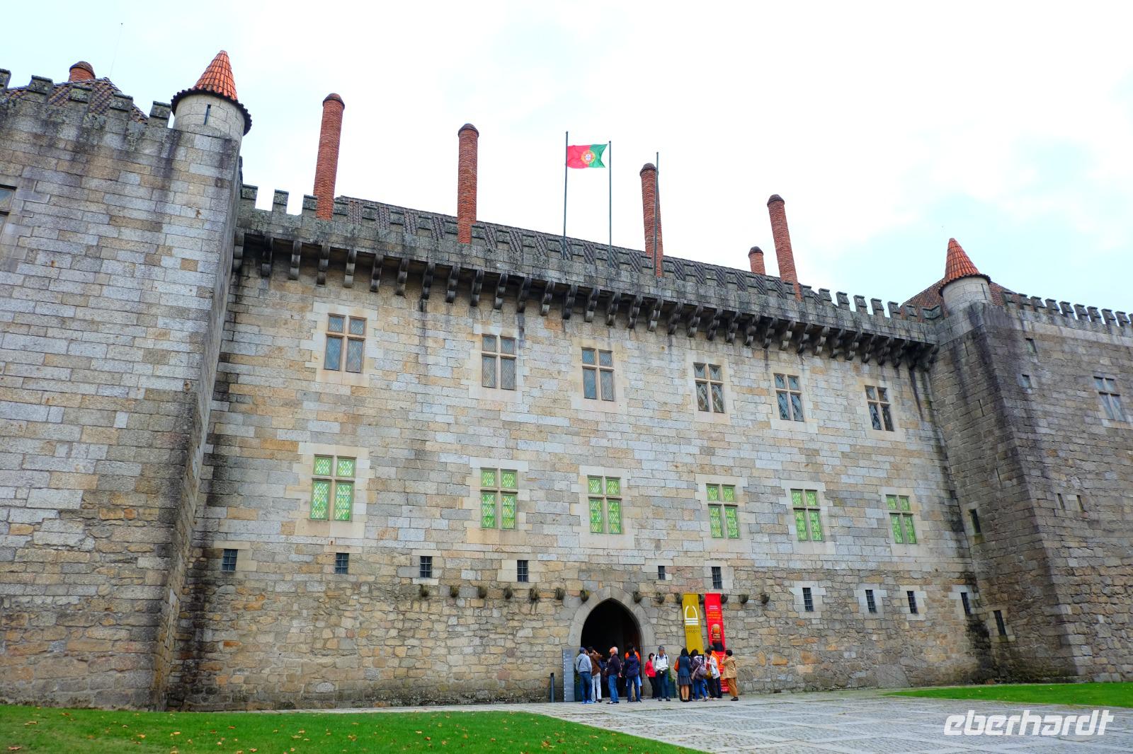Heute meinte es das Wetter nicht ganz so gut mit uns, doch das hielt uns keinesfalls davon ab einen spannenden Tag zu erleben. Das heutige Motto des Tages, liegt vor allem in der Vergangenheit Portugals. Wir besuchten zunächst die Gründerstadt Guimaraes aus dem Jahr 1143, welche auch als „Wiege der Nation" bezeichnet wird. Unser Stadtrundgang beginnt am Paco dos Duques und dem daneben liegenden Schloss von Guimaraes aus dem 10. Jahrhundert. Das Schloss beschützte die Stadt einst vor Mauren und Normannen und ist heute zum Teil eine Ruine. Wir spazierten vorbei an einem ehemaligen Kloster und dem Rathaus bis hin zur hübschen Kirche Nossa Senhora da Consolação. Hier stiegen wir wieder in unseren Bus ein und fuhren nach Braga, die Stadt der Erzbischöfe, welche für ihr religiöses Erbe bekannt. Nach einem gemütlichen Spaziergang durch die Stadt, genossen wir hier unsere Mittagspause. Am Nachmittag fuhren wir an den östlichen Stadtrand Bragas nach Bom Jesus. Mit einer Wasserkraftbahn fuhren wir den steilen Berg zum Wallfahrtsort hinauf. Eine beeindruckende Ingenieurleistung aus dem 19. Jahrhundert. Trotz starkem Regen trauten sich ein paar mutige Gäste die barocken Monumentaltreppen hinunter und wurden von uns freudig empfangen. Mit dem Bus fuhren wir zurück zu unserem Hotel in Porto.