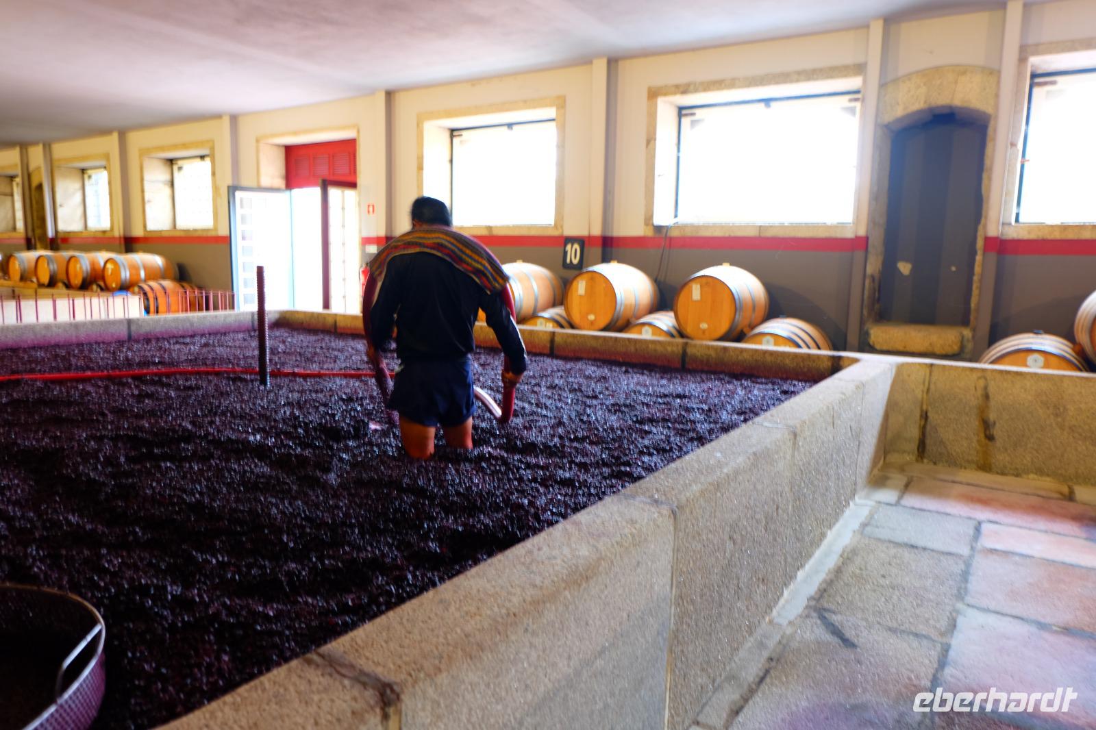 Unser heutiger Tag beginnt in der Kleinstadt Amarante. Bekannt ist die Stadt vor allem für Ihre Süßspeisen und diese werden in vielen traditionellen Konditoreien angeboten. Auf einem kleinen Stadtbummel, zeigte uns unsere örtliche Reiseleiterin viele typische Gerichte aus dem Douro-Tal und inspirierte uns schon für den nächsten Mittagsaufenthalt. Auf unserer Weiterfahrt nach Regua fuhren wir steile Serpentinen hinauf und erhaschten immer wieder schöne Ausblicke auf die Weinberge des Douro Tals. Auf einem kleinen Aussichtspunkt machten wir einen kurzen Stop und ich überraschte die Gäste mit den typischen Süßigkeiten aus der Stadt Amarante, um uns den Ausblick noch mehr zu versüßen. Wir erreichten Peso da Régua, eine Kleinstadt direkt am Douro und machten unsere Mittagspause bevor wir weiter nach Pinhão fuhren. Am Nachmittag kämpfte sich endlich wieder die Sonne hervor und machte unsere Zugfahrt entlang des Flusses Douro zurück nach Peso da Regua noch schöner. Zum Abschluss des Tages besuchten wir das Weingut Quinta da Pacheca aus dem Jahre 1738. Dieses Traditionelle Weingut arbeitet hauptsächlich ohne Maschinen und so konnten wir bei einer Führung sehen, wie die Trauben nur durch Menschenkraft gestampft werden. Zum Glück erklärte uns der Guide noch einmal die Bedeutung hinter den Bezeichnungen Ruby und Tawny und nach kurzer Wiederholung, erinnerte sich auch jeder wieder an die schon erlernten Begriffe. Nach dieser Lerneinheit hatten wir uns die Verkostung wirklich verdient. Die Anfangs noch ruhige Stimmung änderte sich abrupt nach dem 3. Glas Portwein und so nahm ein weiterer Tag unserer Reise langsam sein Ende. Wir übernachten in Peso da Regua.