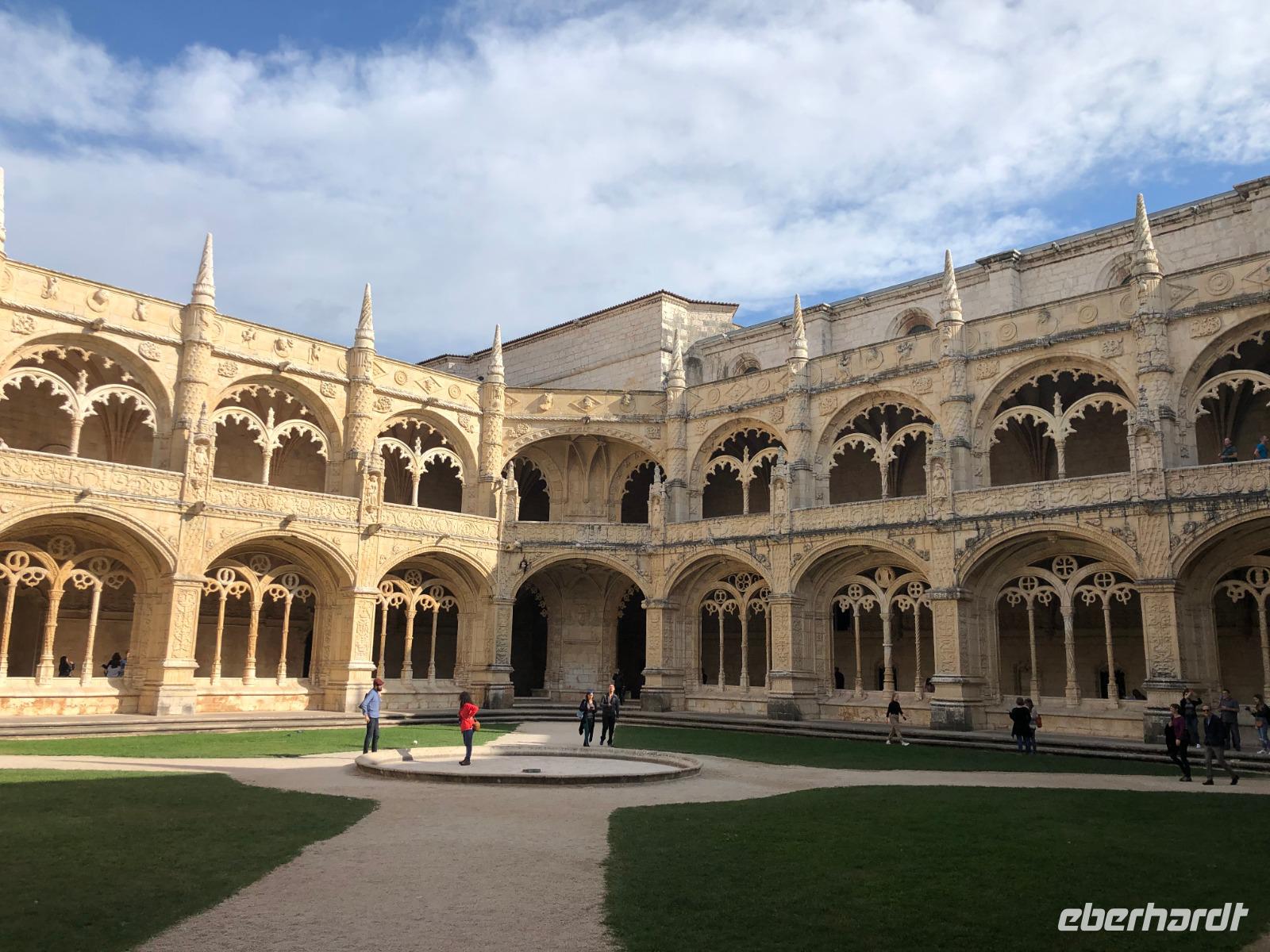 Den heutigen Tag verbringen wir in der Hauptstadt Portugals, in Lissabon. Doch erstmal mussten wir beim Frühstück um unseren obligatorischen Kaffee kämpfen. Zum Glück wird es morgigen wieder ruhiger. Da heute der jährliche Marathon in Lissabon stattfindet, ist nicht nur in den Hotels viel los, sondern auch auf den meisten Straßen. So erkundeten wir die Stadt zu Fuß und konnten den Flair der Metropole genießen. Wir fuhren zunächst mit dem Aufzug in die Oberstadt und spazierten zur Festungsanlage und Burgruine „Castelo de Sao Jorge". Von dem höchsten Punkt Lissabons hatten wir einen herrlichen Ausblick über die gesamte Stadt und den Fluss Tejo. Wir spazierten weiter durch einen der ältesten Stadtteile Lissabon - Alfama. Die steilen und mit Kacheln versehenen Straßen prägen das Viertel, welches besonders auf Kunsthandwerk spezialisiert ist. Wir spazierten weiter vorbei an der Kathedrale, dem Königsplatz und zum alten Marktplatz zurück. Nun hatte jeder Zeit seine Mittagspause in der Stadt zu verbringen. Als wir uns am frühen Nachmittag wiedertrafen, war die Stadt unerwarteter weise immer noch gesperrt, sodass wir uns kurzfristig dazu entschlossen unserem Bus mit der U-Bahn entgegen zu kommen. Gesagt, getan. Als wir den Bus erreichten unternehmen wir eine Panoramafahrt zum Hieronymuskloster. Das UNESCO-Weltkulturerbe ist das wohl bedeutendste Bauwerk in Lissabon und zählt mit einer Länge von 300 Metern unter anderem zu den längsten Kirchen der Welt. Genau gegenüber der Kirche befindet sich das Entdeckerdenkmal von Heinrich dem Seefahrer. Es wurde genau 500 Jahre nach dem Tod des Seefahrers erbaut und befindet sich an der Hafeneinfahrt des Flusses Tejo. Inmitten der Abendsonne können wir das Denkmal bestaunen und werden dazu noch musikalisch von einer Opernsängerin begleitet. Wir fahren noch ein kleines Stück weiter Richtung Mündungsgebiet und gelangen zum Turm von Belem. Der imposante Turm wurde im 16. Jahrhundert erbaut und bildet das Tor zur Stadt Lissabon. Unserem Abend verbrachten wir im Restaurant „O Policia", welches extra für unsere Gruppe öffnete. So konnten wir den Abend nur für uns gemütlich ausklingen lassen.