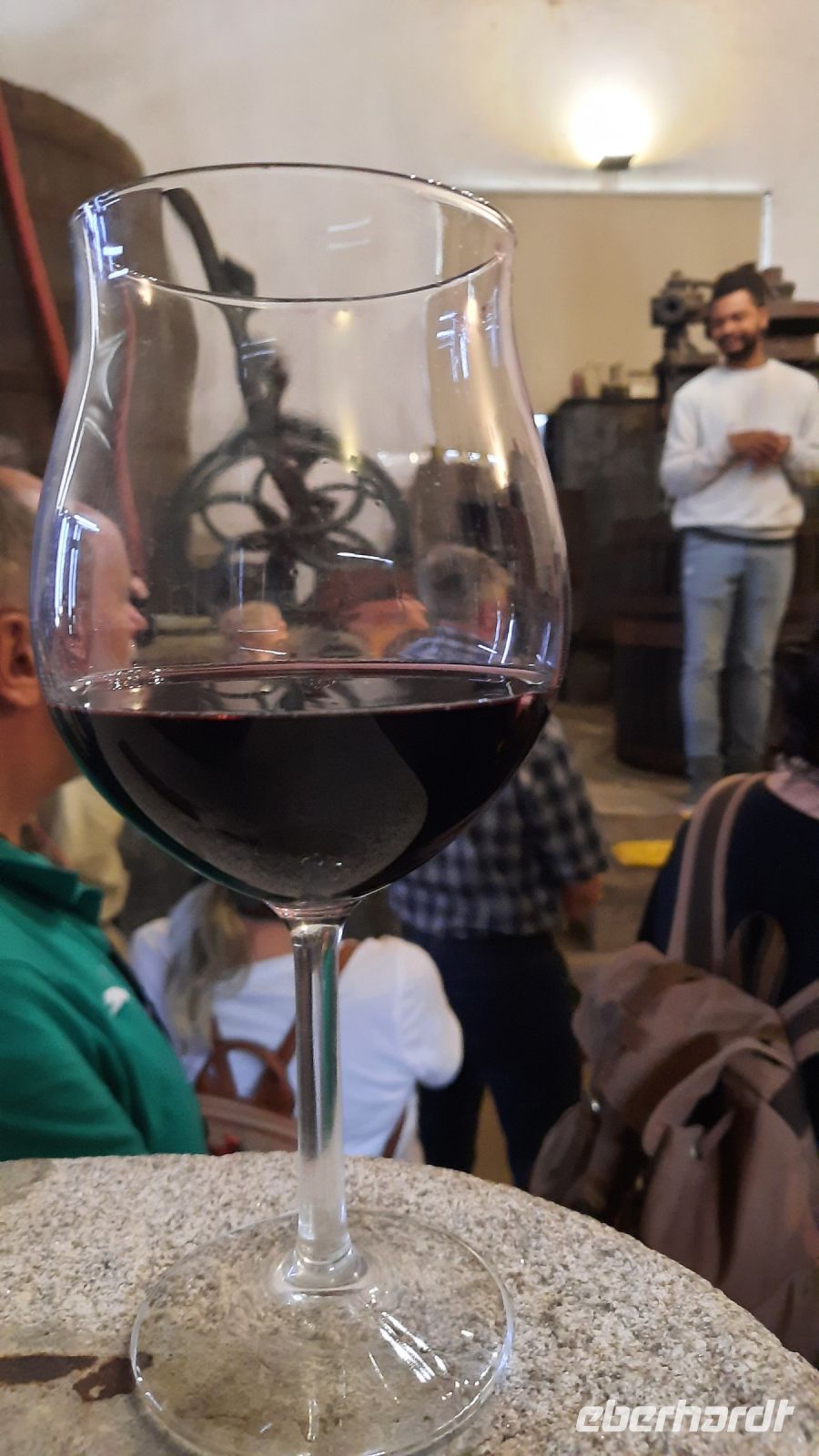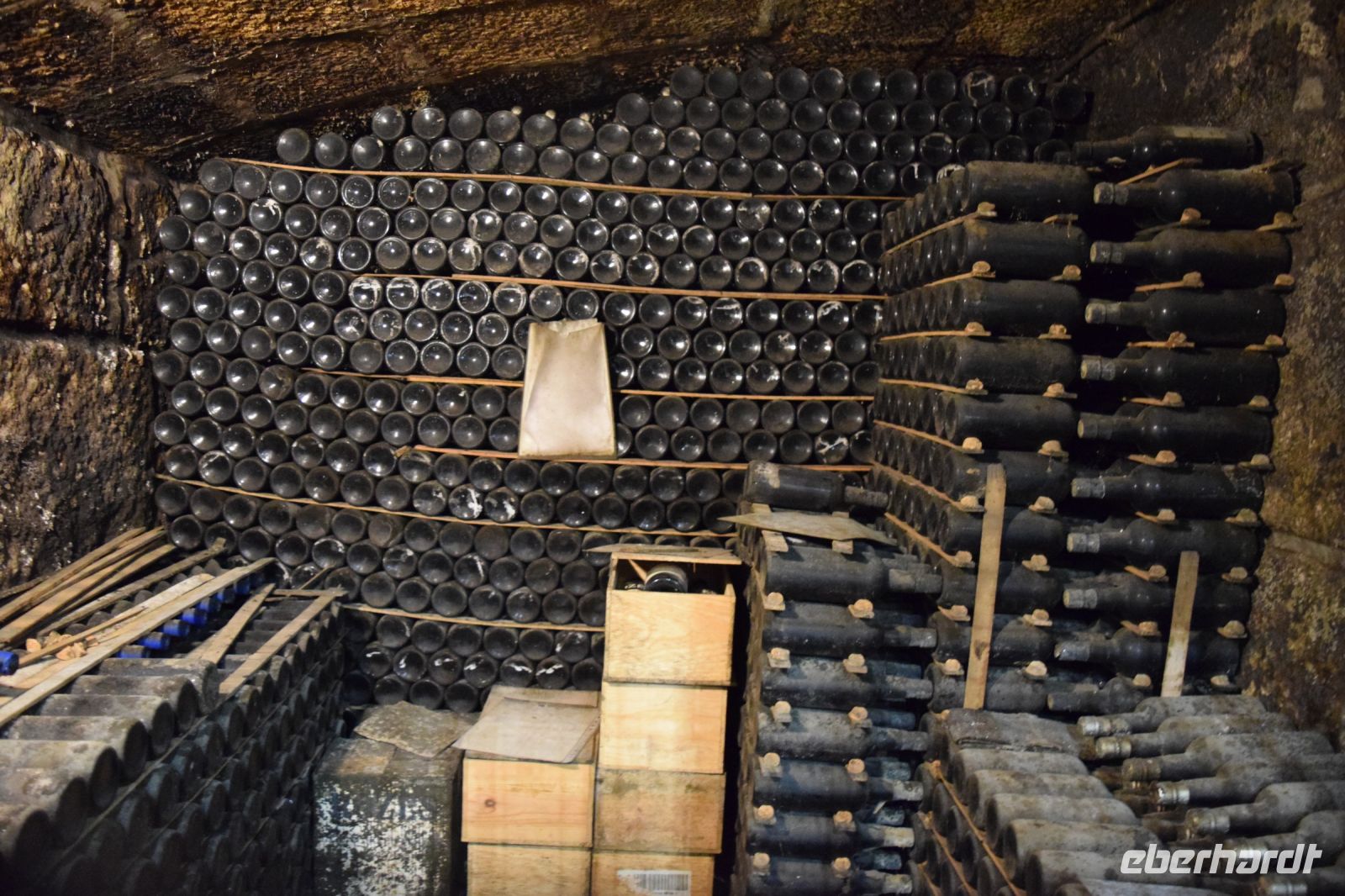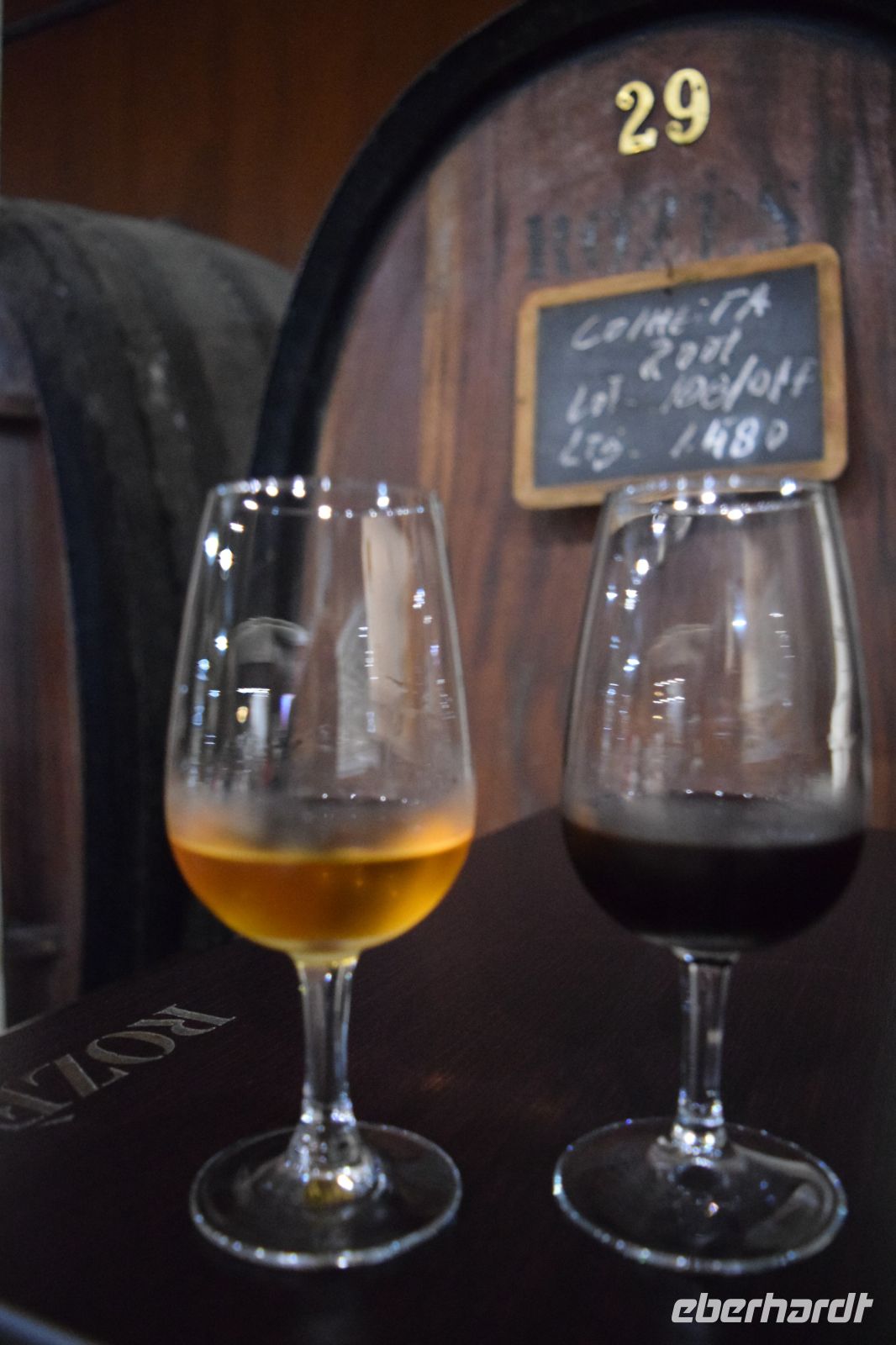 Anschließend verbringen wir unsere Mittagszeit am quirligen Ufer des Douro, ehe wir uns um 12:20 Uhr zu einer Schifffahrt auf dem Fluss wieder treffen. Das kleine Boot, dass in früheren Zeiten den Portwein aus dem Landesinneren nach Porto transportierte, bringt uns etwas stromaufwärts bis zur Eisenbahnbrücke "Ponte Maria Pia", die durch die Firma des berühmten Gustav Eifel geplant und errichtet wurde. Auf der Fahrt stromabwärts durchqueren wir erneut die "Ponte Dom Luis I.", die ebenfalls eine spektakuläre Bogenbrücke aus genieteten Stahlsegmenten des 19. Jahrhunderts ist und heute sogar von der Metro genutzt wird. Wir schippern fast bis zur Mündung und wenden dann erneut, um am gegenüberliegenden Ufer des Douro anzulegen. Dort befinden sich zahlreiche bekannte Portweinkellereien. Individuell besuchen wir die ehemalige Markthalle, die wegen der vielen Touristen zu einem Tempel für das "schnelle Essen auf die Hand" umfunktioniert wurde. Später treffen wir uns, um gemeinsam bergauf zu einer Portweinverkostung zu starten. Pünktlich 14 Uhr erreichen wir die Portweinkellerei "Rozés", wo uns eine Dame freundlich erwartet. Wir erhalten einen Einblick in die aufwändige und langwierige Zubereitung des so typischen Portweines, dessen Lagerung in Eichenfässern mindestens 4 Jahre betragen muss. Der so entstandene weiße Portwein hat einen markanten Geschmack. Der rote Portwein, der ebenfalls aus weißen Trauben gekeltert wird, benötigt mindestens 7 Jahre im Fass, ehe er die rote Farbe aus dem Eichenholz und dessen Aroma vollständig einverleibt. Nach der Verkostung der beiden Portwein-Varianten besteht die Möglichkeit, selbst Flaschen zu kaufen und als "Andenken" an dieses Erlebnis, zu Hause an kalten Wintertagen zu genießen.