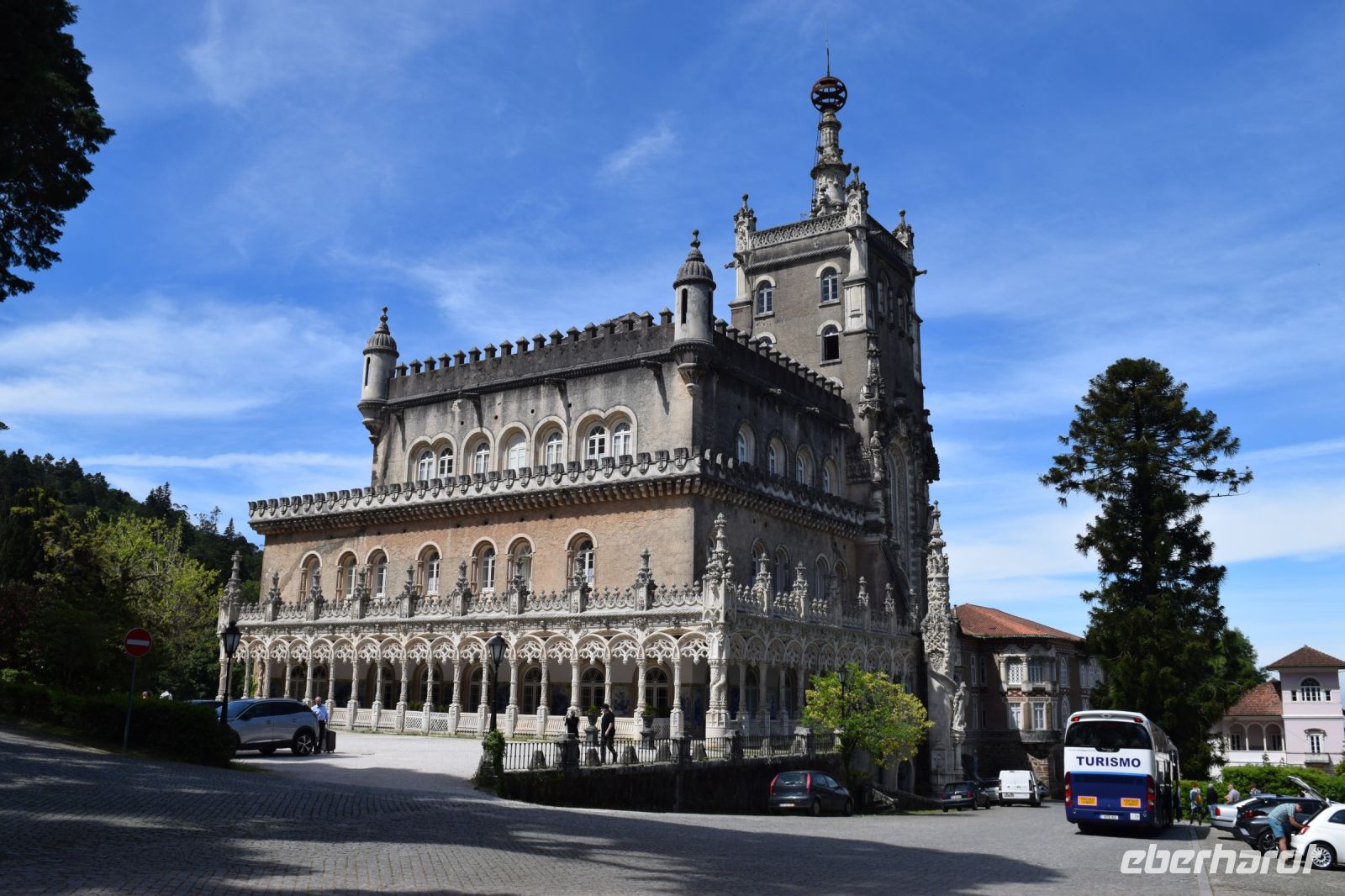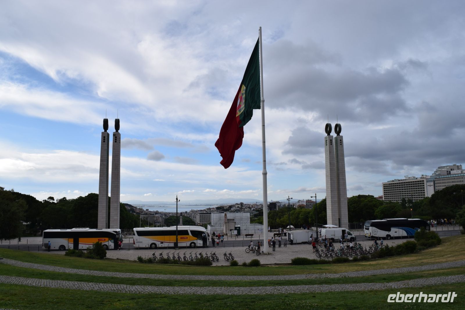 Mit einem "bom dia" begrüßt uns unsere Reiseleiterin im Bus und wir starten wie immer nach einem guten Frühstück vom Hotel. Wir fahren in westliche Richtung und stoppen am Parque Eduardo VII, dem größten innerstädtischen Park Lissabons. Dieser erhielt seinen Namen zu Ehren des Besuches des damaligen Königs des vereinigten Königreiches im Jahre 1903 und sollte die guten Beziehungen Portugals zu England fundamentieren. Wir genießen von hier oben einen freien Blick entlang der Nord-Süd-Achse zum Tejo, über allem weht eine riesige Flagge Portugals. Anschließend verlassen wir die Hauptstadt in Richtung Westen. Nach kurzer Fahrt erreichen wir das erste Ziel des heutigen Ausfluges. Die kleine Stadt Sintra begrüßt uns mit 19 °C und nebelverhangenen Berggipfeln. Wir besuchen den Nationalpalast in Sintra, ein maurisches Bauwerk aus dem 11.Jahrhundert, der mit seinen zwei konischen Kaminschornsteinen doch etwas untypisch wirkt. Bei einer Führung durch diesen Palast fallen uns die vielen Fliesensammlungen, prunkvollen Gemächer mit reich verzierten Holzdecken auf. Auch die prächtigen Innenhöfe bieten tolle Fotomotive. Bei einem anschließenden Bummel durch die engen Gassen Sintras haben wir genügend Gelegenheiten, Souvenirs zu kaufen oder ein Café zu besuchen. Als wir Sintra mit dem Bus verlassen, gibt der Nebel die Sicht auf die Bergkuppe und damit auf das städtische Schloss "Palácio Nacional da Pena" frei, das die Kulturlandschaft der Stadt Sintra mit prägt und somit diese zu Recht einen UNESCO-Welterbe Titel erhielt.