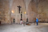Schließlich geht die Reise in südwestliche Richtung weiter und wir erreichen das Ziel des heutigen Tages, die Provinzhauptstadt Coimbra, die romantisch an den Ufern des Rio Mondego liegt. Auf dem Hügel über der Altstadt erhebt sich das Gelände der weltbekannten Universität und die dazu gehörigen Wohngemeinden der studentischen Bevölkerung, die wohl ein Drittel der 140.000 Einwohner ausmacht. In der Altstadt verbringen wir auf eigene Faust unsere Mittagspause bevor wir uns um 15 Uhr für die Auffahrt zur Uni wieder am Bus einfinden. Geführt durch unsere tolle Reiseleiterin schlendern wir durch die Anlagen der Universität und sehen die jungen Leute in schwarzen Roben, die wohl wissend vor unseren Kameras posen. Anschließend besuchen wir die legendäre Bibliothek und andere Räume der Universität.