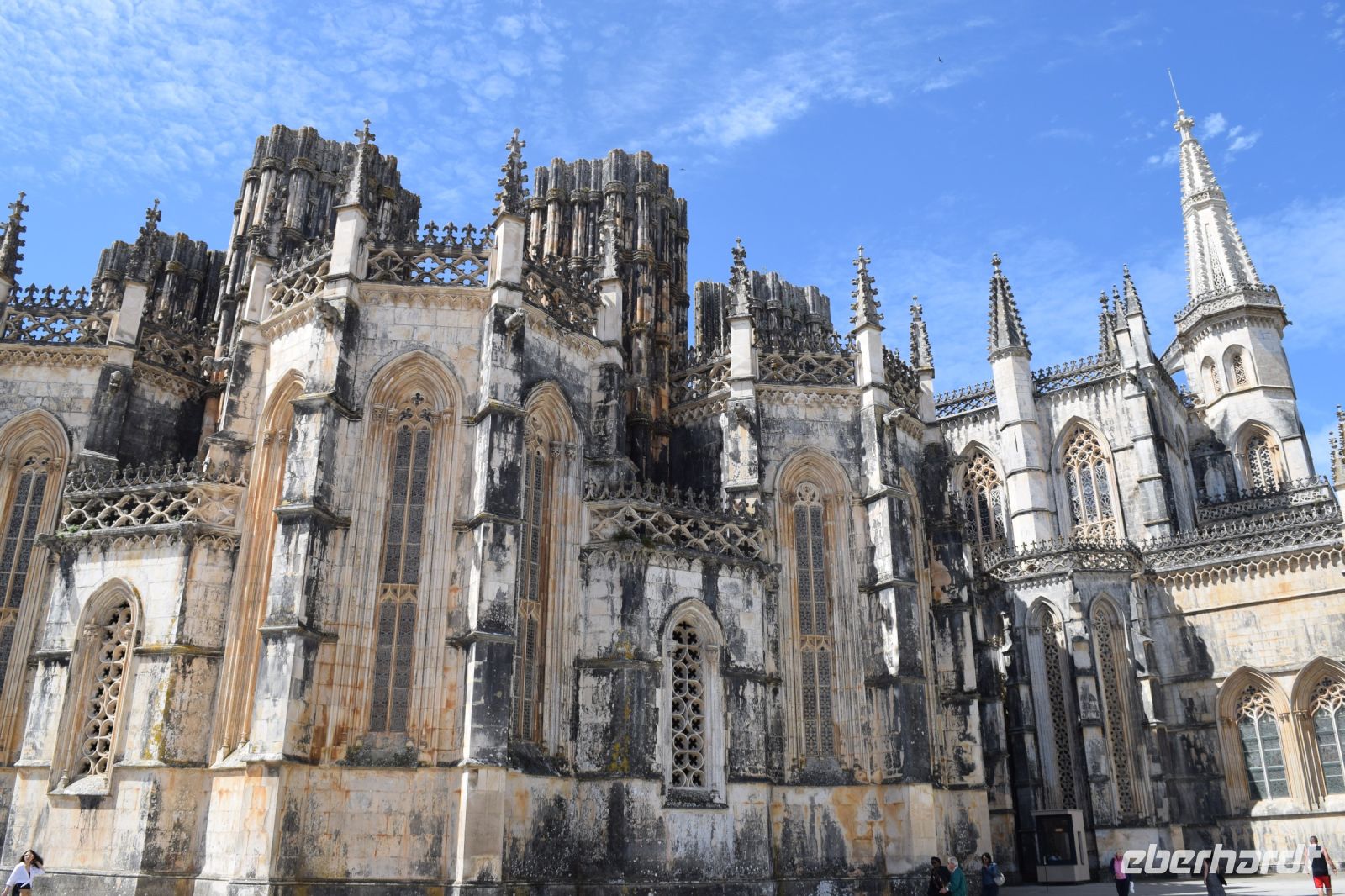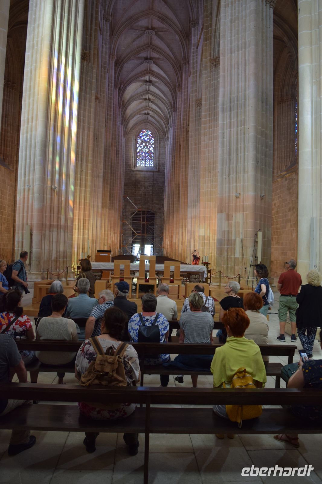 Nach dem Besuch des wohl größten "Kirchenvorplatzes" der Welt reisen wir nur eine kurze Strecke weiter in westliche Richtung und gelangen schließlich in die Kleinstadt Bathala, die ihren Namen vom gleichnamigen Kloster erhalten hat. Das Kloster Bathala gehört seit 1983 zur Liste der UNESCO-Welterbe Stätten und präsentiert sich mit tollen Kreuzgewölben. Im Kapitelsaal des Klosters stehen portugiesische Soldaten zur Ehrenwache am Mahnmal des unbekannten Soldaten, das an die Opfer des ersten Weltkrieges erinnert. Im Kloster Bathala sind im 15. Jahrhundert einige portugiesischen Könige und deren Angehörige beigesetzt worden. So gab es schon damals den Plan, eine weitere mächtige Kapelle zu bauen, in der alle weiteren Könige Portugals ihre Ruhe finden sollten. An der heute noch unvollendeten Kapelle wurde 200 Jahre gebaut, ehe im Jahr 1509 der Bau mangels Interesse eingestellt wurde. Und so schauen wir heute vom Innenraum der Basilika in den blauen Sommerhimmel. Nach etwas Freizeit steigen wir wieder in den Bus, um nun nach Westen zum Atlantik zu reisen. Das ehemals verträumte Fischerdorf Nazaré liegt an einer offenen Bucht und bietet heute mit den breiten Sandstränden und den vielen Strandcafés sowie Boutiquen entlang der Promenade vielen Touristen die gewünschte Infrastruktur. Dennoch entdecken wir schöne Fischerboote und den Fischfang, der in der Sonne getrocknet wird. Neben diesen Zeichen der heutigen Fischerei, erinnern nur noch eine Fotoausstellung der markanten Gesichter der Fischer-Frauen und die Folklore-Tänze sowie die bunten Trachten an frühere Fischergenerationen. In dem heutigen Surfer Paradies hat sich das Bild gewandelt, die kleinen Fischerkaten müssen den Hotels und Pensionen weichen. Cafés und Souvenirshops prägen das Straßenbild, der breite Sandstrand wird für ein Beach-Volleyball-Event präpariert. Wir verbringen hier bei schönstem Sommerwetter unsere Mittagspause, ehe es gegen 15 Uhr weiter geht. Unser Fahrer bringt uns wieder eine Etappe weiter nach Süden. Ziel ist heute die Hauptstadt Lissabon, der wir uns von Norden nähern. Dabei fahren wir durch eine Gegend mit fruchtbaren Böden, wo vorwiegend Spalierobst und Gemüse angebaut werden. Aber ein weiteres Highlight erwartet uns, denn wir stoppen an einer mittelalterlichen Burganlage, die von einer Burgmauer komplett umschlossen ist. Die Burg Obidus betreten wir durch eine Toranlage, wo eine Laienkünstlerin ihre Arien schmettert. Wir haben genügend Freizeit, um durch die engen Gassen zu trödeln oder auf der begehbaren Burgmauer zu laufen. Zahlreiche Cafés und Souvenirläden laden ein. Einige Gäste probieren den Kirschlikör im Schokobecher, der hier wohl eine besondere Spezialität ist. Um 16:30 Uhr brechen wir zum "letzten Ritt" auf und fahren durch hügelige, grüne Landschaften. Unsere Reiseleiterin erzählt uns, dass nun die Region der Windmühlen beginnt. Viele der kleinen Mühlen auf den zahlreichen Hügeln dienen heute als Ferienwohnungen. Nach einer Stunde Fahrt erreicht unser Busfahrer Manuel das Hotel Roma, in dem wir drei Nächte bleiben werden. Da uns Manuel nun verlässt, bedanken wir uns bei ihm und wünschen ihm allzeit gute Fahrt.